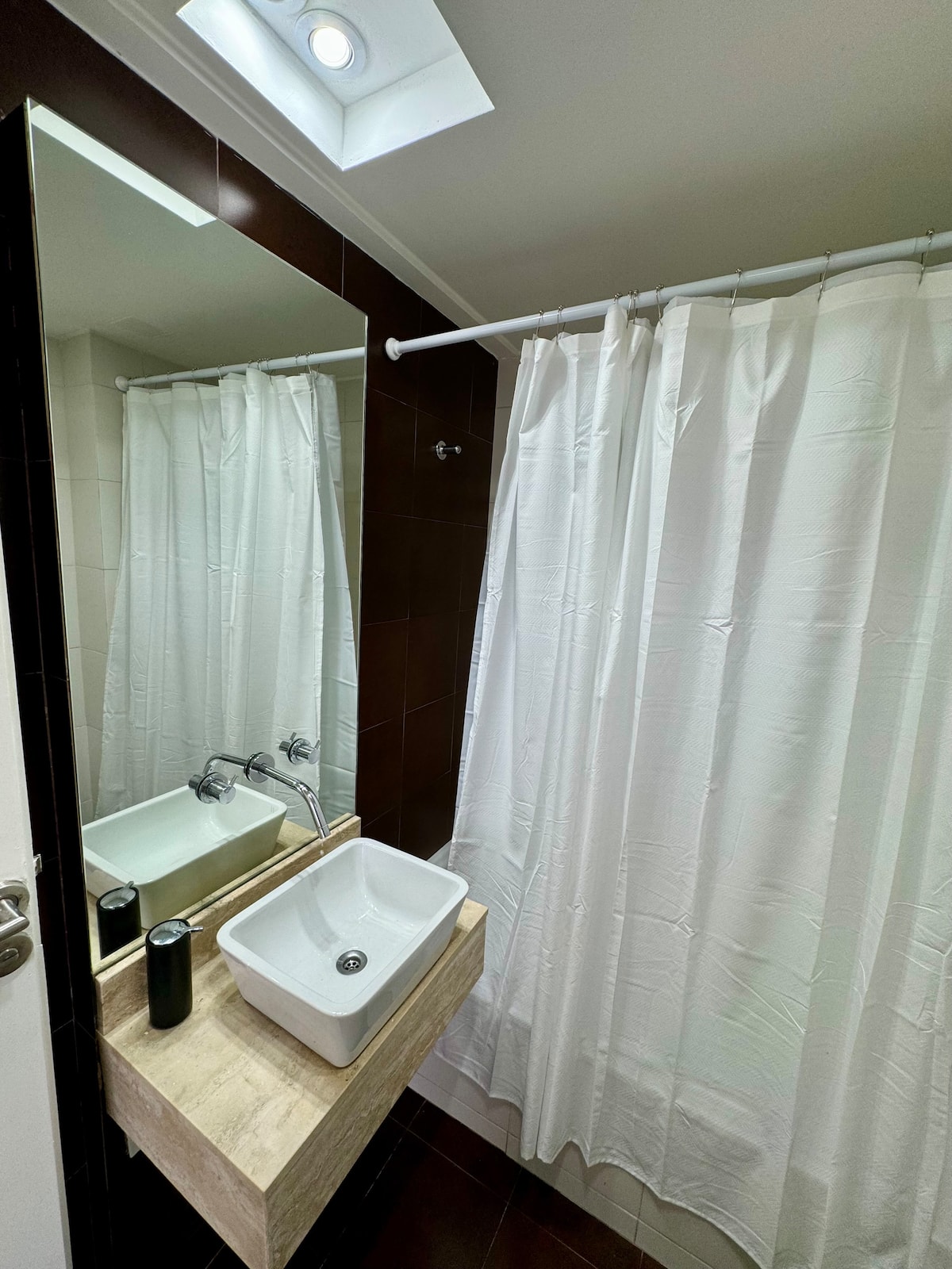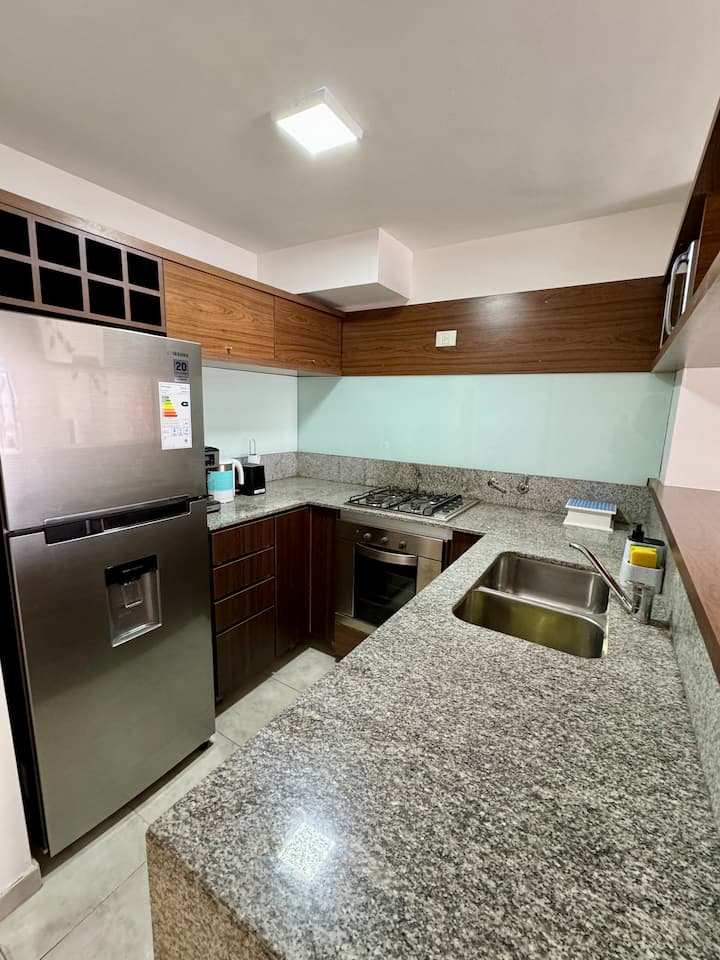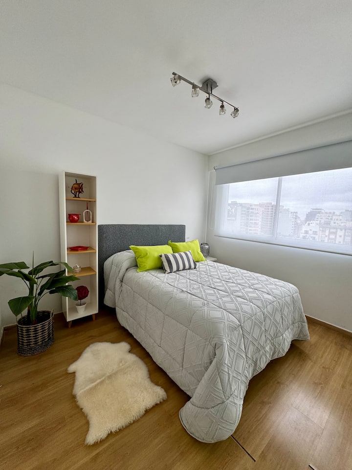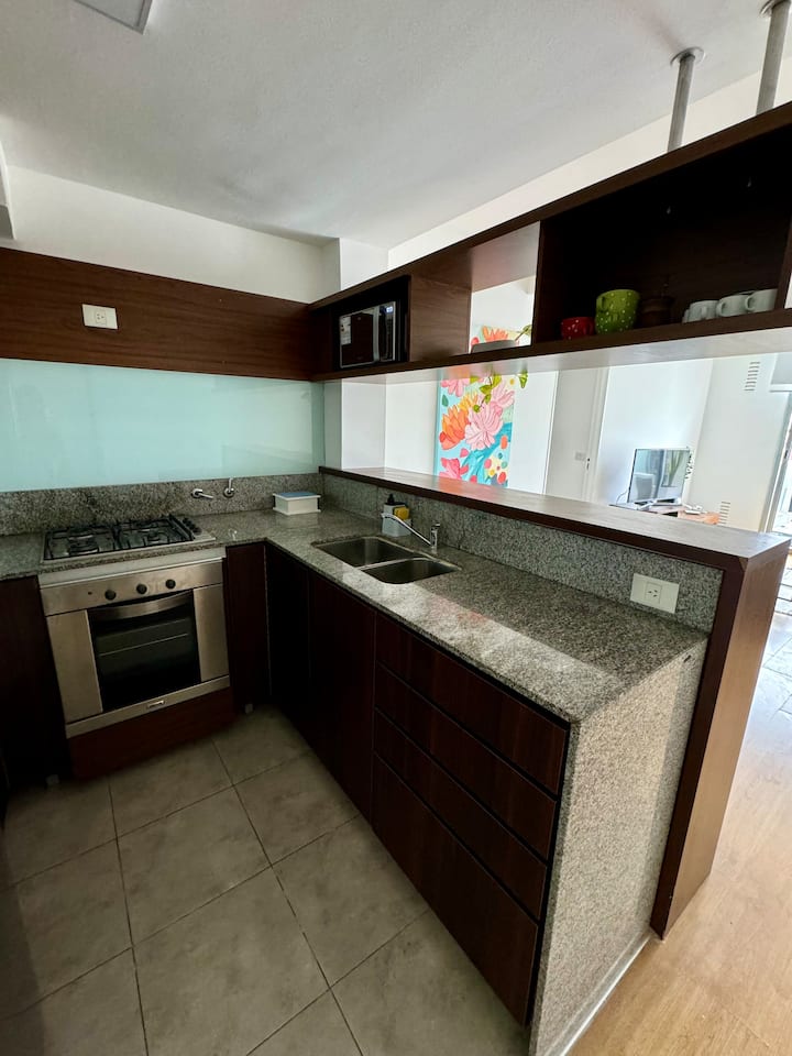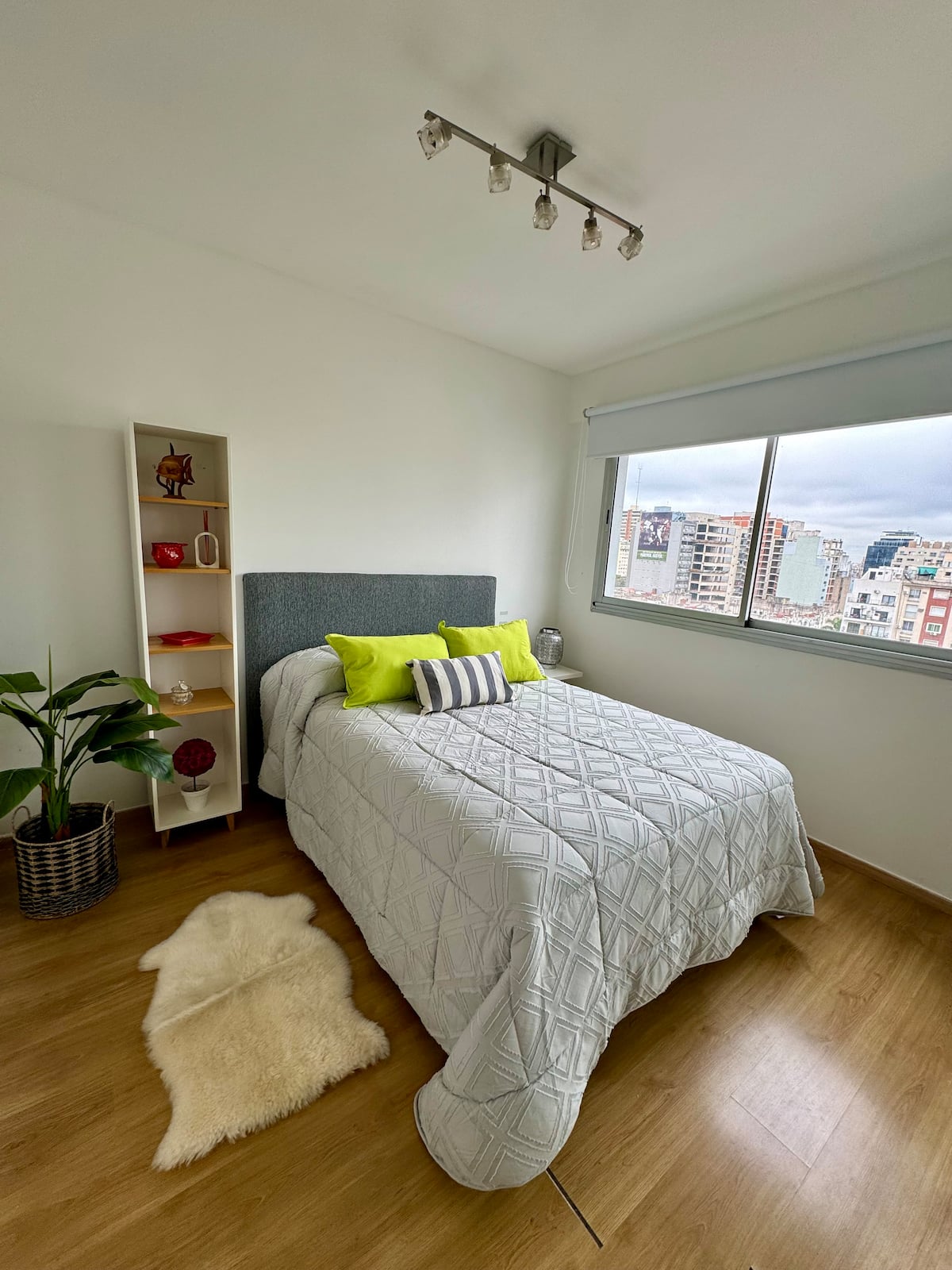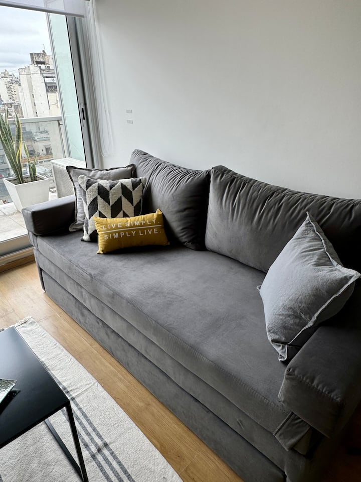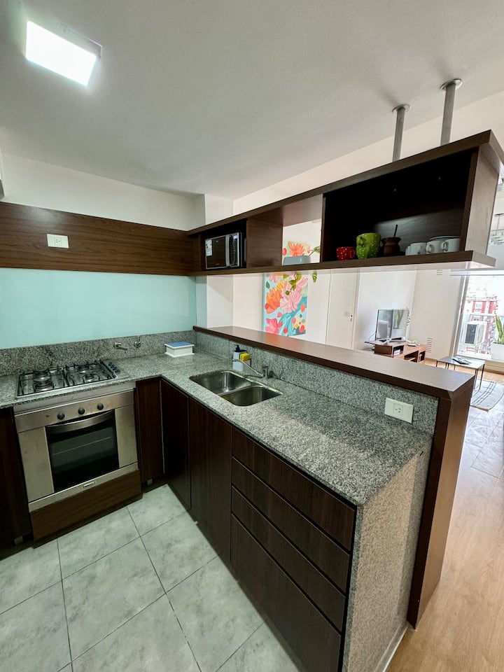 Квартира с двумя комнатами в Constitución. Спальня с ванной комнатой и большим встроенным шкафом, гостиная, отдельный туалет. Кухня интегрированная: холодильник с морозильной камерой, газовая варочная панель и электрическая духовка, микроволновая печь, кофемашина, электрический чайник, полный набор посуды. В квартире есть кондиционирование с 2 установками, кабельное телевидение и Wi‑Fi; балкон выходит на Av Independencia с видом на Av 9 de Julio. В здании предусмотрены прачечная, бассейн и зона