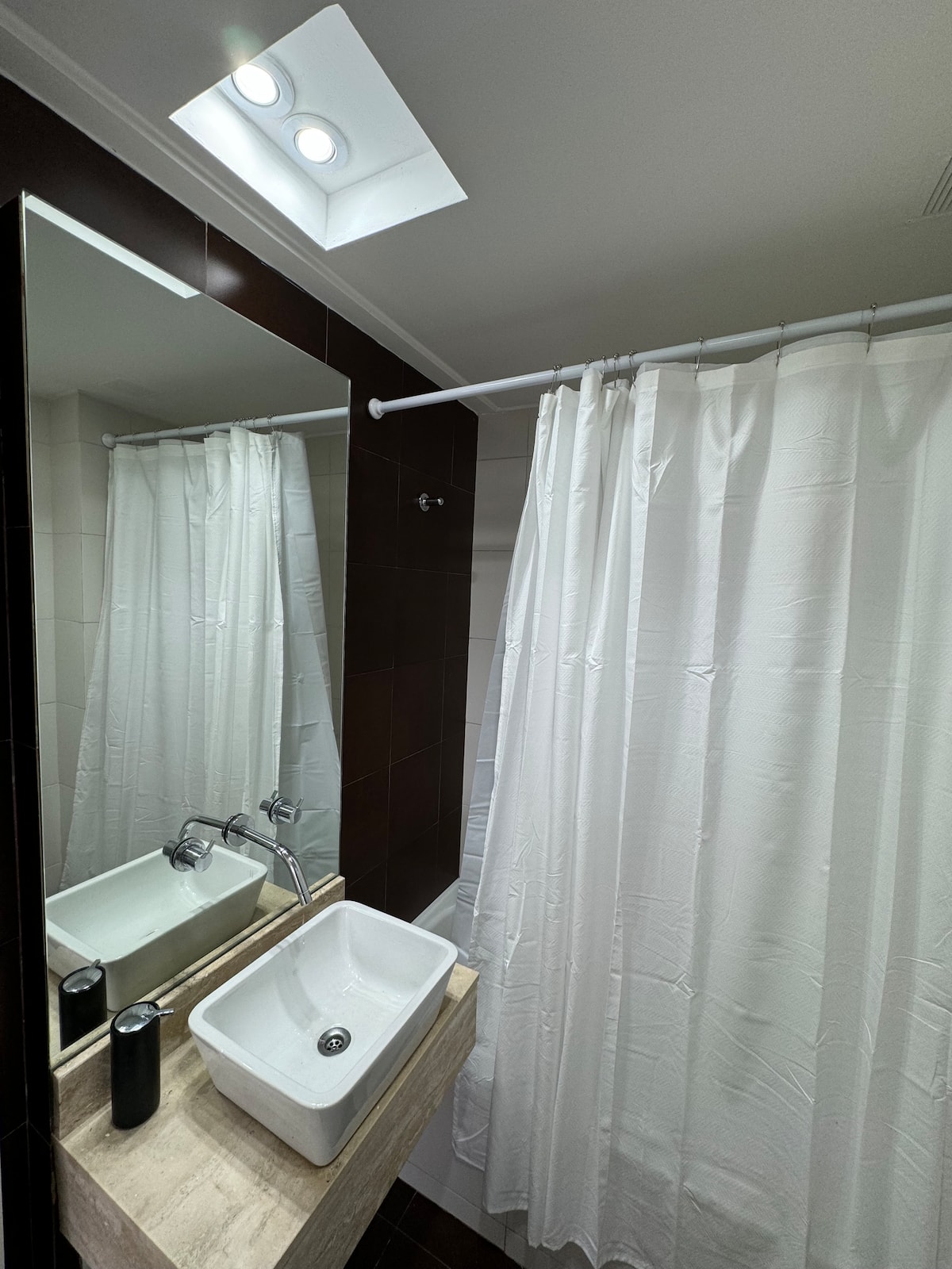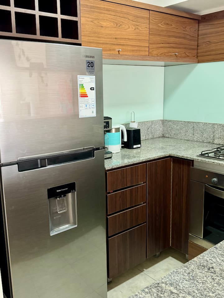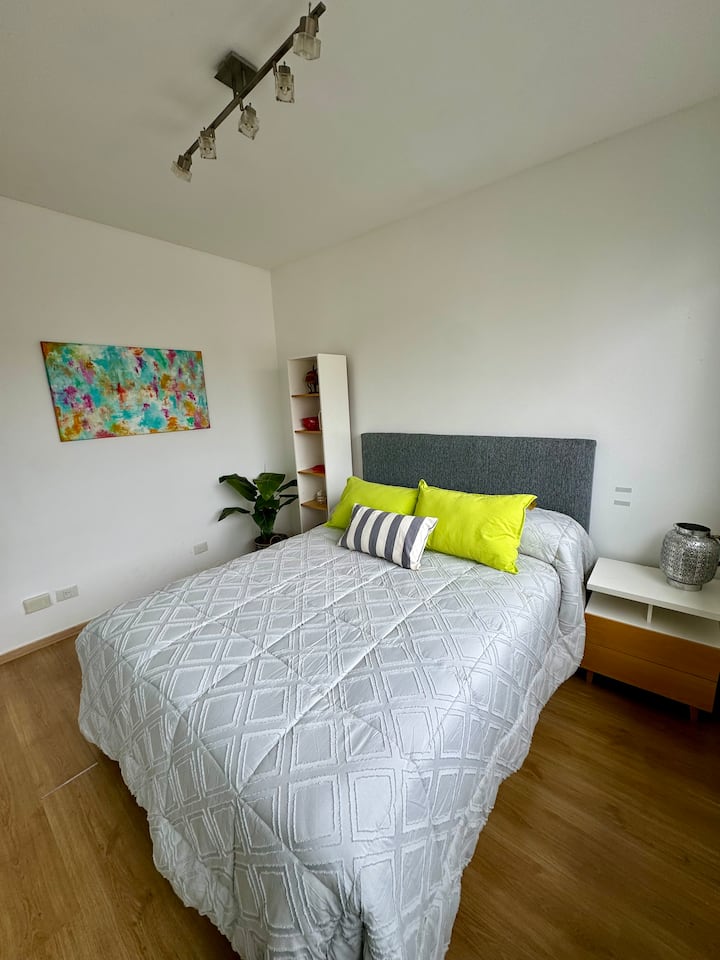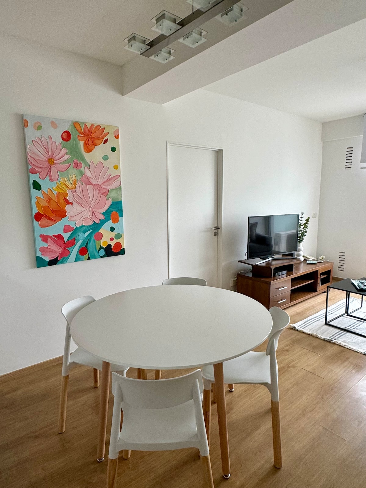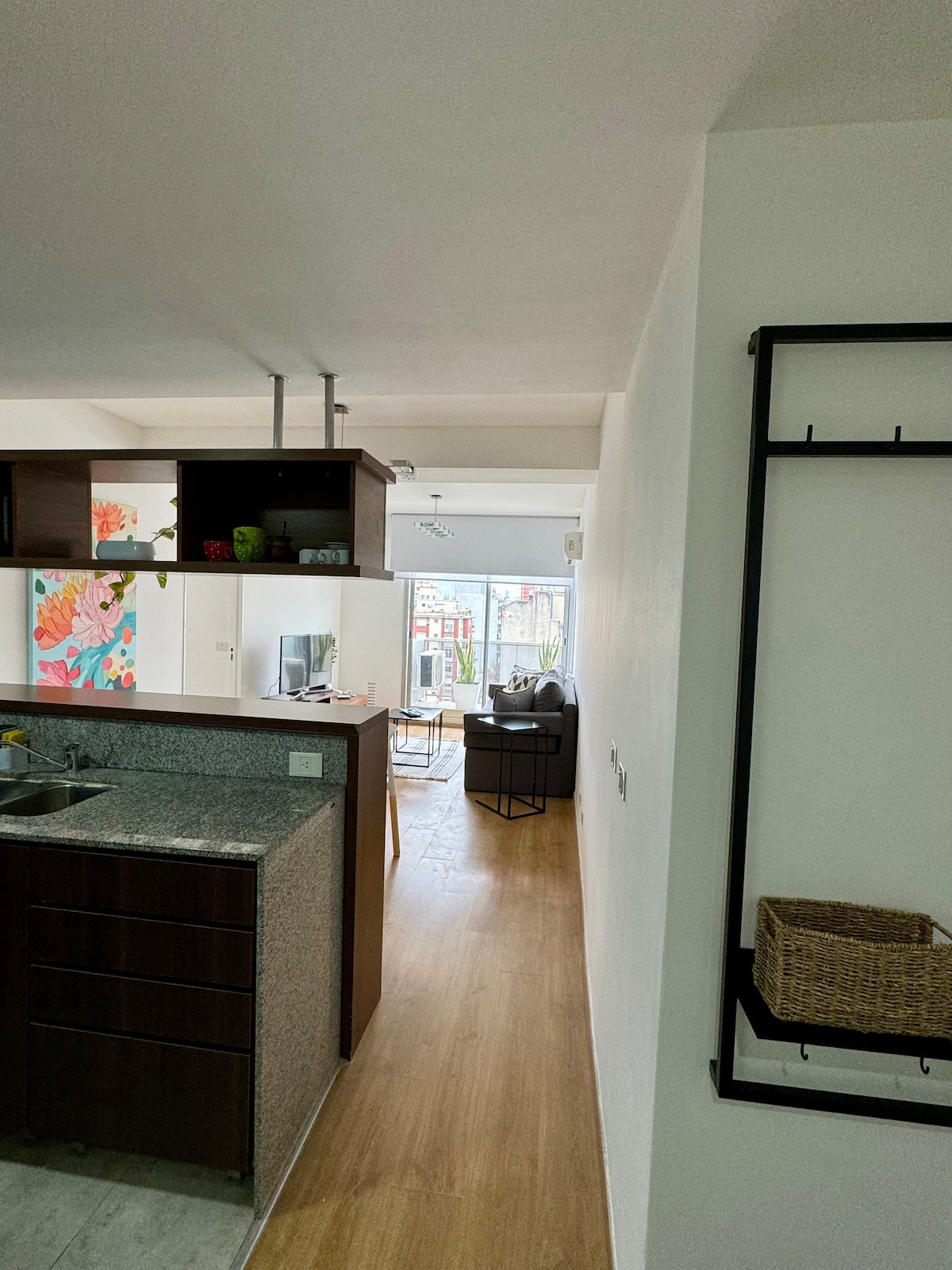 Квартира с двумя комнатами в Constitución. Спальня с ванной комнатой и большим встроенным шкафом, гостиная, отдельный туалет. Кухня интегрированная: холодильник с морозильной камерой, газовая варочная панель и электрическая духовка, микроволновая печь, кофемашина, электрический чайник, полный набор посуды. В квартире есть кондиционирование с 2 установками, кабельное телевидение и Wi‑Fi; балкон выходит на Av Independencia с видом на Av 9 de Julio. В здании предусмотрены прачечная, бассейн и зона