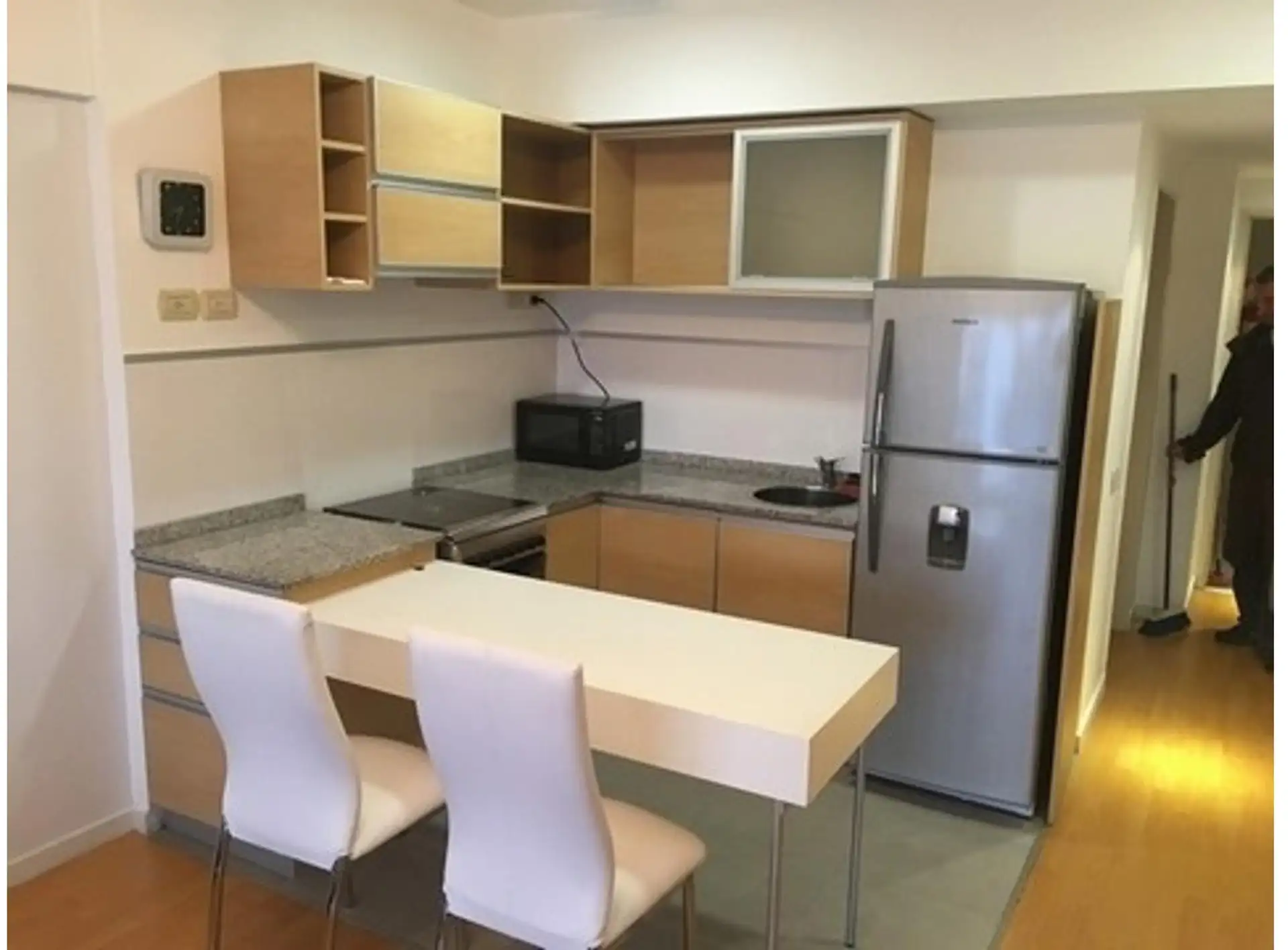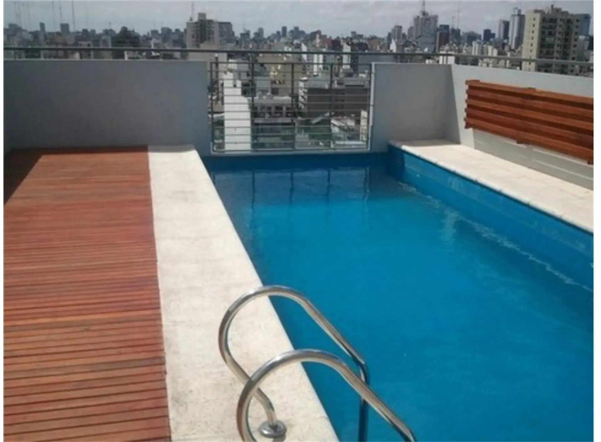 Квартира с 1 спальней в Constitución, на 9-м этаже, окна во двор. Кухня объединена с гостиной, есть полноценная ванная. В здании 13 этажей; есть лифт на 10 человек, общая гостиная для жильцов (SUM) и бассейн на крыше с панорамным видом. Установлены холод/тепло кондиционер, полы из керамогранита. В стоимость включены все услуги, кроме электричества. Временный аренда: пакет $55.000 «всё включено». Залог-страховка аренды не указана; при заселении требуется около 3 месяцев, один месяц аренды, один м