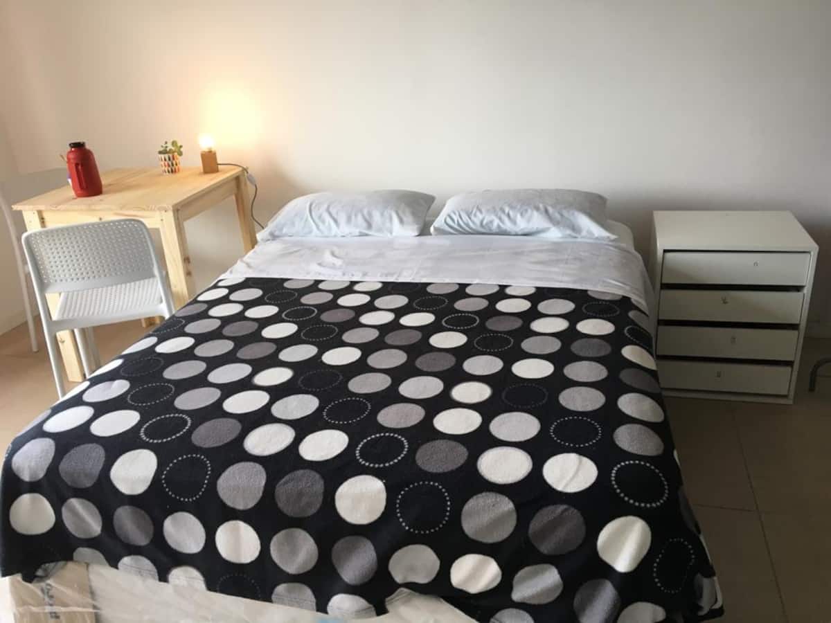 Квартира-студия площадью 35 m² в Montserrat, окна во двор и тишина, по описанию находится на противоположной стороне здания. Есть собственный балкон. Апартаменты 3 года назад, с кухней, духовкой, электрочайником и холодильником с морозильной камерой. В наличии кондиционер, панели отопления и обогреватель, мебель и текстиль: постельное бельё и полотенца, посуда, кроватная основание 1,50 x 1,90 м, стол 70 x 70 и 2 стула.