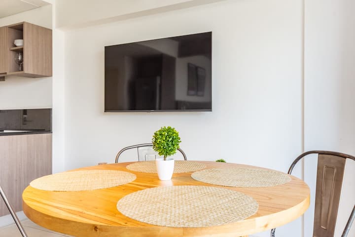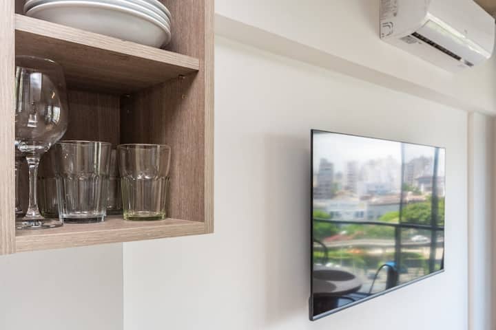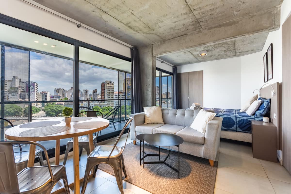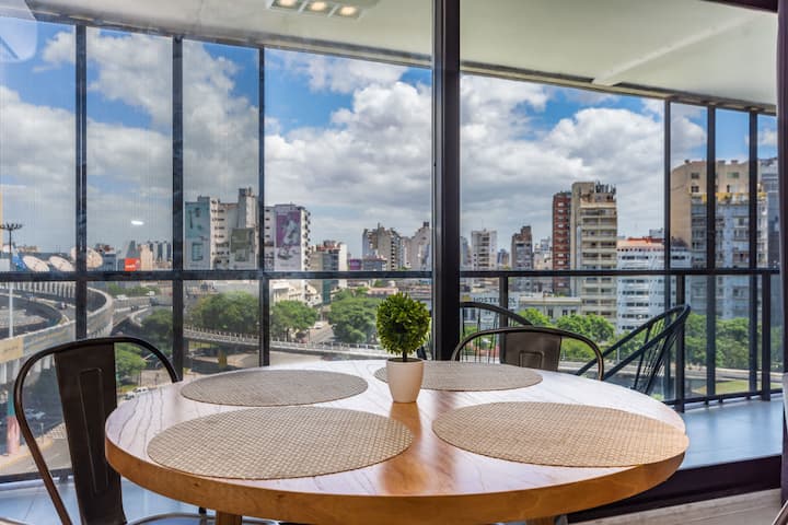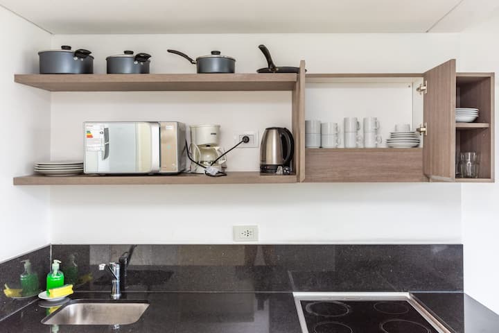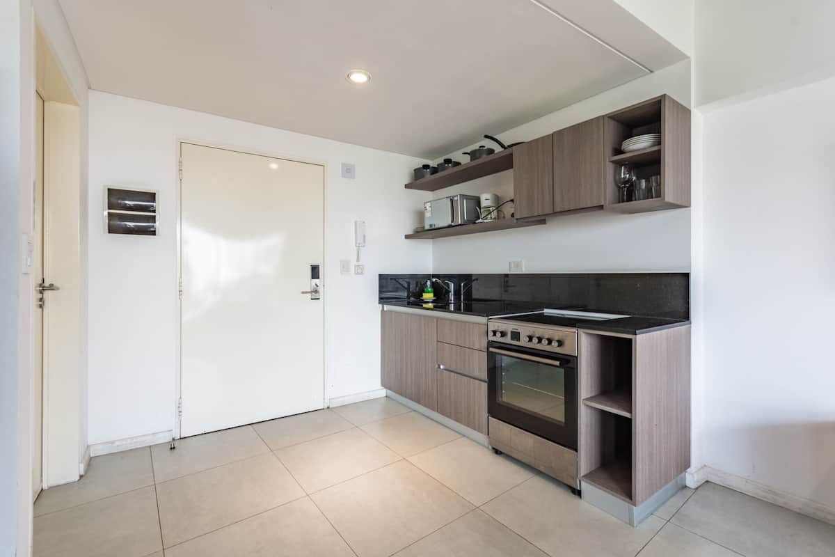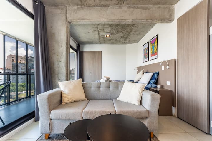 Лофт в Constitución в новом доме, окна и большая терраса-балкон. Гостиная с оборудованной кухней, предусмотрена мебель с выбором кроватей: king-size или 2 односпальные. В квартире есть бытовая техника и электрооборудование, в том числе кофеварка, смарт TV, электрочайник, посуда. Вход в здание осуществляется по коду через электронный замок. На 3-м этаже дома предусмотрены пространство coworking и coliving с Wi‑Fi, душевыми, большими столами и зонами для йоги, а также общая терраса с видом на Av.