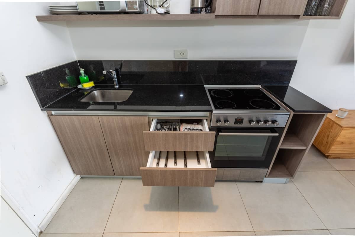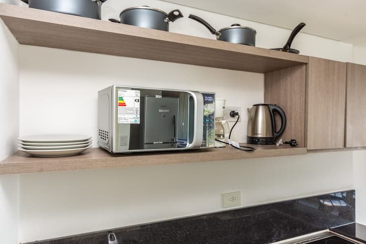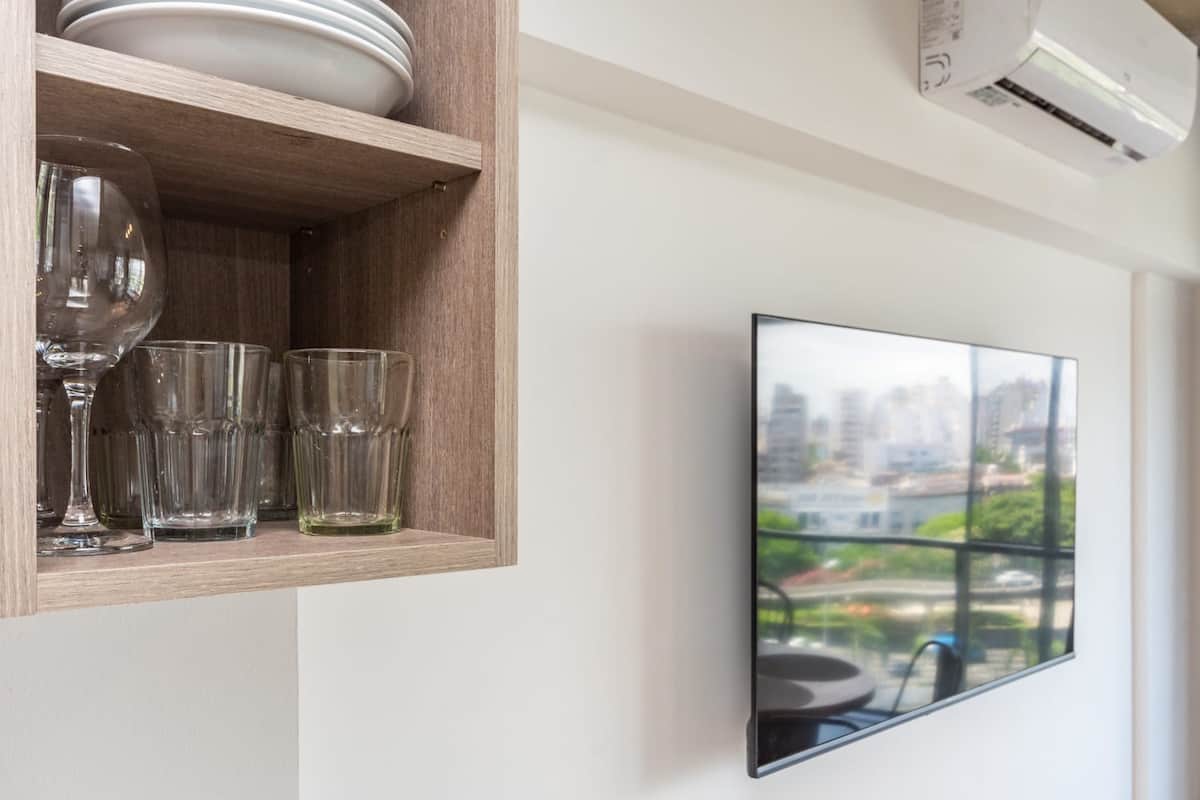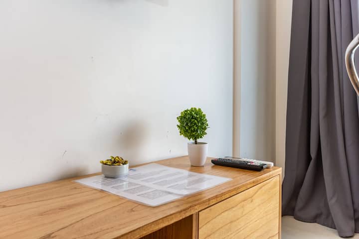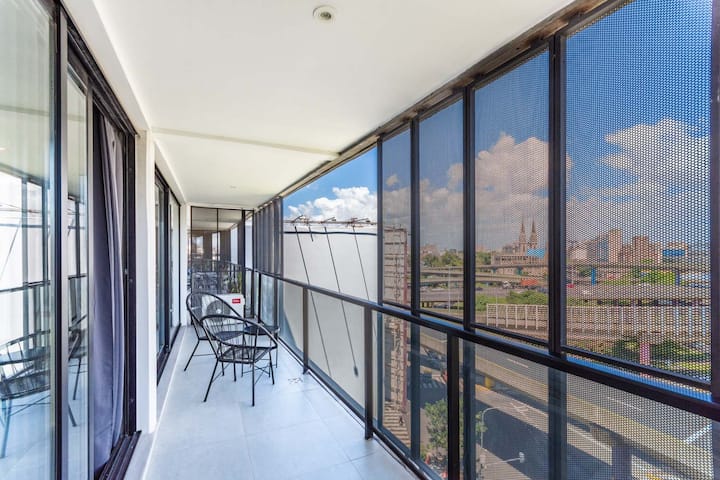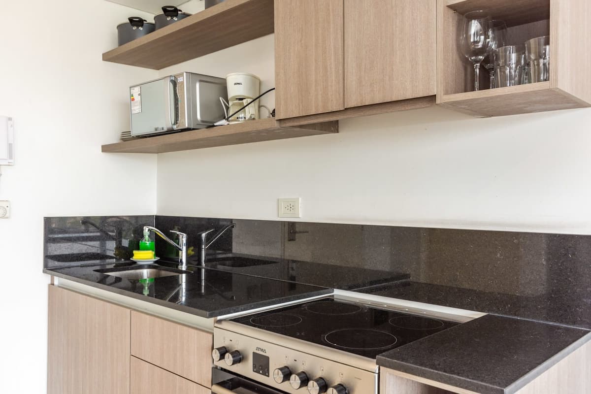 Квартира-лофт с 1 спальней в Constitución, новая. Кухня полностью оборудована, в гостиной установлен Smart TV. В числе принадлежностей кофеварка, электрочайник и посуда. В здании на 3-м этаже есть общая рабочая зона и переговорная с быстрым Wi‑Fi. Квартира выходит на сторону станции San Juan линии C метро. Вход в здание осуществляется через сейф с ключом, в квартиру — с электронным замком с кодом; кабельное телевидение отсутствует.