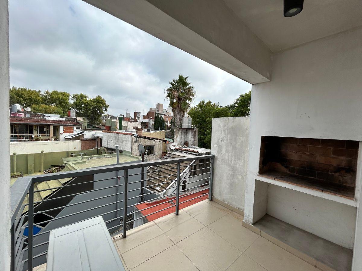 Квартира в Flores с 2 комнатами, 1 спальней и балконом-террасой с зоной гриля, с (закреплённым) парковочным местом под навесом. Отдельная кухня с местом для стиральной машины, 2 раковинами и электрической плитой. В гостиной и спальне есть кондиционеры. Ванная комната с ванной, напольное покрытие из керамогранита, квартира недавно покрашена. Коммунальные платежи здания включают AYSA; ABL указан отдельно. Максимум 3 человека; допускаются небольшая собака или кошка. Требуются гарантия (имущественна