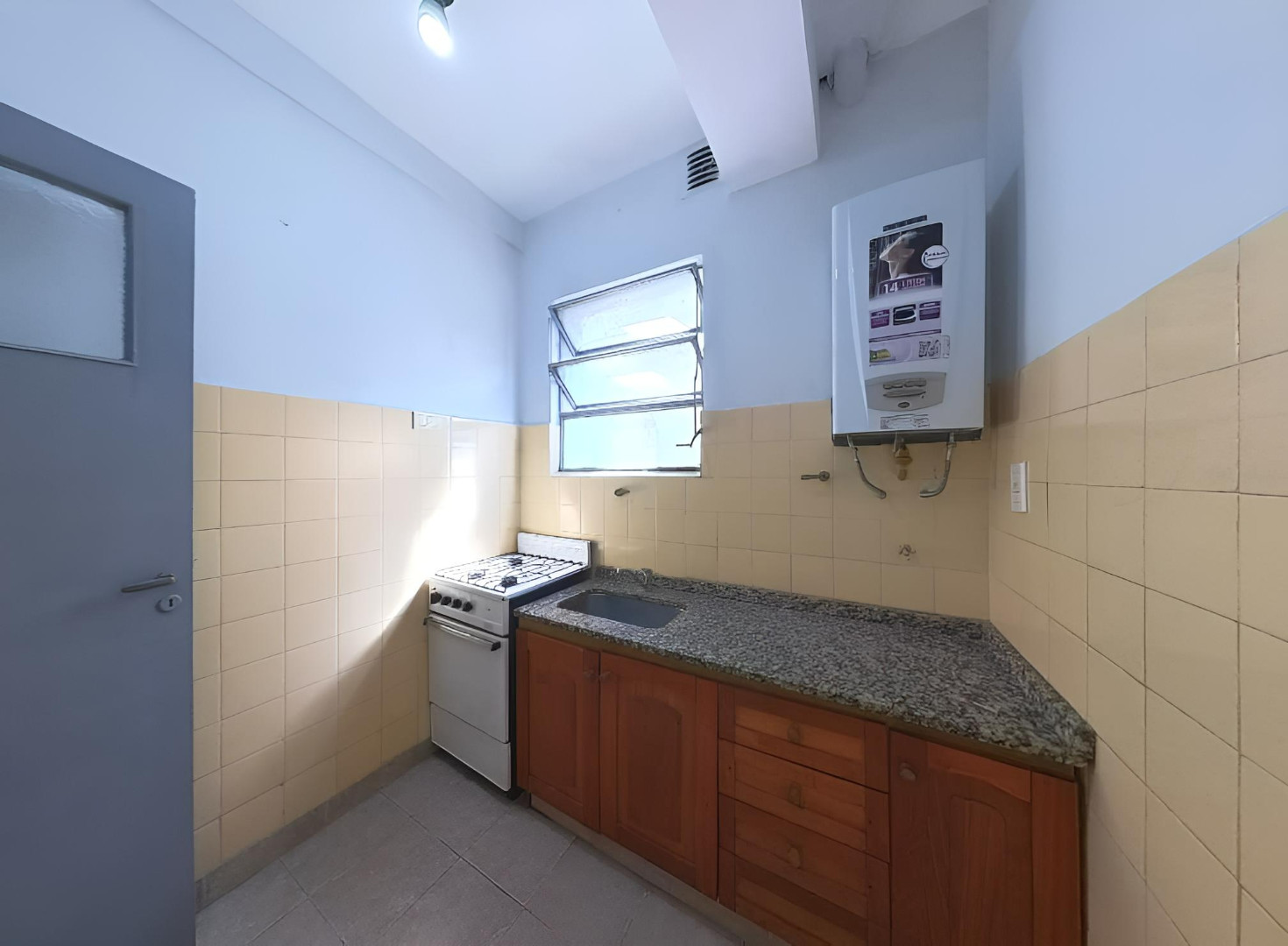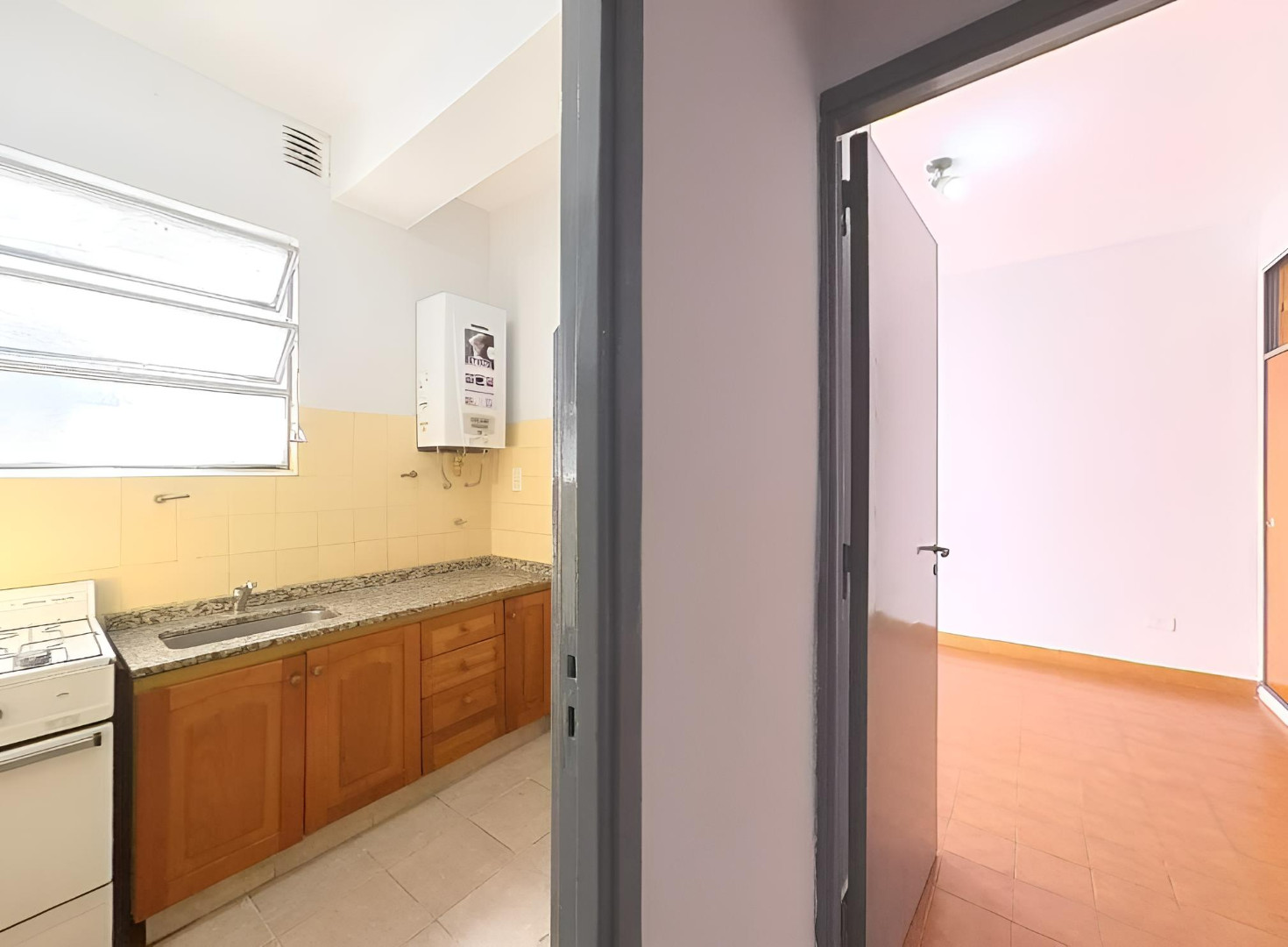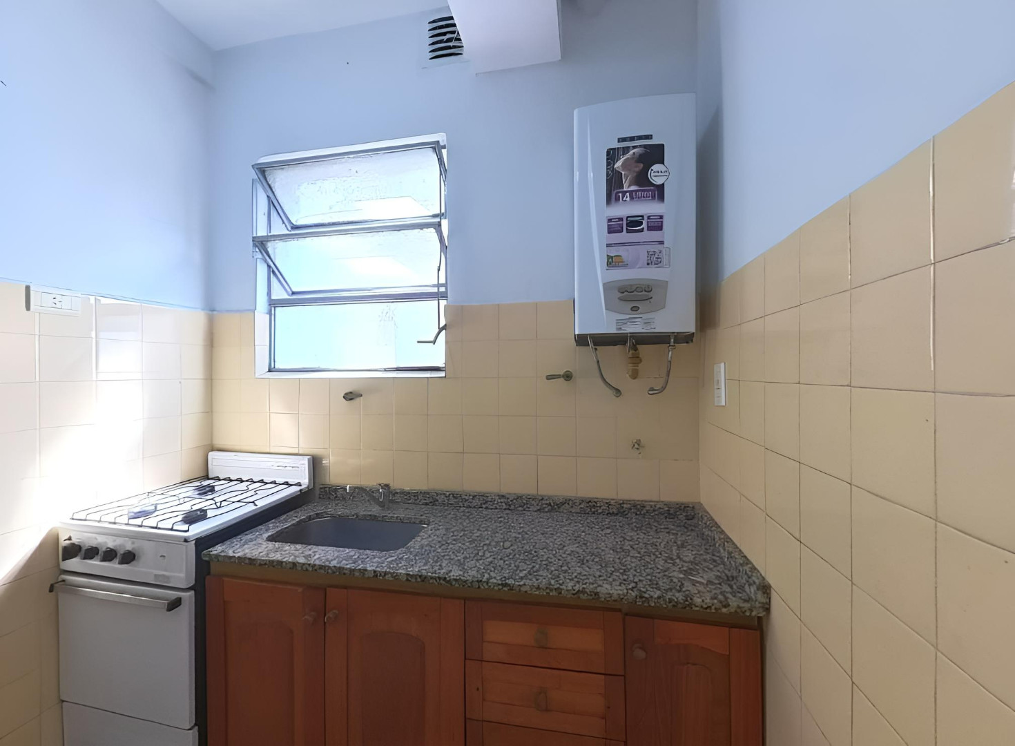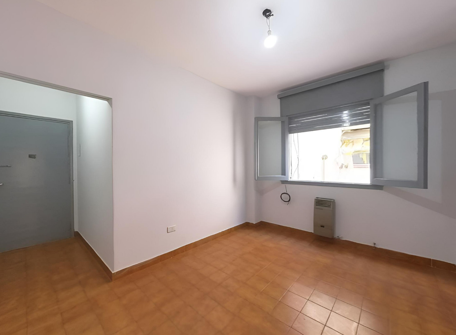 Квартира в Floresta, 2 комнаты, 2-й этаж без лифта. Окна выходят на внутренний двор квартала; ориентация на северо-запад. Жилая зона совмещена с обеденной, есть отдельная кухня и полностью оборудованная ванная комната. Отопление и кондиционирование в объявлении не указаны. Коммунальные платежи здания и услуги: $45.000 в месяц.