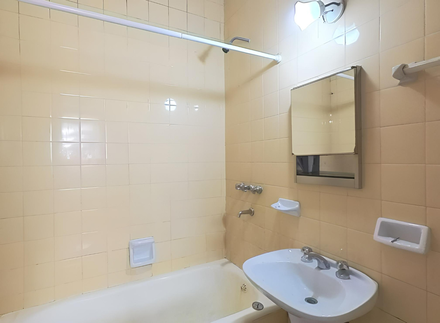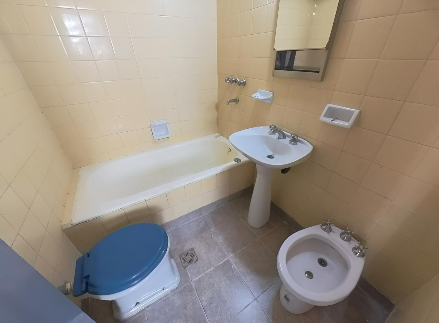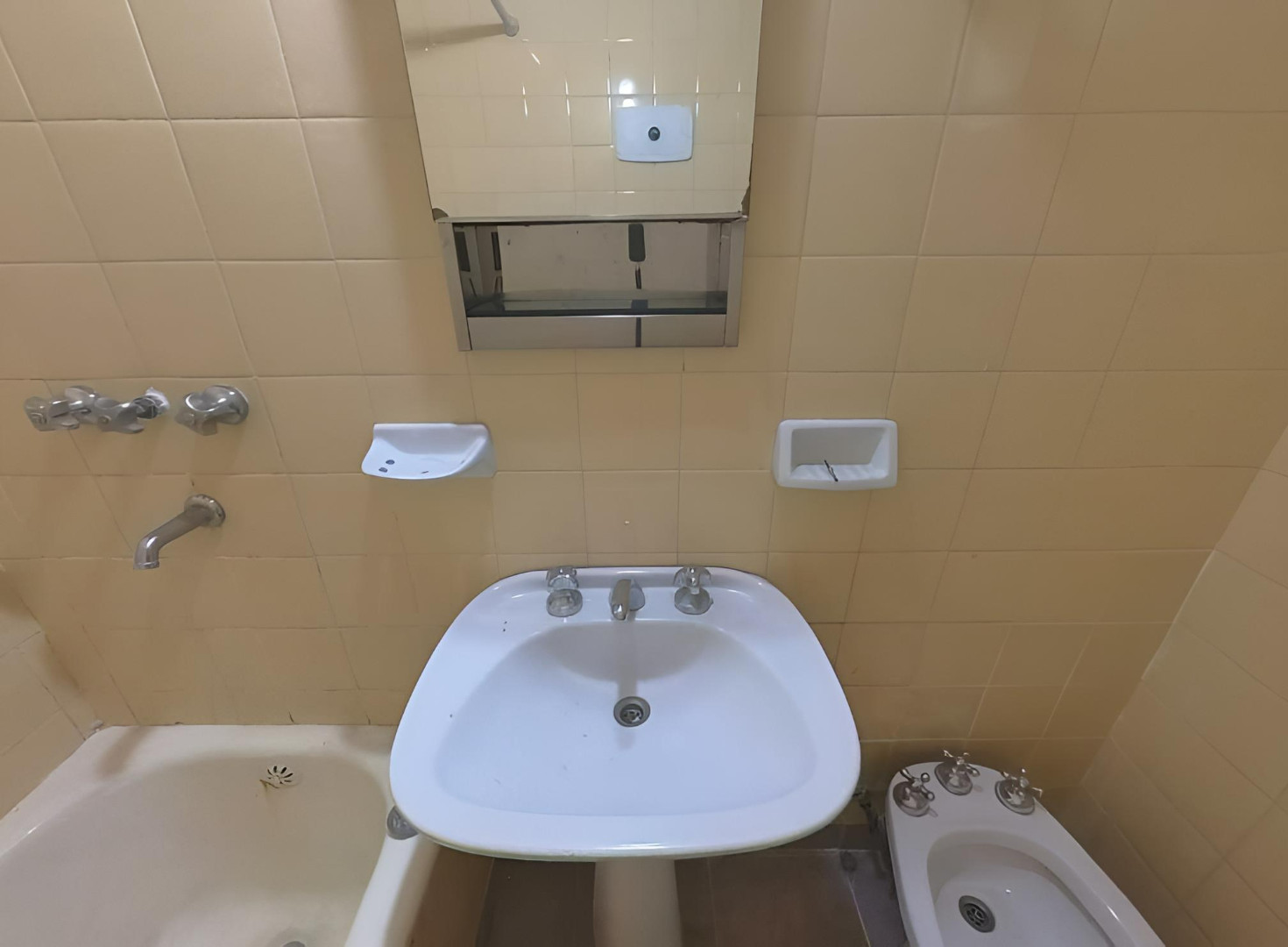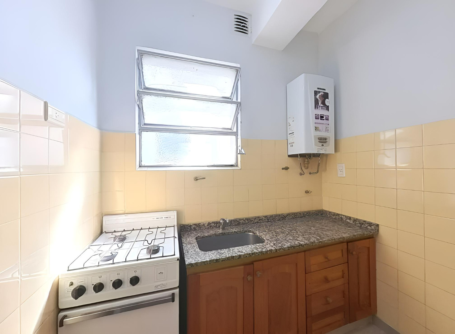 Квартира в Floresta, 2 комнаты, 2-й этаж без лифта. Окна выходят на внутренний двор квартала; ориентация на северо-запад. Жилая зона совмещена с обеденной, есть отдельная кухня и полностью оборудованная ванная комната. Отопление и кондиционирование в объявлении не указаны. Коммунальные платежи здания и услуги: $45.000 в месяц.