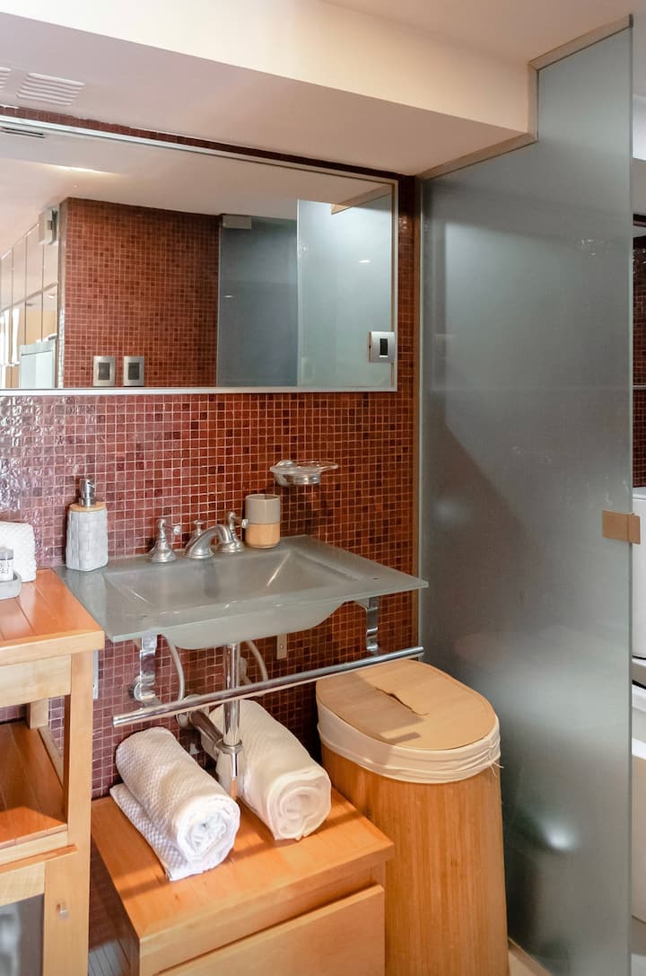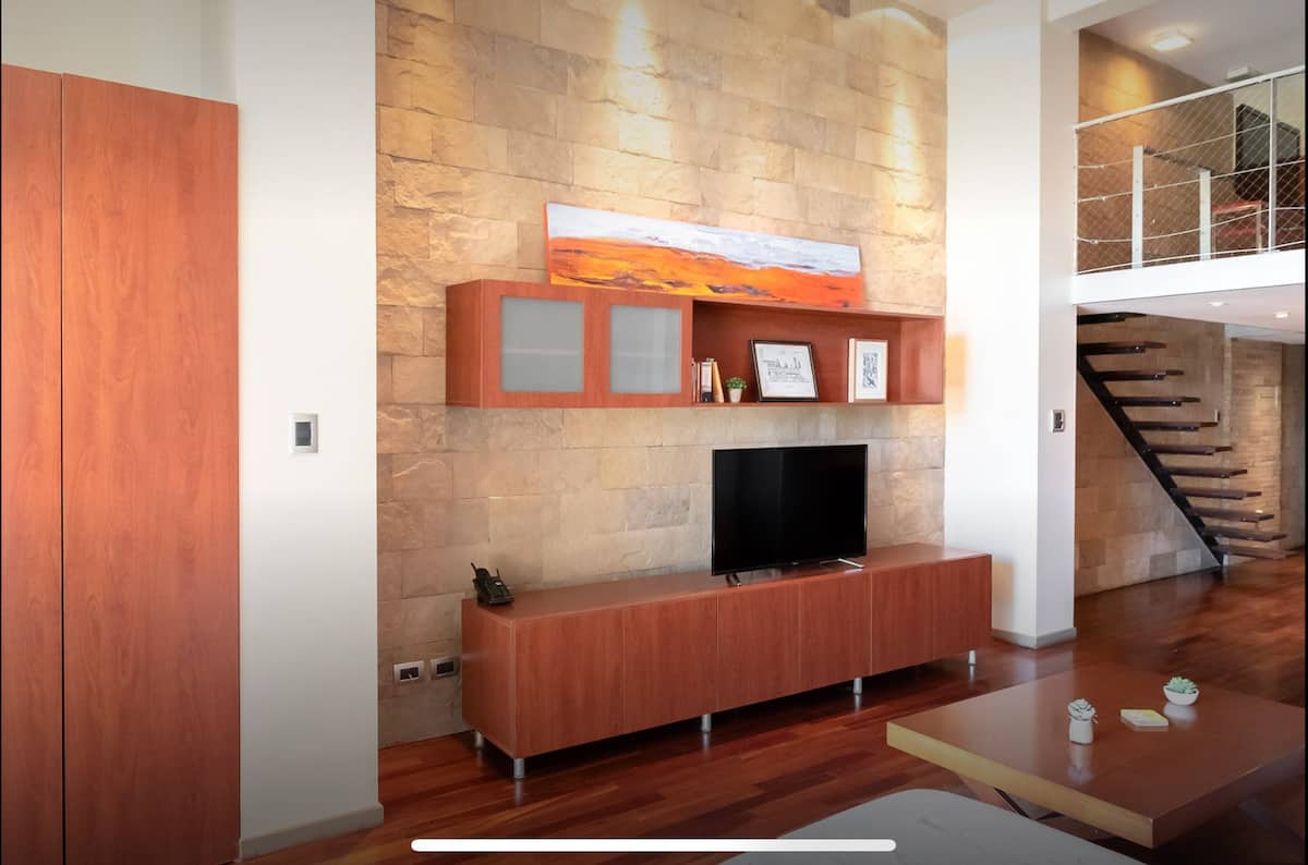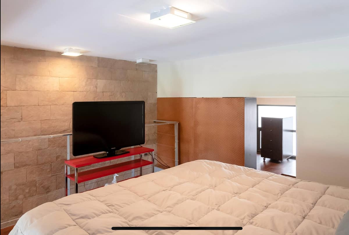 Квартира-лофт в Florida, 1 спальня, 1,5 ванных комнаты. Полностью меблирована: кровать king size, телевизор Smart TV в гостиной и LCD TV. Кухня укомплектована, есть система air/heat и балкон с зоной гриля на газе. В доме предусмотрены бассейн, тренажёрный зал, зона отдыха, круглосуточная охрана, парковка, зал для мероприятий, прачечная. Остановка автобуса находится напротив, рядом станция «Florida».