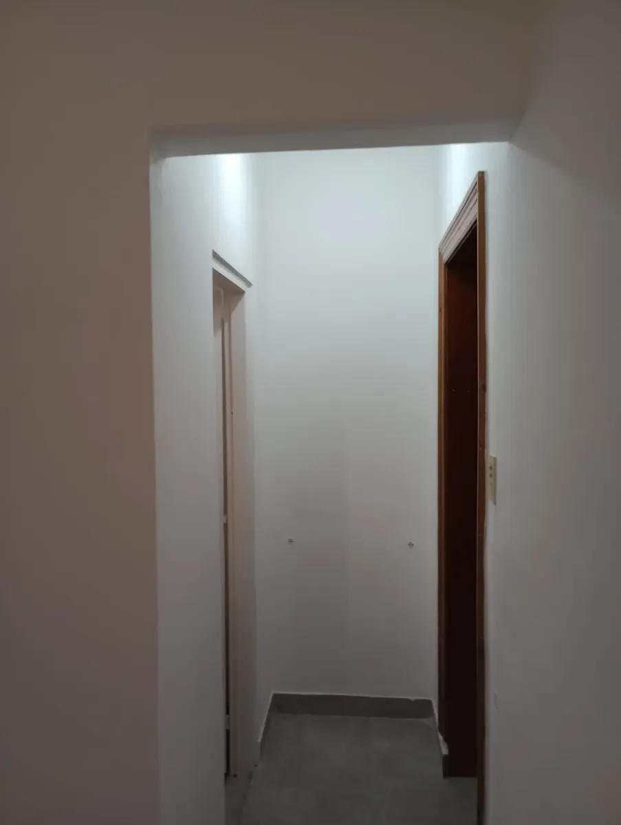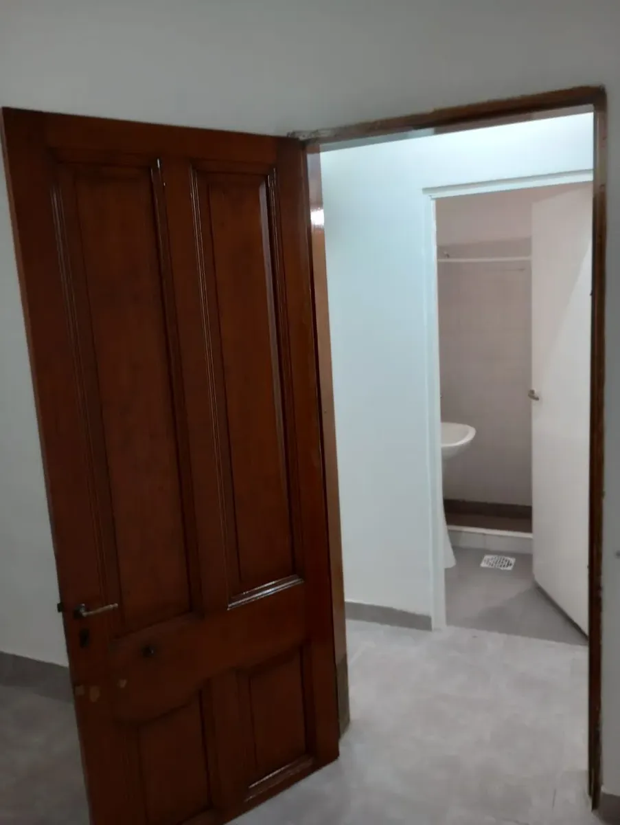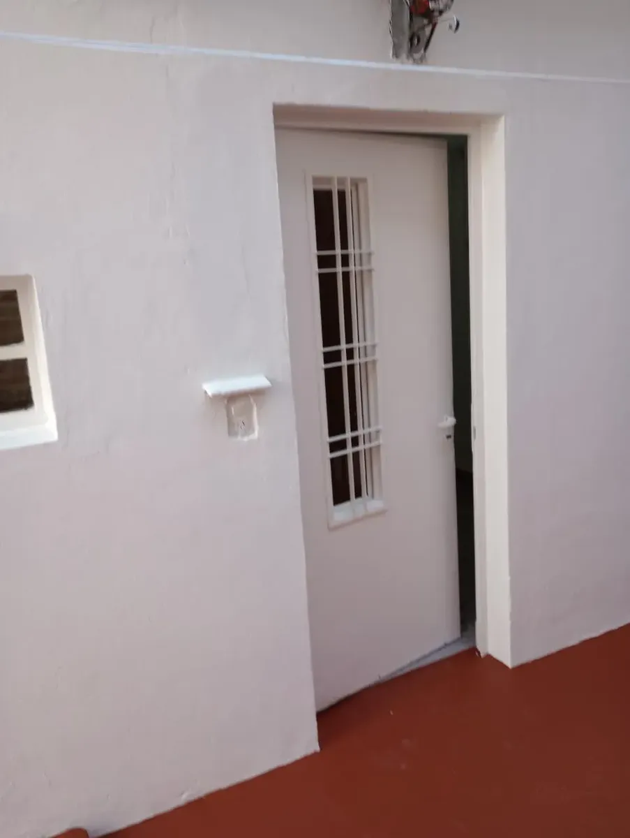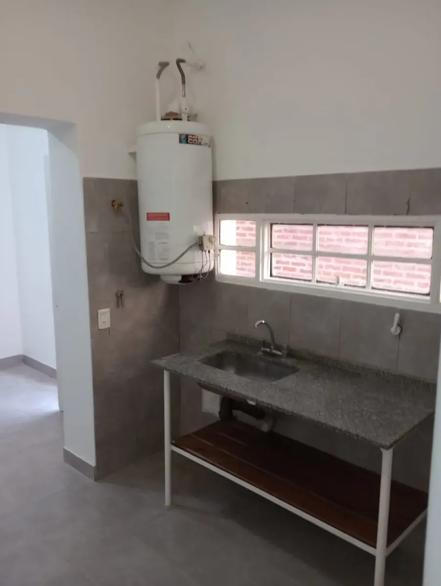 Квартира типа casa в Hurlingham с 1 спальней. Планировка включает кухню-гостиную, коридор, ванную комнату и отдельную прачечную/помещение для стирки. Есть внутренний двор с закрытым по периметру ограждением. Коммуникации: газ, электричество и городская канализация. Указано, что объект расположен рядом с общественным транспортом.