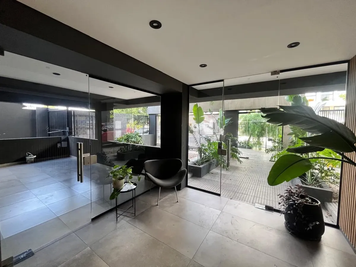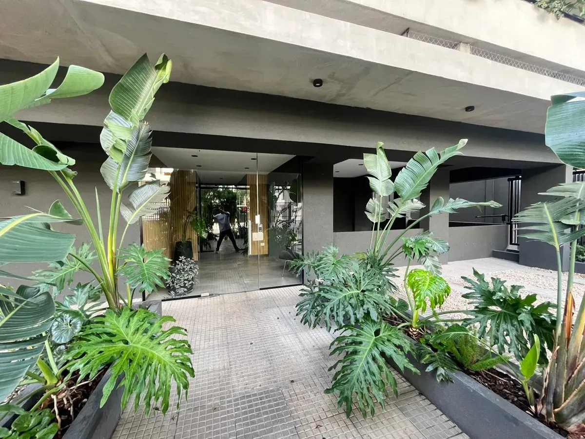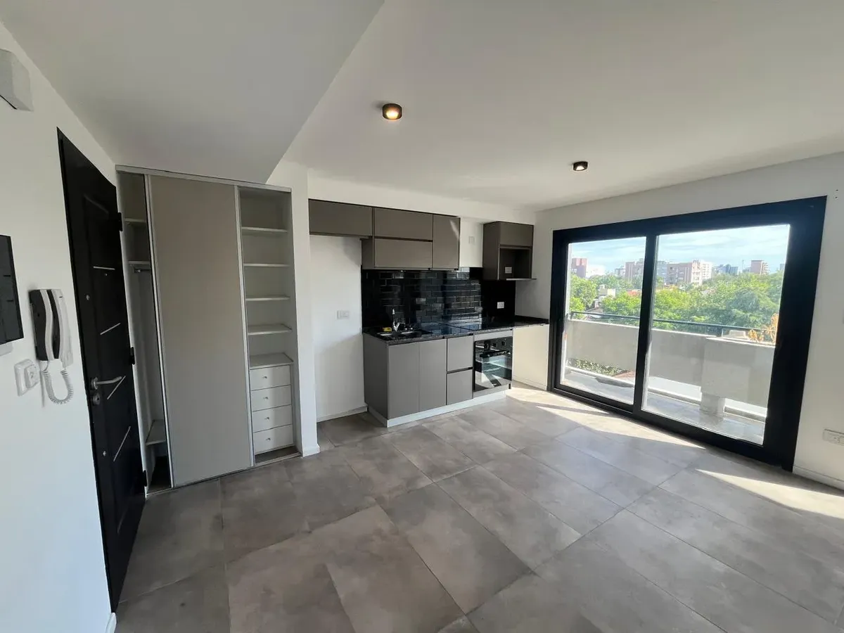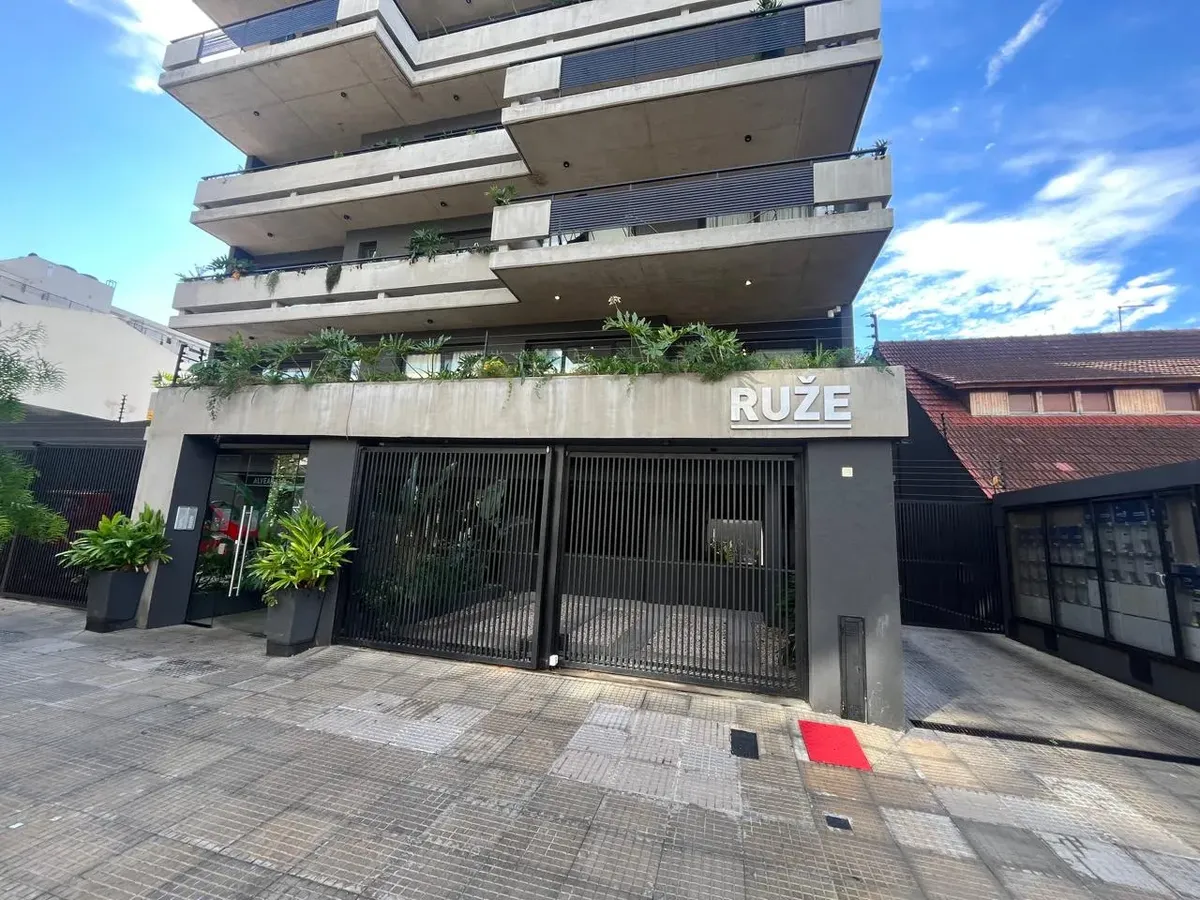 Квартира-студия в аренду в здании Ruze, окна на улицу, с большим балконом. Кухня интегрирована: мебель верхнего и нижнего яруса, электрическая духовка и варочная панель. Полноценная ванная комната, есть (закреплённое) парковочное место.