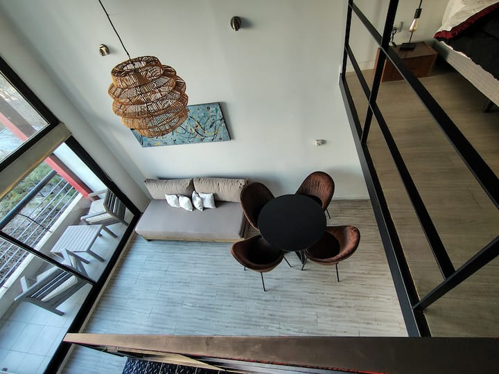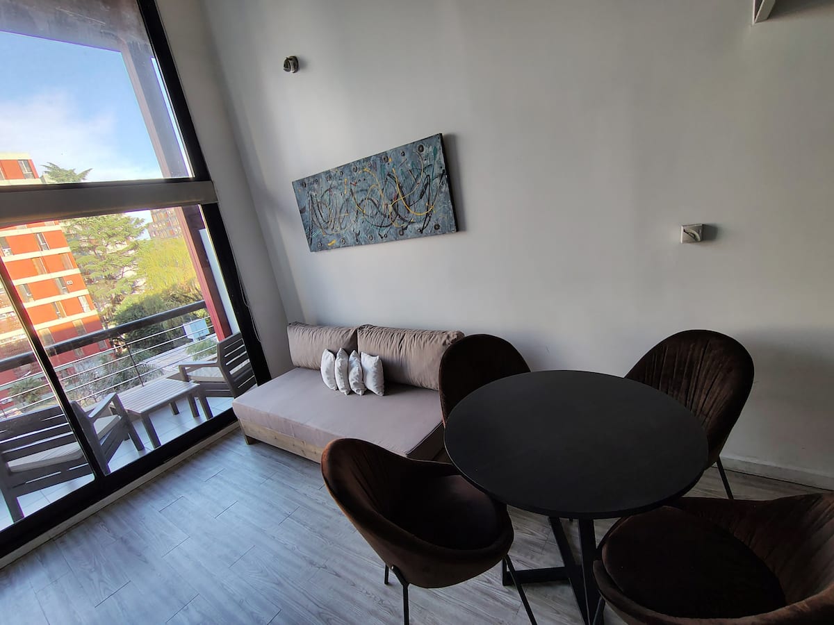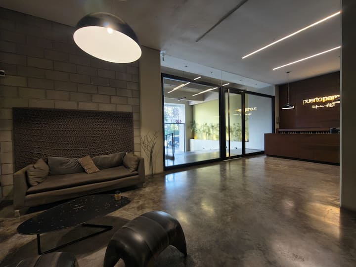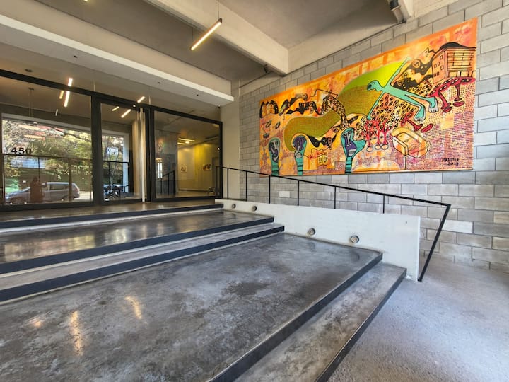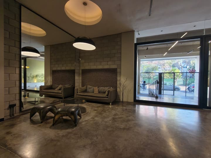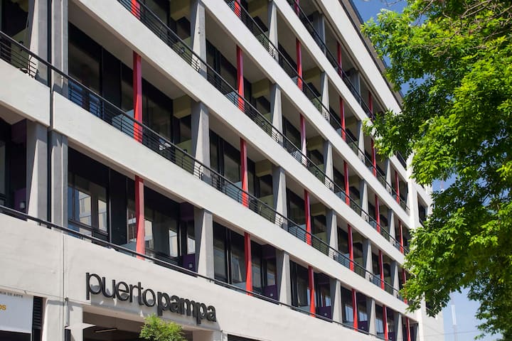 Квартира-лофт в La Boca, 1 спальня. В здании есть прачечная; для оплаты используется система предоплаченных токенов. В квартире предусмотрены детская кроватка и диван-кровать. Указано наличие кондиционера.