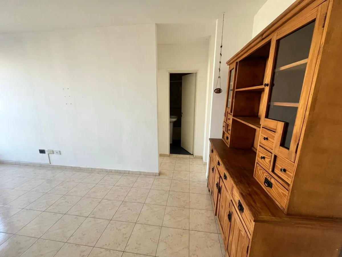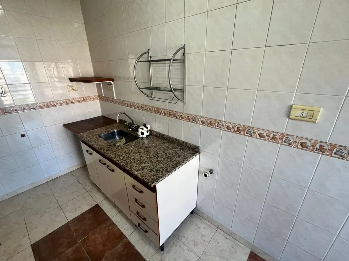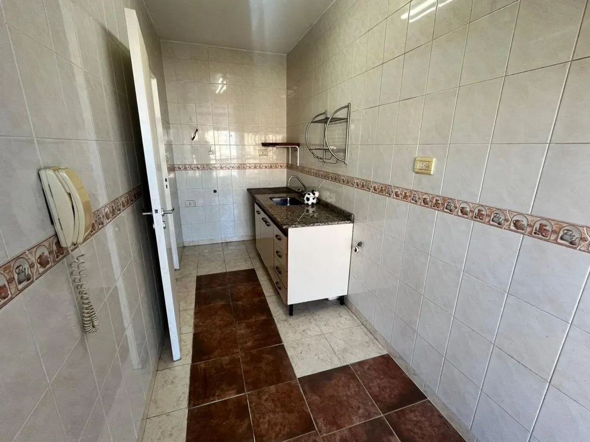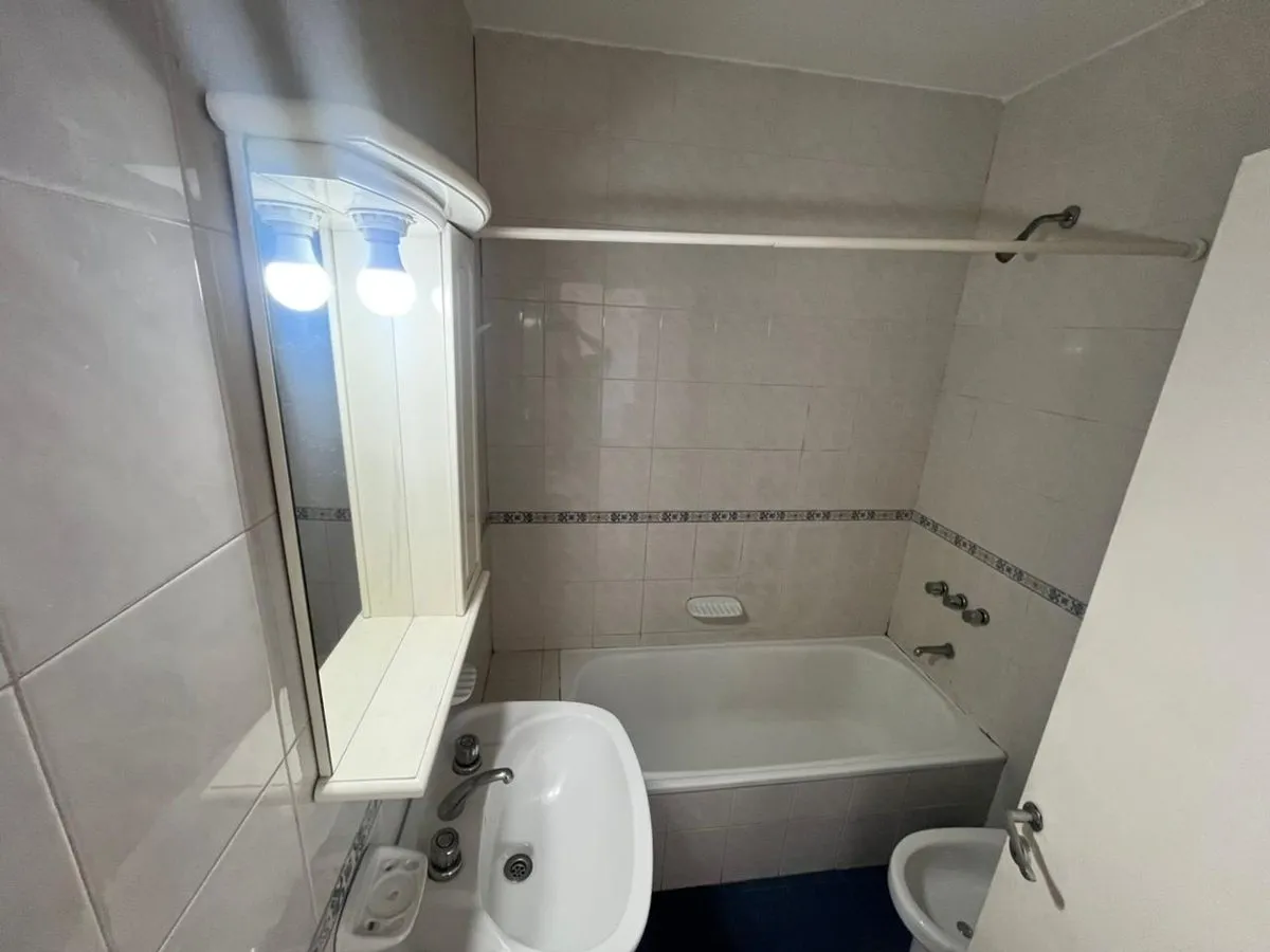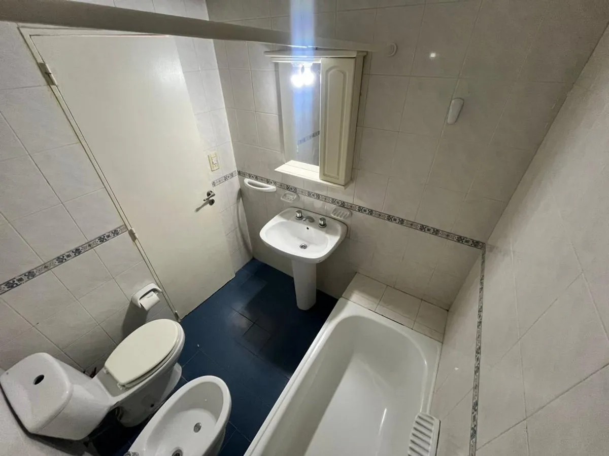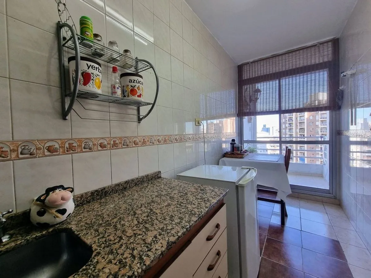 Квартира в La Boca, 2 комнаты, находится на 8-м этаже и выходит во двор квартала. Окна направлены на внутренний двор и на территорию Boca Juniors в Casa Amarilla; на дальнем плане виден стадион La Bombonera. В гостиной-столовой есть выход на балкон-террасу. Спальня с встроенным шкафом, отдельная кухня с собственным выходом на балкон, полная ванная комната. В аренду указаны коммунальные платежи здания (expensas) и доступность транспорта и инфраструктуры в районе, включая Caminito и Hospital Arger