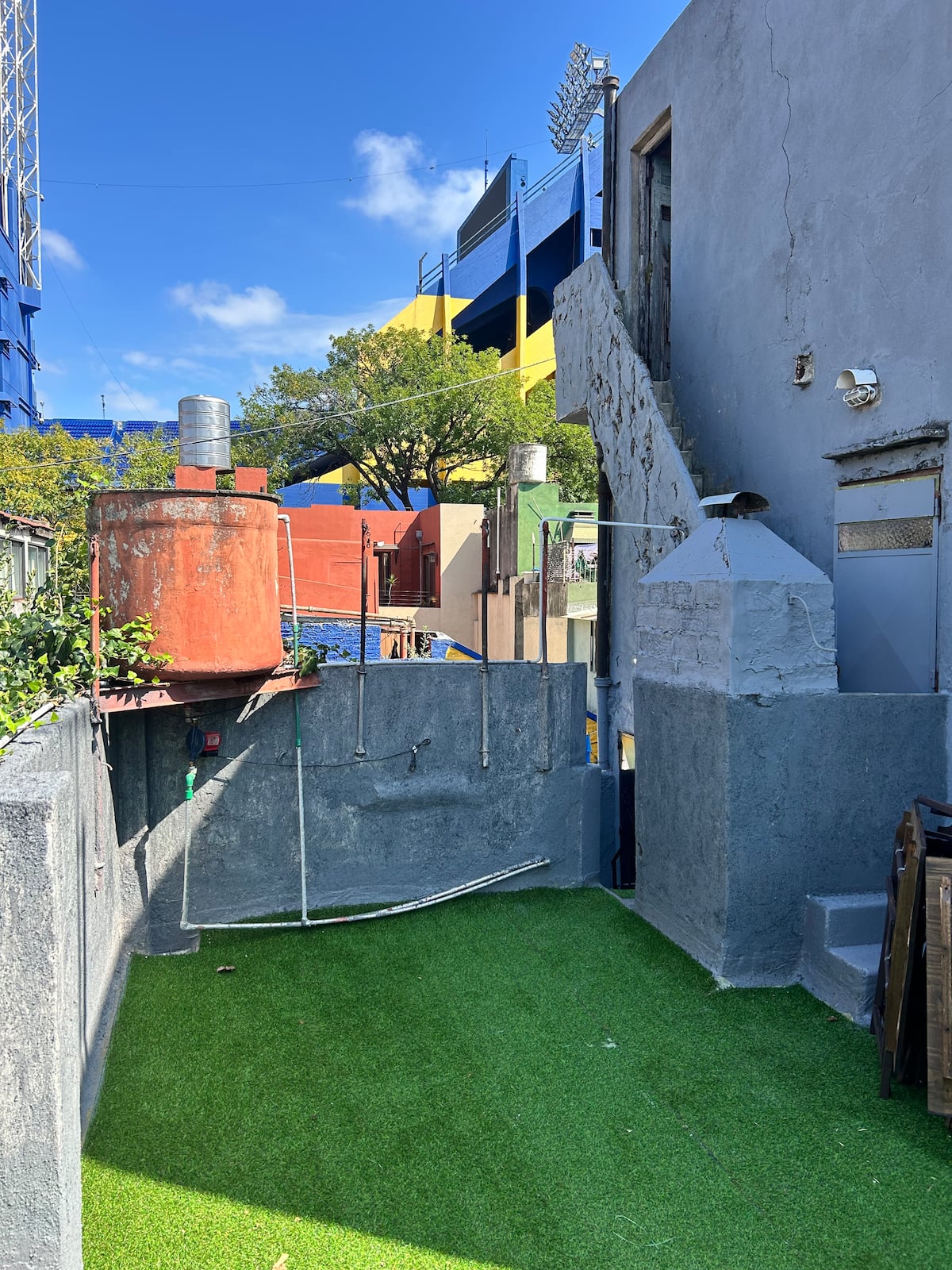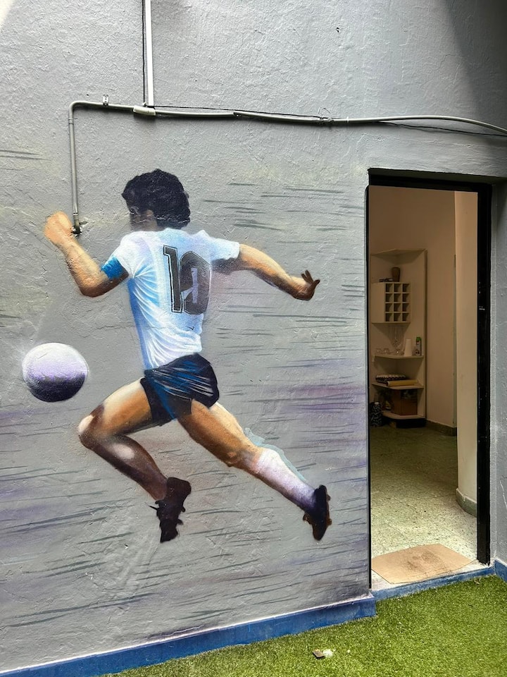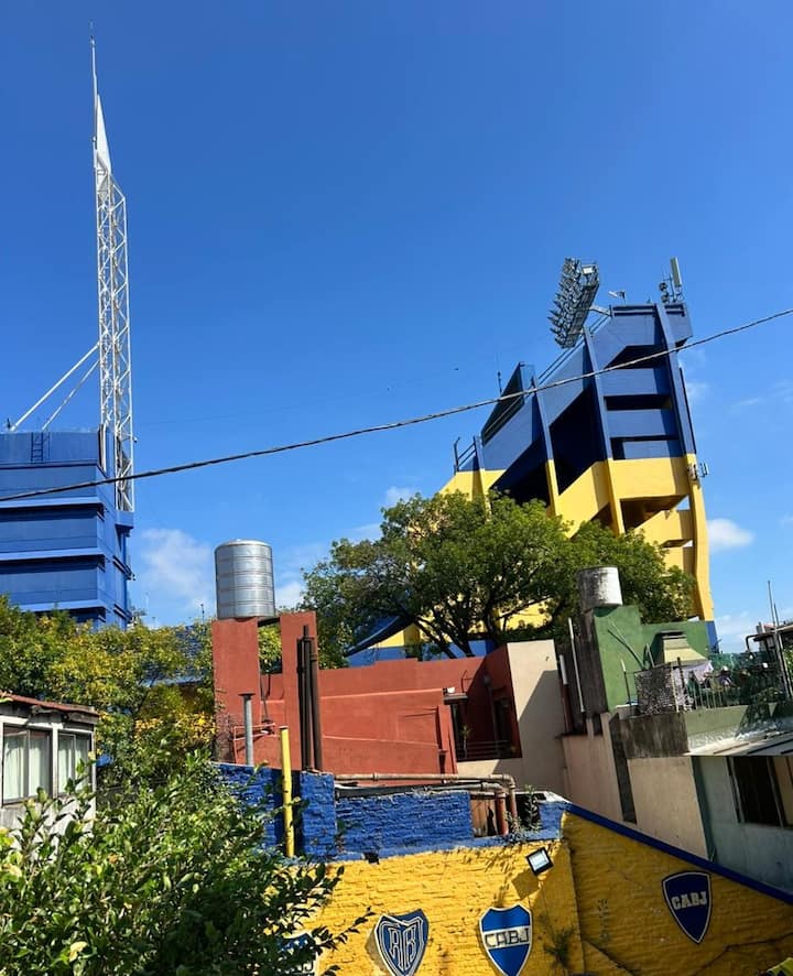 Хостел в районе La Boca напротив стадиона Boca. Номера рассчитаны до 6 человек и оборудованы индивидуальными запираемыми шкафчиками. Включены WiFi, кондиционер; вместимость объекта заявлена до 20 гостей. Общие зоны включают зону питания с фреской высотой 6 метров в стиле Maradona и террасу с видом на La Bombonera. Гости имеют свободный доступ ко всем общим зонам.