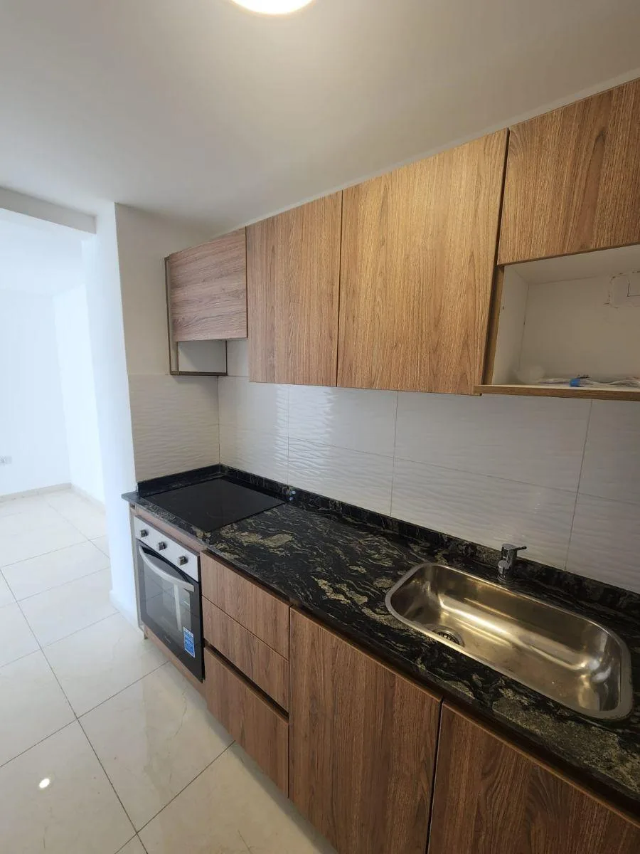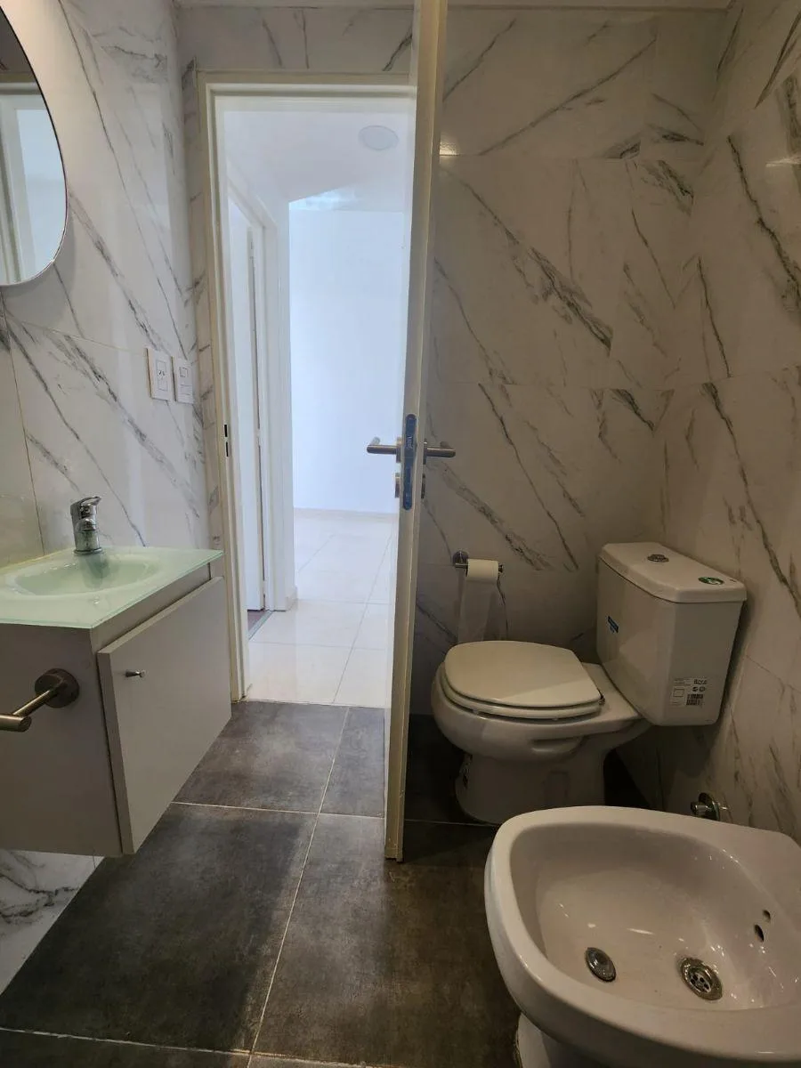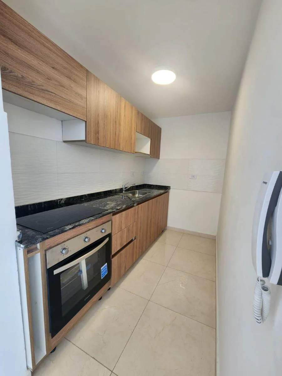 Квартира в аренду, 2 комнаты, 1 спальня, с балконом. Новая (никто не жил), окна с остеклением DVH, напольное покрытие: керамогранит в гостиной и ламинат в спальне. Установлены сплит Philco Ecoplus Inverter (холод/тепло), электрическая плита и электрическая духовка Candy, кухонная мебель верхних и нижних ящиков, ванная с тумбой, керамогранитом и душевой перегородкой, а также кладовая/постирочная зона в зоне распределения. В здании есть электрогенератор для общих частей и для квартир, общая гостин