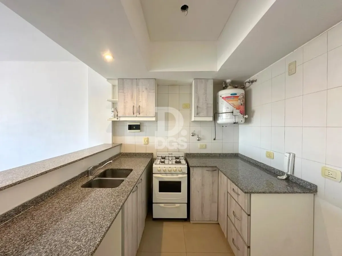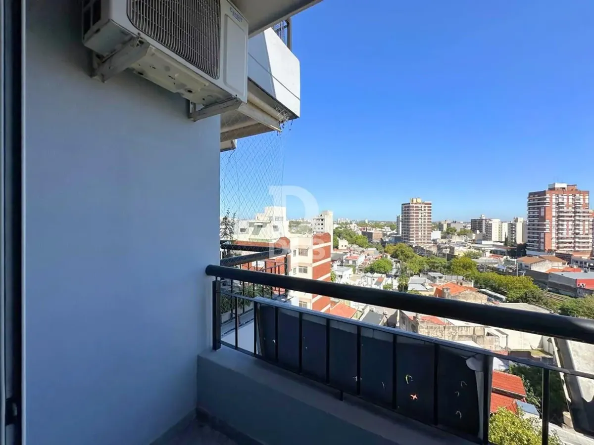 Квартира в полуэтажной планировке из 2 комнат в Lanús Este с закреплённым парковочным местом. В гостиной-столовой установлен кондиционер холод/тепло, есть балкон с окнами на улицу. Кухня с мебелью под столешницей и навесными шкафами, барной стойкой; спальня с встроенным шкафом и окнами во двор. В ванной комнате ванна и тумба; в описании указана панорамная видимость. В здании предусмотрены электромагнитный замок на входной двери и на доступе к лифту, а также камеры видеонаблюдения с управлением с