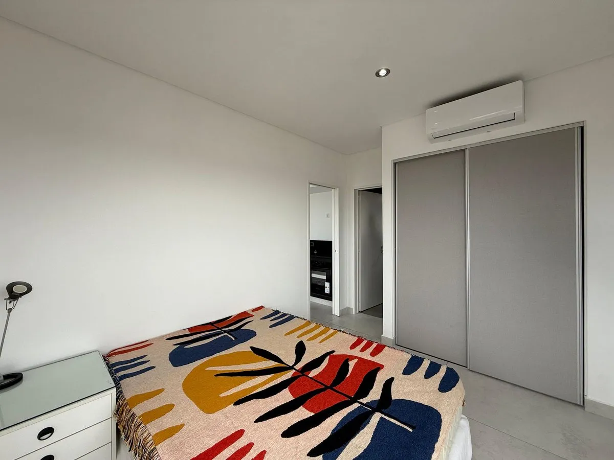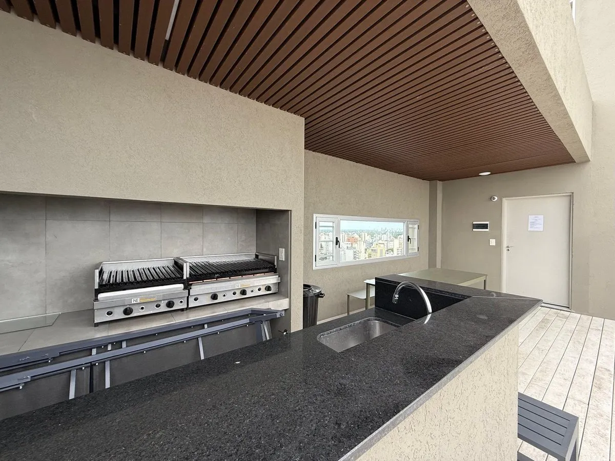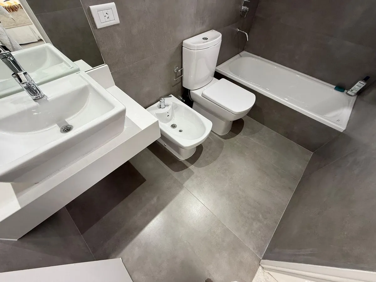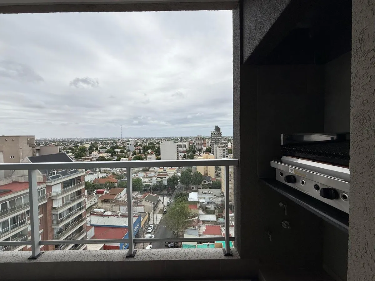 Квартира в формате 2 ambientes в Lanús Este, новая (никто не жил), 14-й этаж. Окна на улице; с балконом на всю длину и зоной гриля на газу. Внутри: гостиная-столовая с объединённой кухней, спальня с встроенным шкафом, полное санитарное помещение; установлены кондиционеры холод/тепло в каждом помещении. Кухня оборудована тумбой под умывальник, варочной поверхностью и электрической духовкой, межкомнатные проёмы из алюминия со стеклопакетами, напольное покрытие — керамогранит. В здании 18 этажей, 6