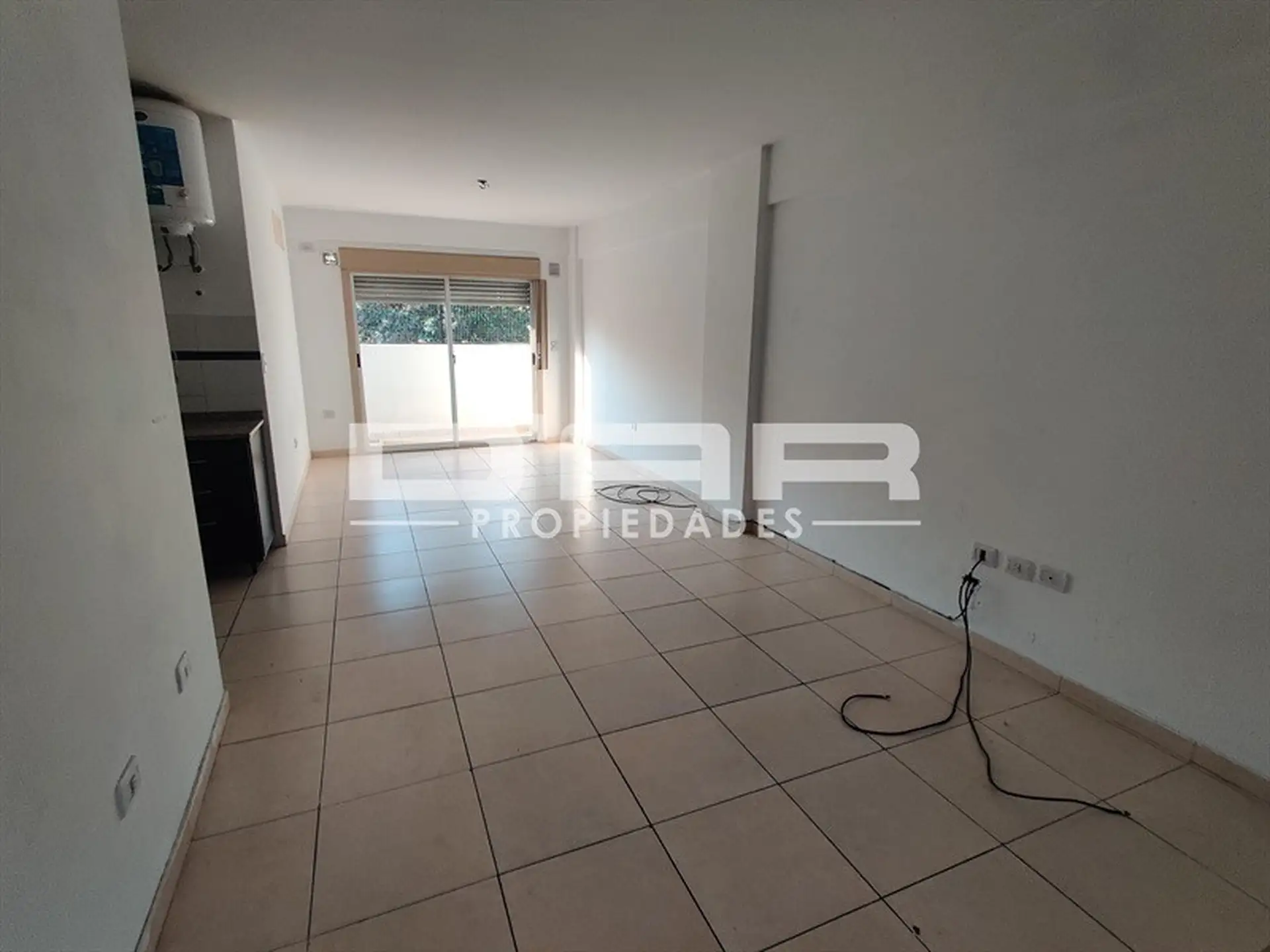 Квартира-студия в Liniers, 1 комната, расположена на 1-м этаже по лифту, окна во двор. В здании 4 этажа, по 4 квартиры на этаже. В комнате есть отопление типа tiro balanceado. Отдельная кухня 3x1.50 с мебелью нижнего яруса и электрическим бойлером. Полная ванная с душем, предусмотрено место под стиральную машину и раковину для стирки (pileta).