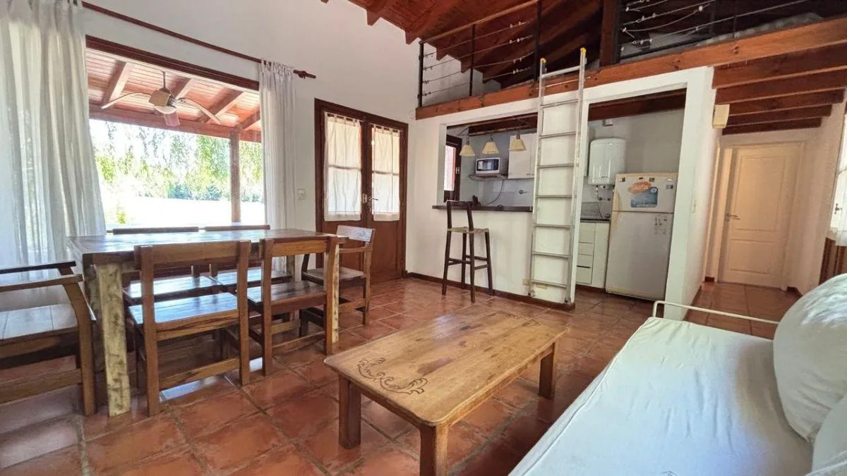PH в Club de Campo Santa Catalina в Open Door, квартира-студия (2 ambientes) общей площадью 92 m², в одном уровне. Кухня интегрирована, гостиная-столовая с дровяным камином, спальня, полноценная ванная. Есть антресоль с кроватями и TV. Квартира с мебелью и оборудованием, во всех помещениях установлены кондиционеры, окна выходят на улицу/на внешнюю сторону. Гостиная выходит на широкую галерею с зоной гриля, есть бассейн общего пользования для 12 dormies. Аренда 500 USD в месяц плюс коммунальные п