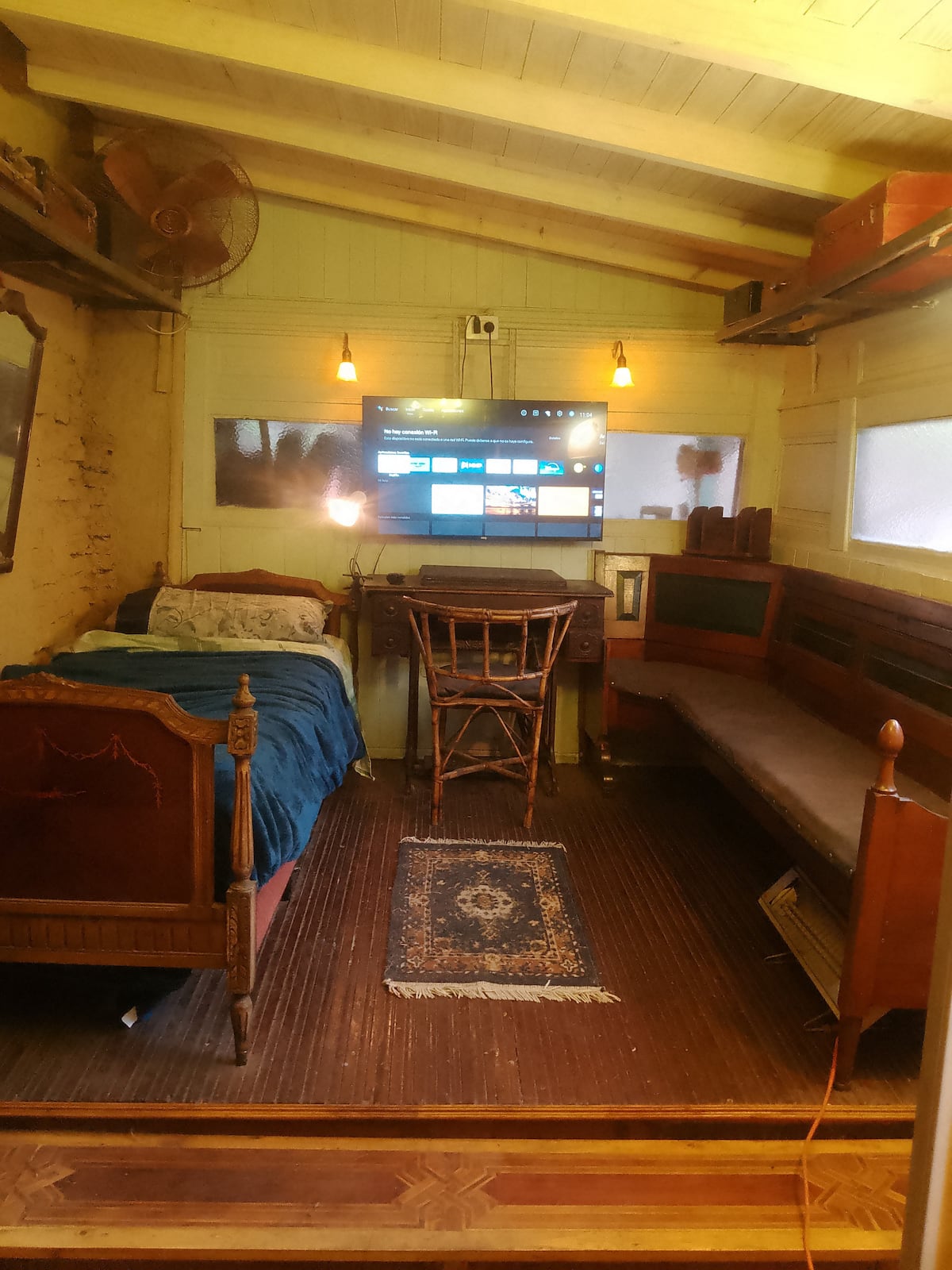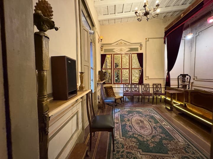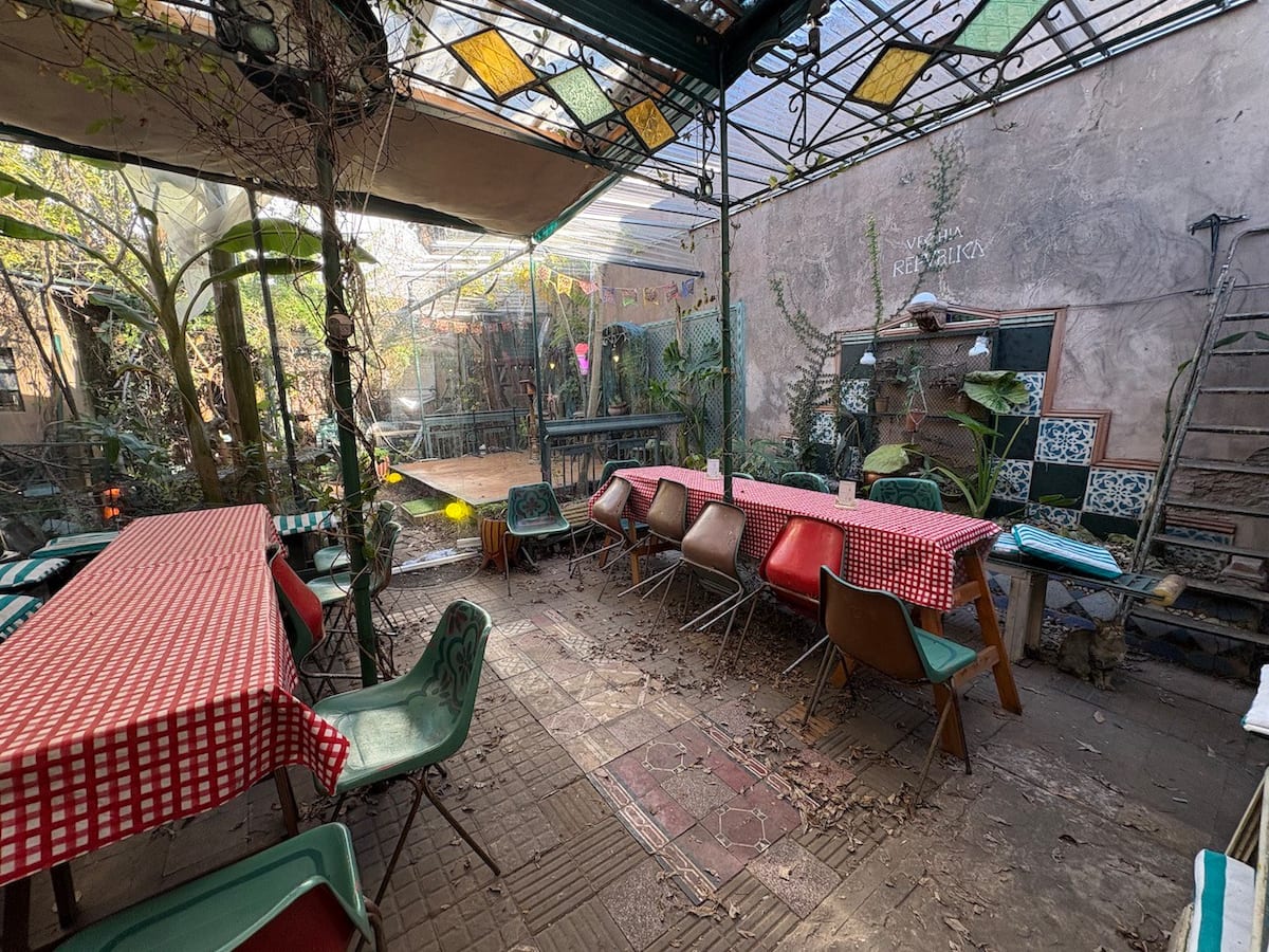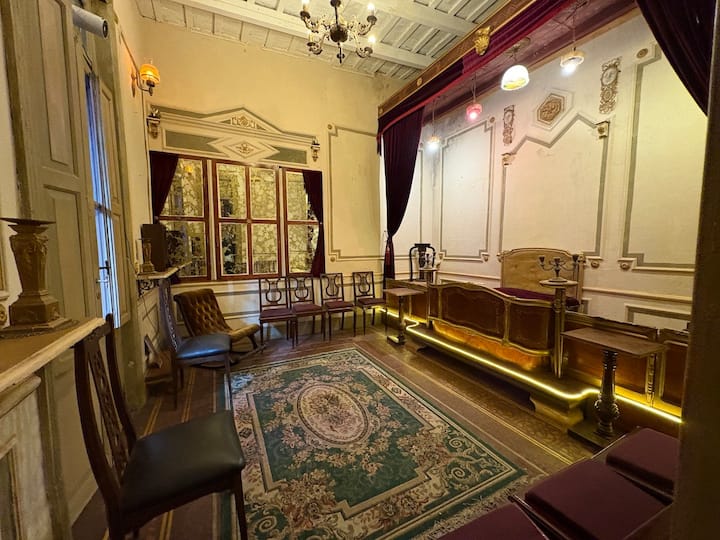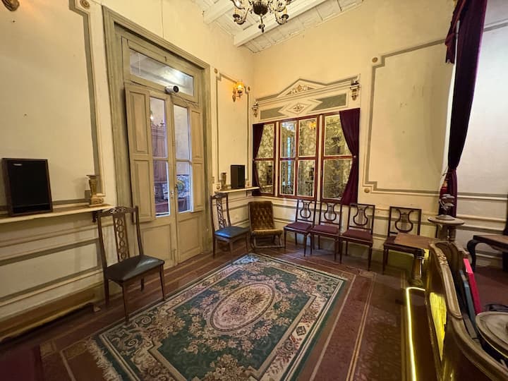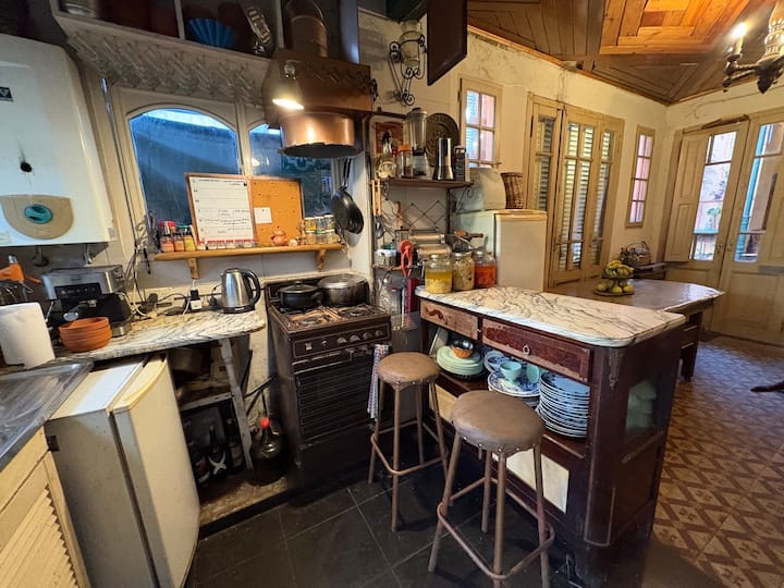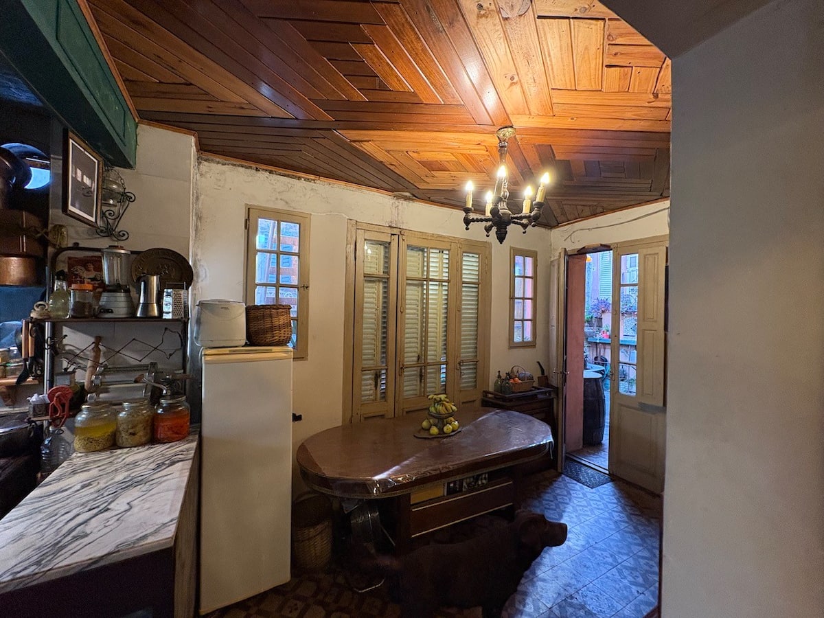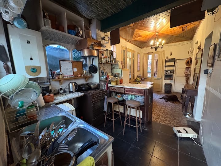 В объявлении упоминается Art House «Vieja República» в Mataderos. Рассматривается пространство с входными воротами и внутренней садовой зоной, оформленной как «room set» в старых железнодорожных вагонах.