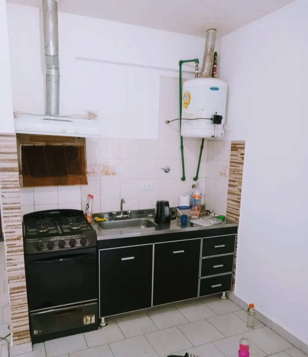 Квартира-студия в Mataderos. Общая площадь 23 m² (19 m² крытых): объединённое пространство с зоной гостиной/спальни и кухни открытого типа, полноценная ванная комната. Большое окно на улицу. Есть собственный внутренний дворик площадью 4 m². Коммунальные платежи здания указаны как примерно $70.000 ARS.
