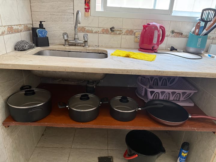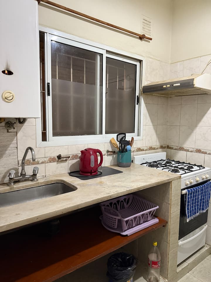 Квартира PH с отдельным входом на первом этаже в Mataderos. В ней 1 спальня с двуспальной кроватью и встроенным шкафом. Просторная гостиная допускает размещение дополнительной кровати. Кухня полностью оборудована: газовая плита, электрочайник и кофеварка.