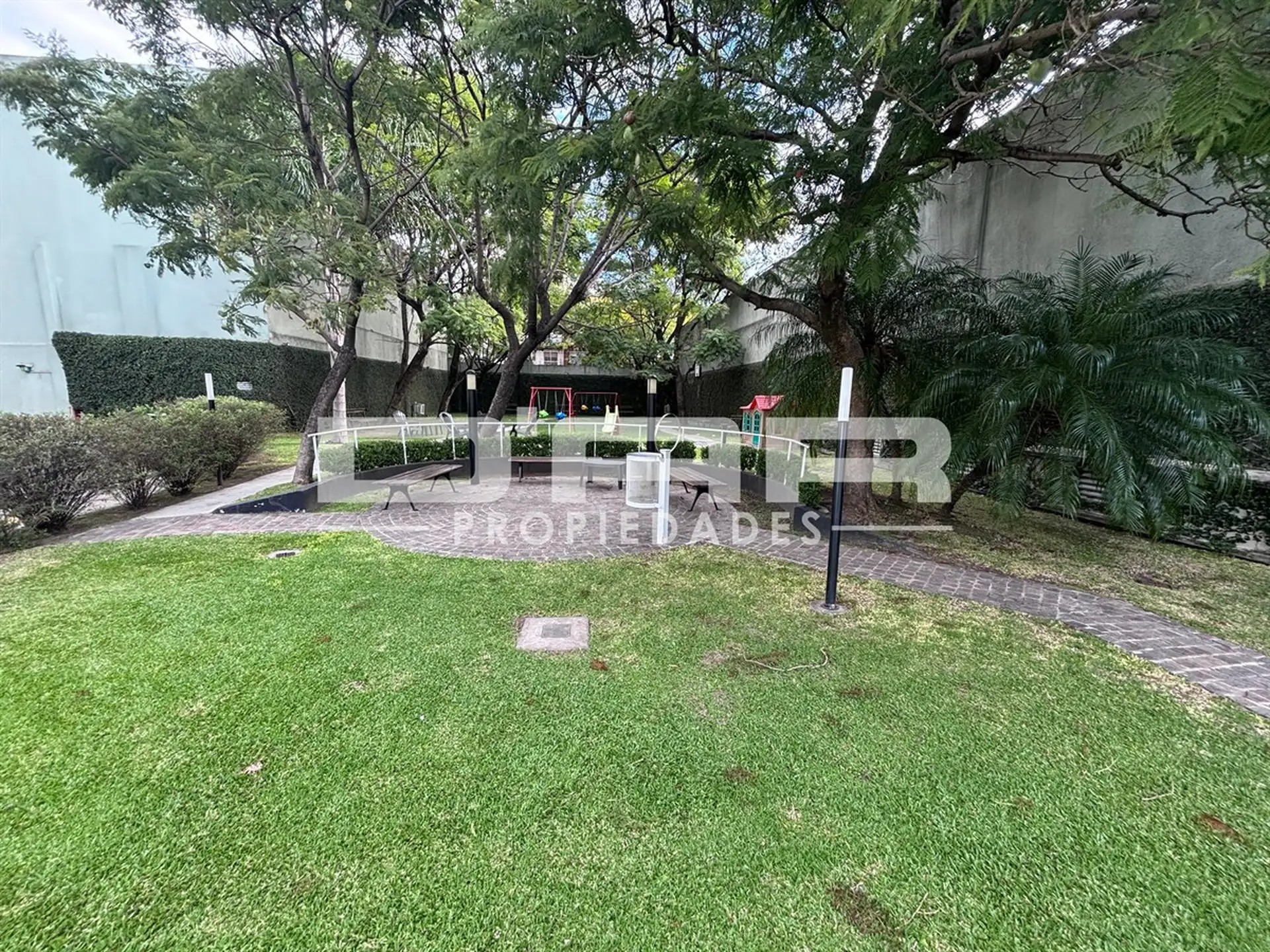 Квартира-студия на 5-м этаже, окна на улицу. В составе совмещённая гостиная с выходом на балкон, отдельная кухня с газовой плитой, кладовой и нижними шкафами; естественная вентиляция. Спальная зона с гардеробной и выходом на балкон, полноценная ванная комната с ванной. Отопление — тёплый пол. В здании круглосуточная охрана, есть гостевая парковка, бассейн, общая гостиная для жильцов (SUM), зелёная зона и игровая площадка. Условия аренды: гарантия CABA или залог-страховка аренды, подтверждение до