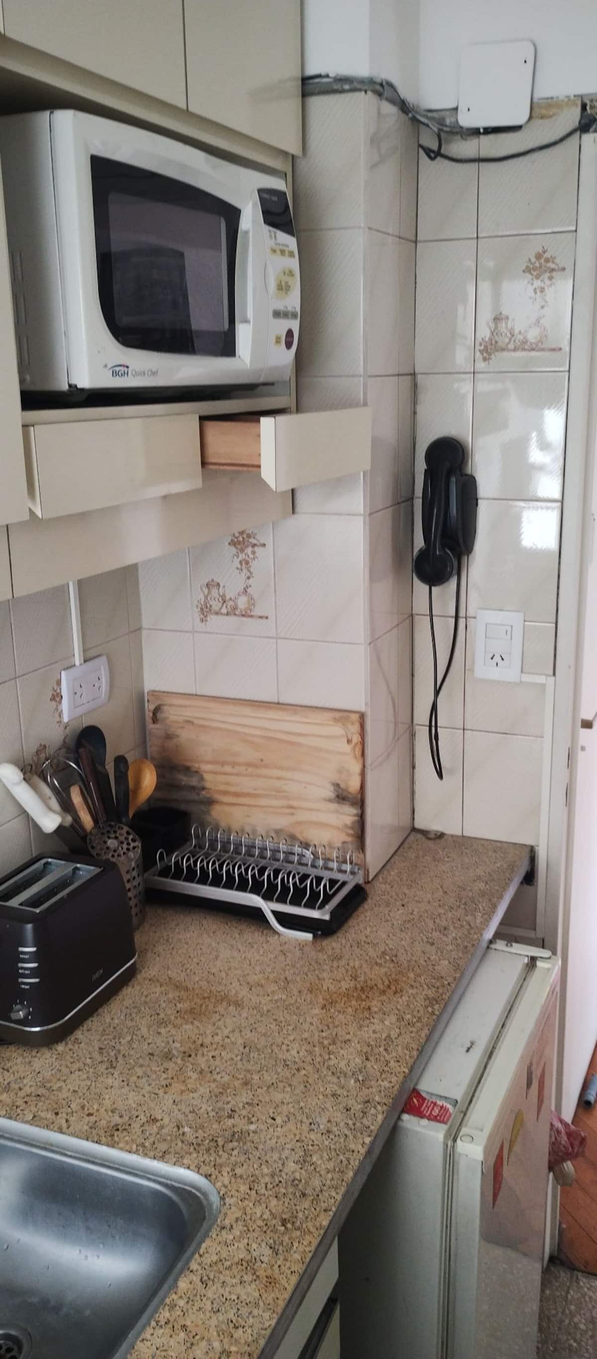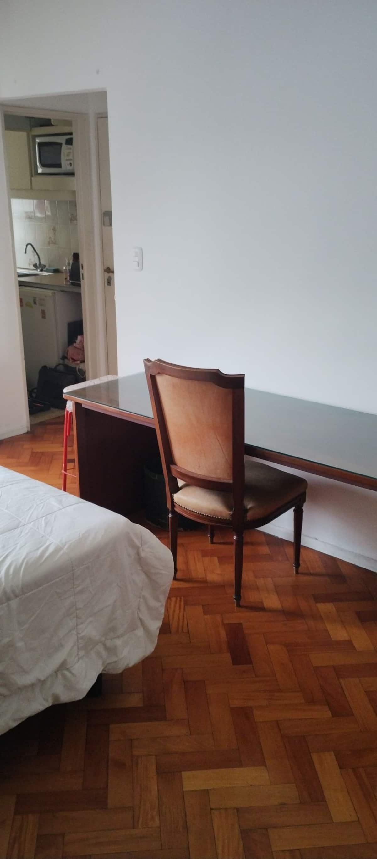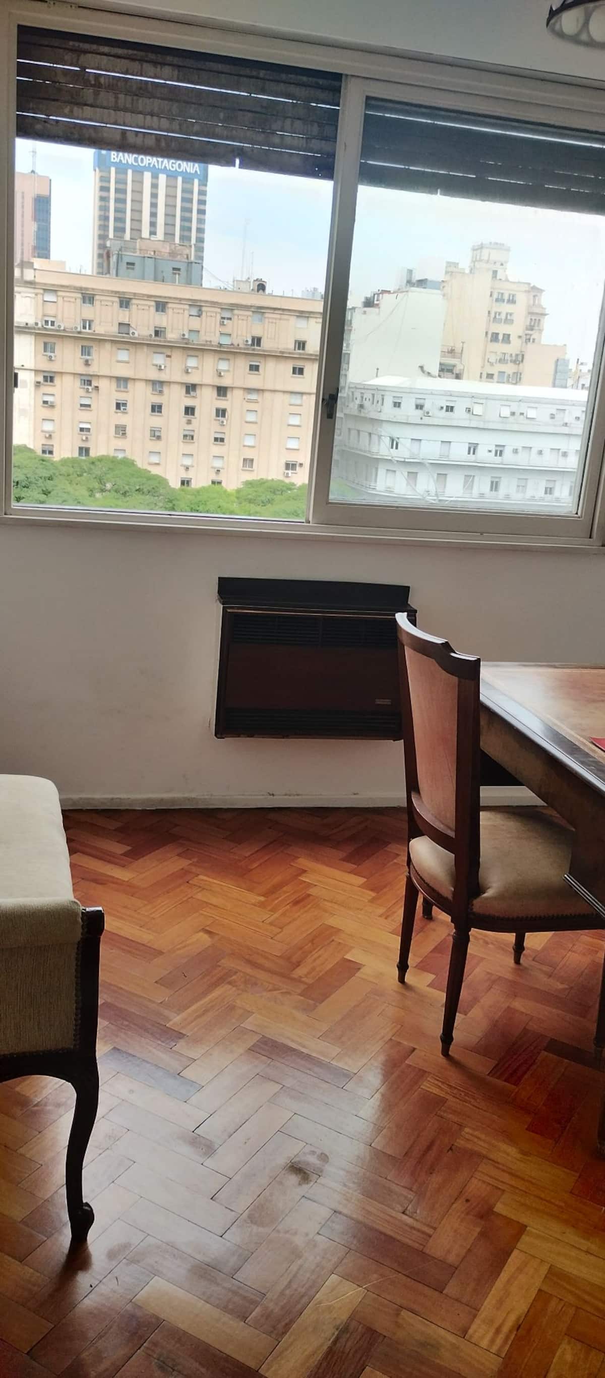 Квартира в Monserrat, 1 спальня и отдельная комната для работы или как столовая. Окна с видом, здание рассчитано на жильцов, выход к подъезду через 2 лифта. Кухня и ванная. Из техники: электрическая духовка, стиральная машина, кондиционер и отопление, тостер и соковыжималка, Smart TV, а также Android TV с Netflix, Starplus, Disney+, Paramount и 300 каналами. Сообщается об интернет-соединении 300 Mbps. В шаговой доступности: 9 de Julio, в 300 м от Obelisk, в радиусе 300 м линии метро A, B, C и D