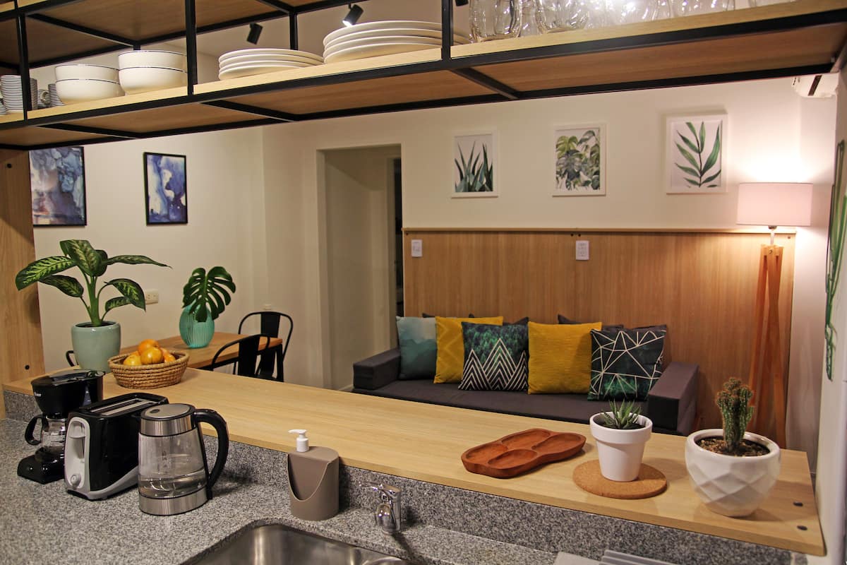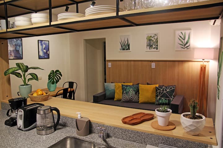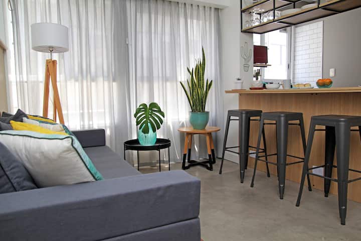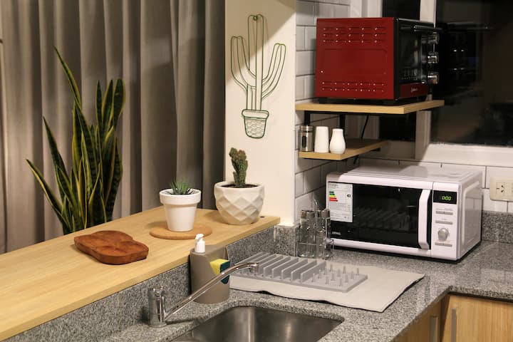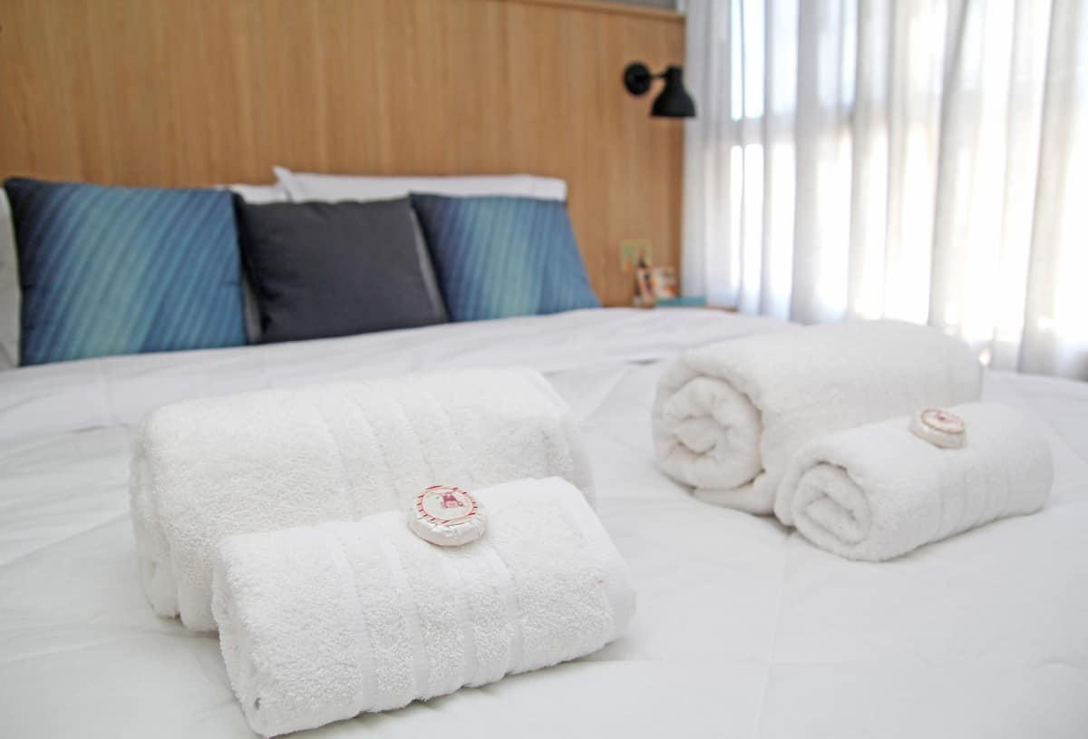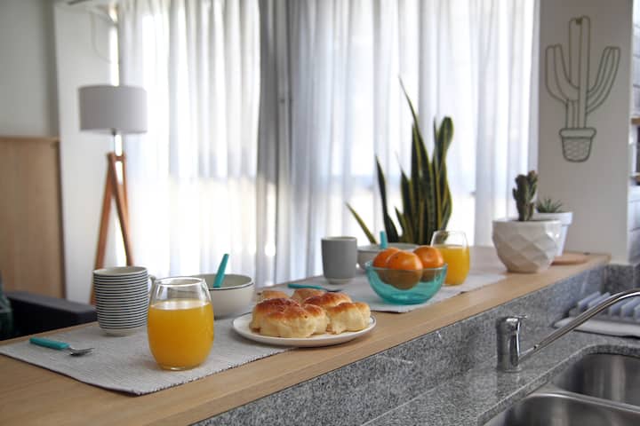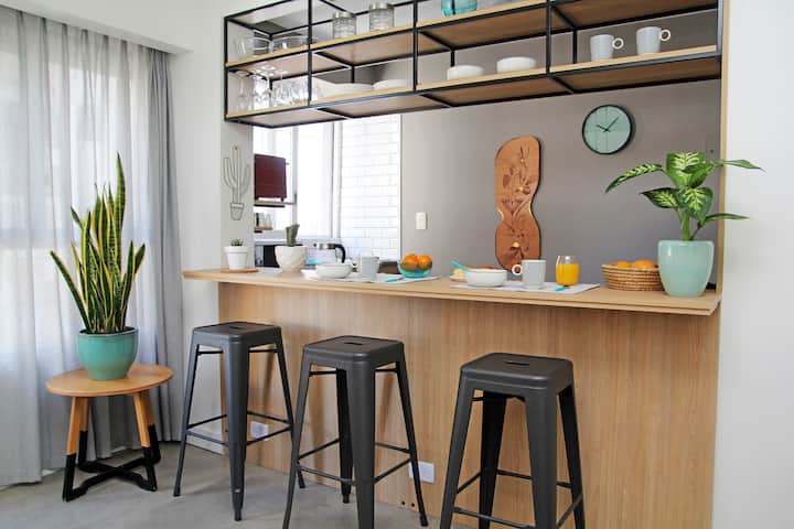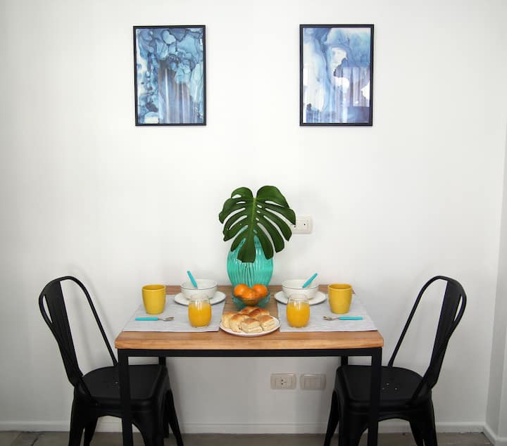Квартира в Monserrat с 1 спальней и гостиной-кухней, после ремонта. Расположена на 20-м этаже, окна на город, с видом с высоты. Две полностью обособленные зоны: гостиная-столовая, объединённая с кухней барной стойкой, с диваном-кроватью и обеденным столом или рабочей зоной; спальня с двуспальной кроватью queen size, шкафом и 32-дюймовым Smart TV. Кухня полностью оборудована новой техникой: холодильник, электрическая конфорка, микроволновая печь, электрическая духовка, кофеварка, тостер, электрич