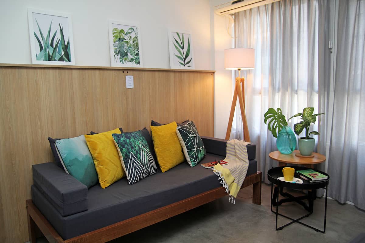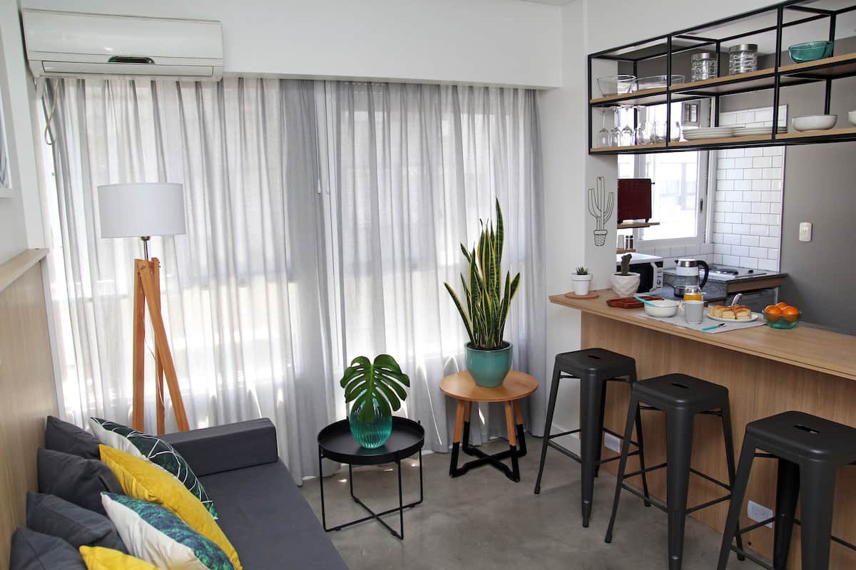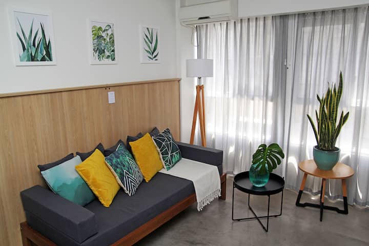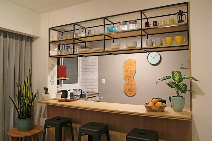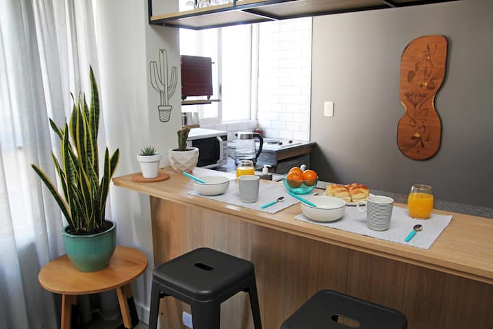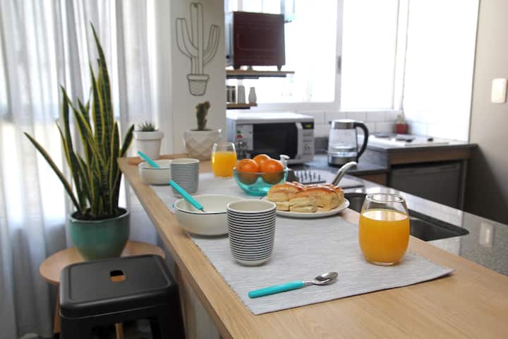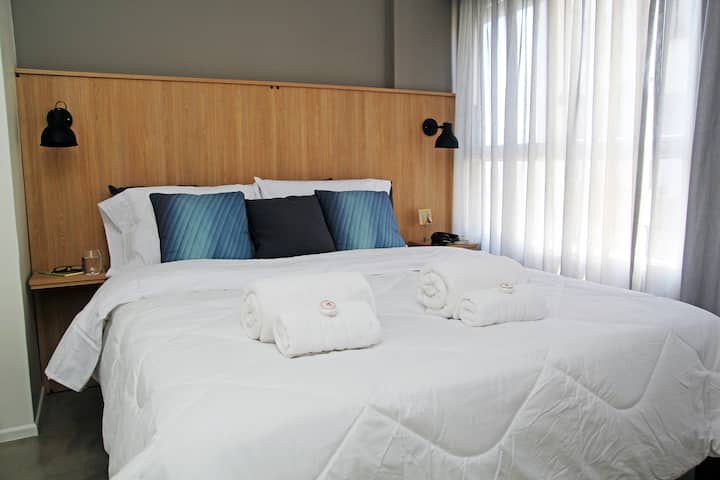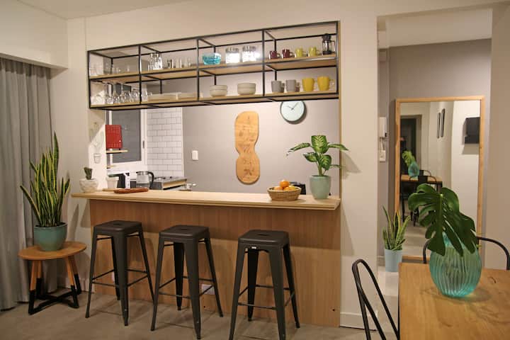 Квартира в Monserrat с 1 спальней и гостиной-кухней, после ремонта. Расположена на 20-м этаже, окна на город, с видом с высоты. Две полностью обособленные зоны: гостиная-столовая, объединённая с кухней барной стойкой, с диваном-кроватью и обеденным столом или рабочей зоной; спальня с двуспальной кроватью queen size, шкафом и 32-дюймовым Smart TV. Кухня полностью оборудована новой техникой: холодильник, электрическая конфорка, микроволновая печь, электрическая духовка, кофеварка, тостер, электрич