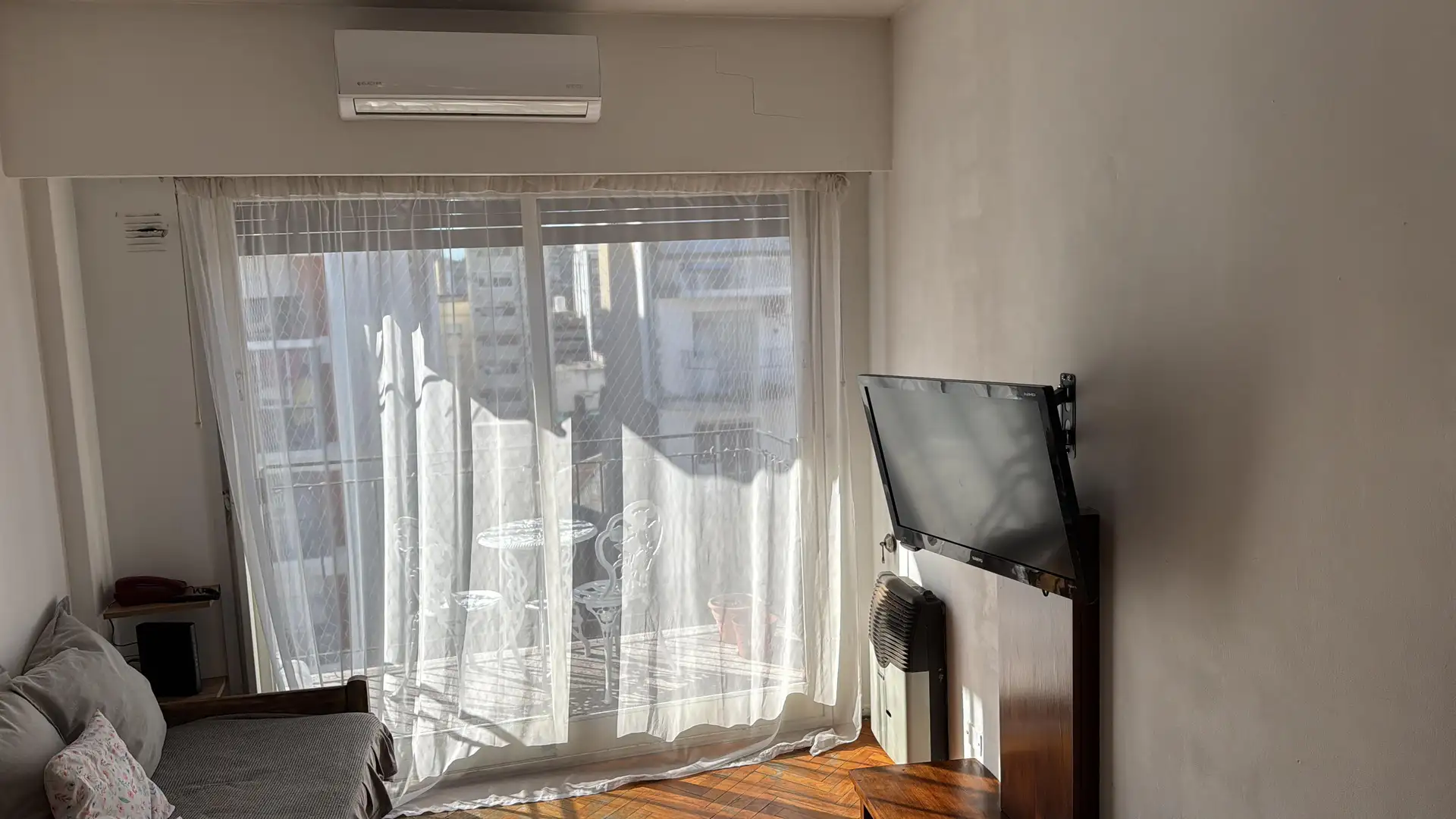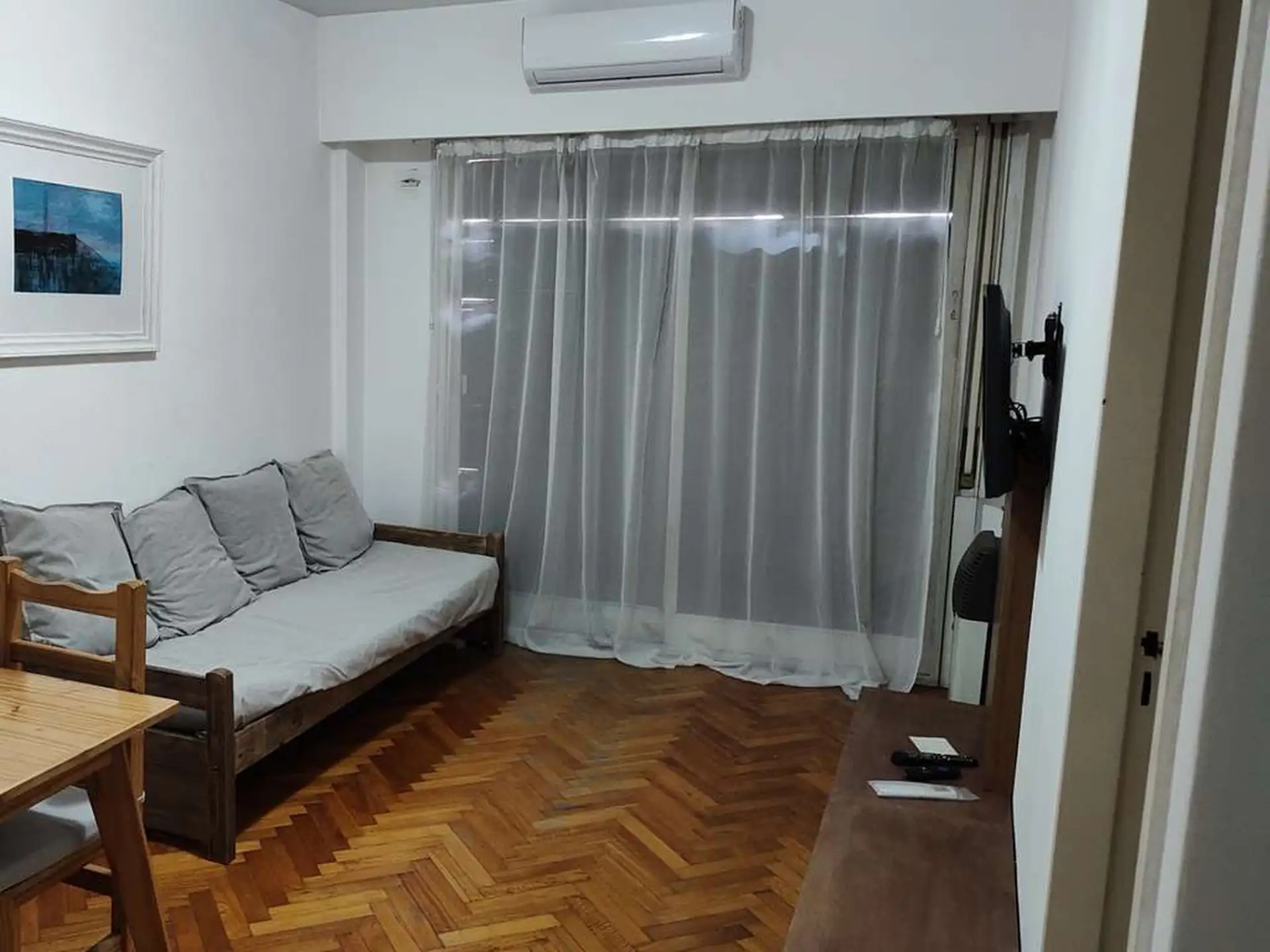 Квартира в Monserrat из двух комнат с балконом. Окна на улицу, полы из дерева. Гостиная-столовая с прямым выходом на балкон, спальня с вместительным шкафом. В квартире есть кондиционер, отопление, телевизор и интернет, библиотека. Полностью оборудованная отдельная кухня с холодильником с морозильной камерой, микроволновой печью, посудой и стиральной машиной; санузел с полной ванной. Кровать в спальне на два спальных места; есть диван-кровать на 1 место. Срок аренды временный: договор от 3 или 6