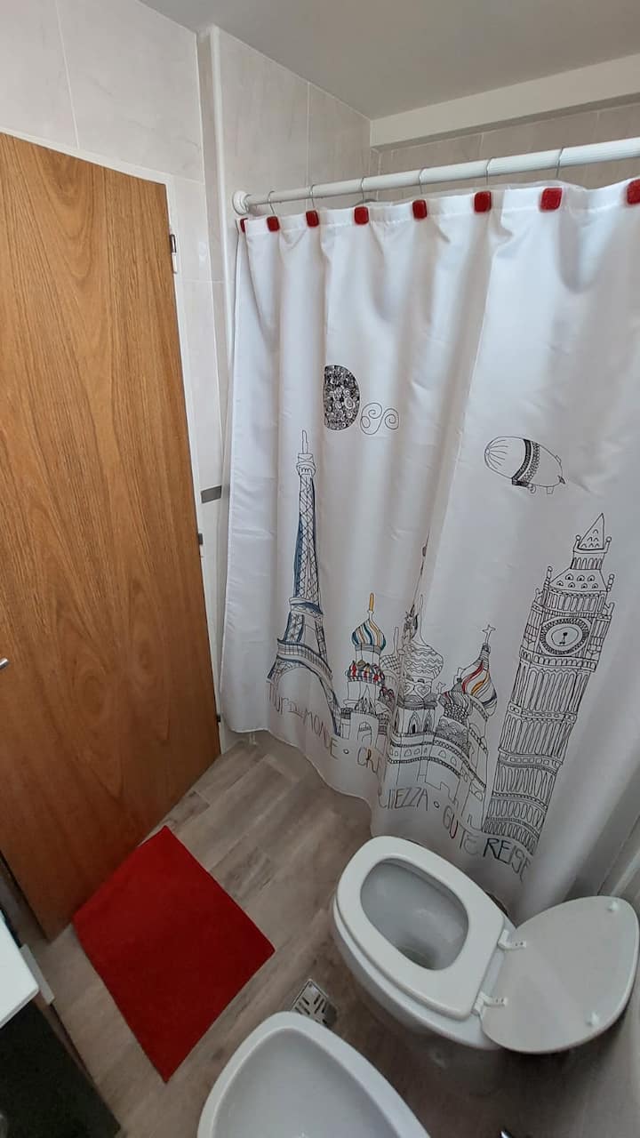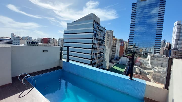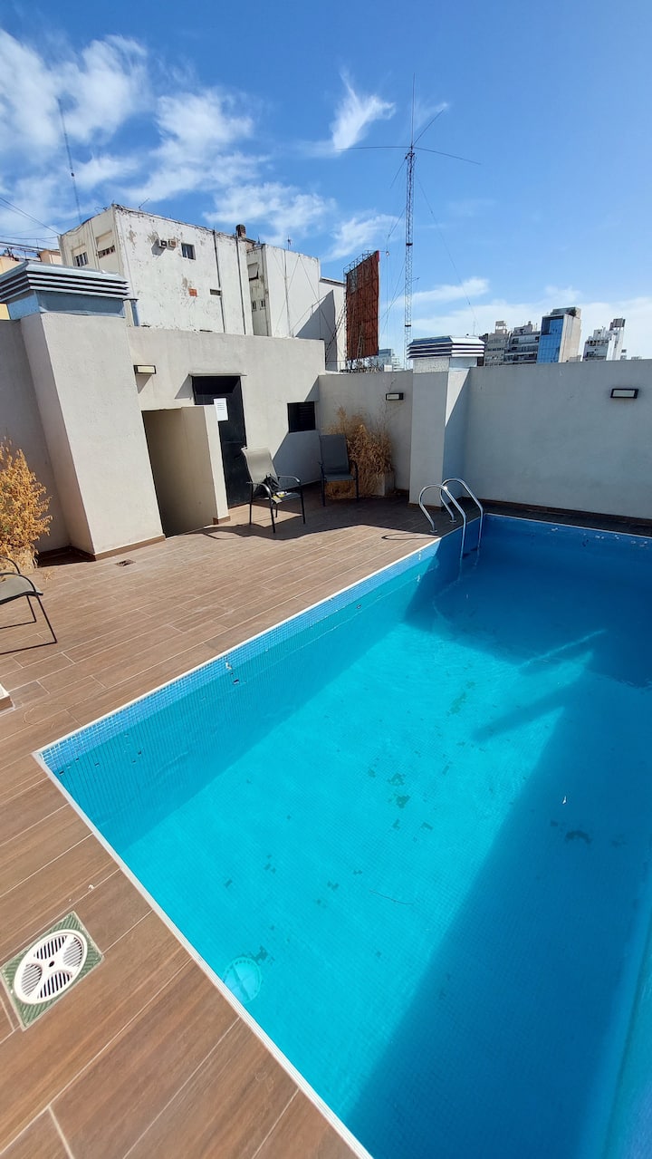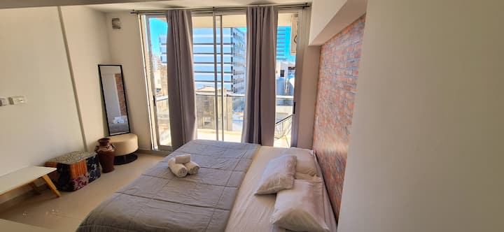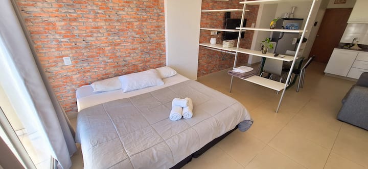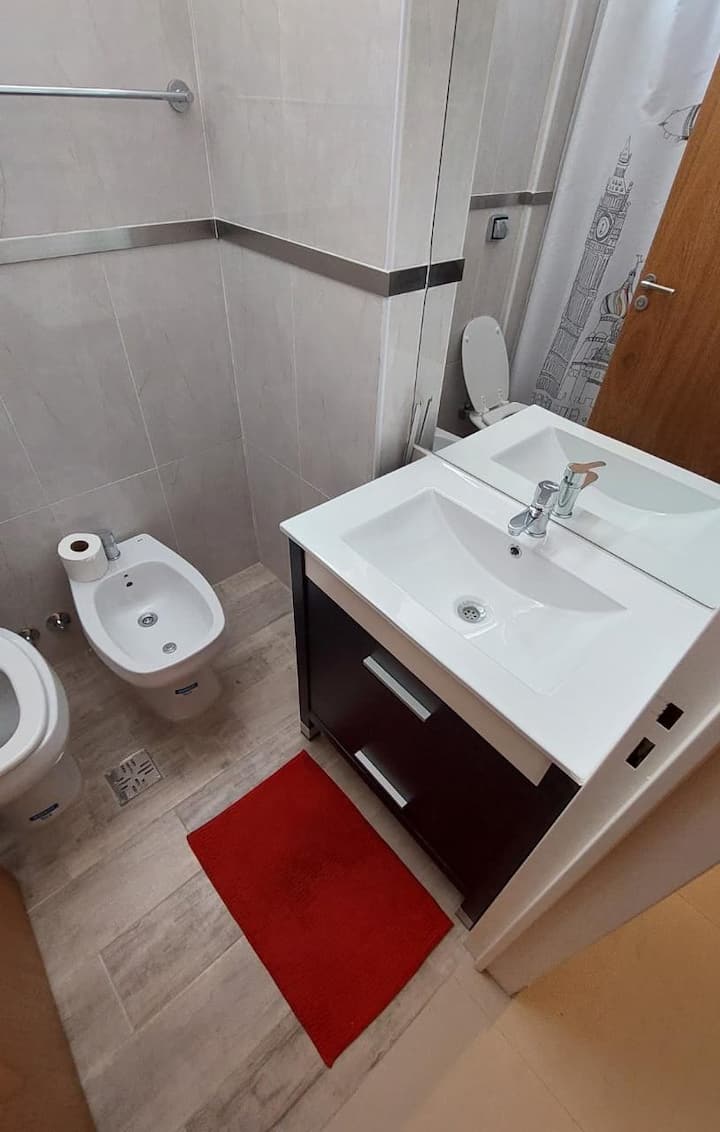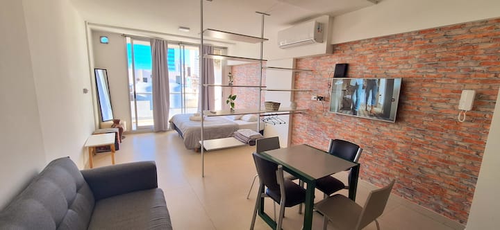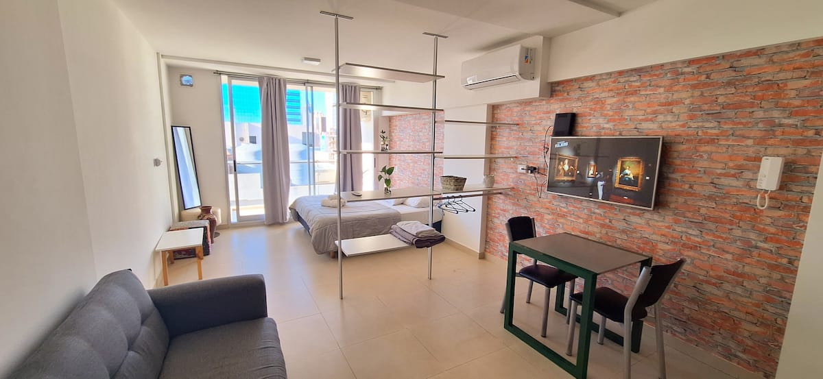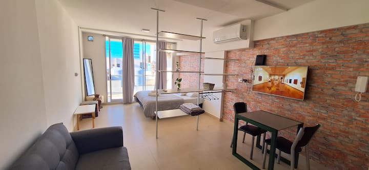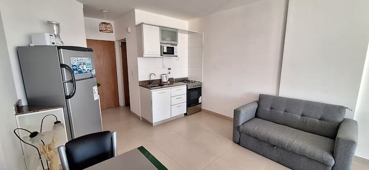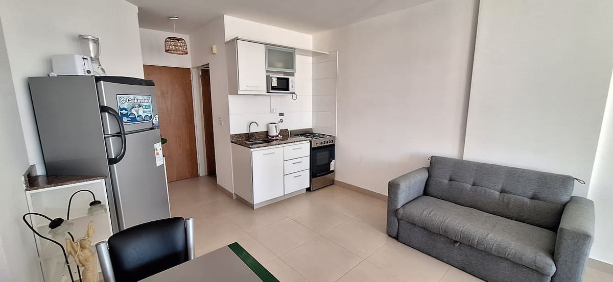 Квартира в Monserrat. В планировке: терраса с зоной гриля, многофункциональная комната, гостиная и обеденная зона, 1 полноценная ванная комната. В здании указаны бассейн и тренажёрный зал. Кухня встроенная: микроволновая печь, тостер, электрическая турка, процессор; также указаны кухонные принадлежности. В квартире есть стиральная машина; спальные места включают king-size somier и диван-кровать с размещением до 3 человек.