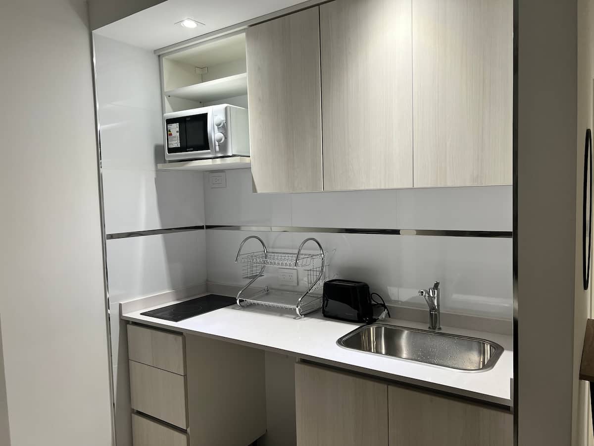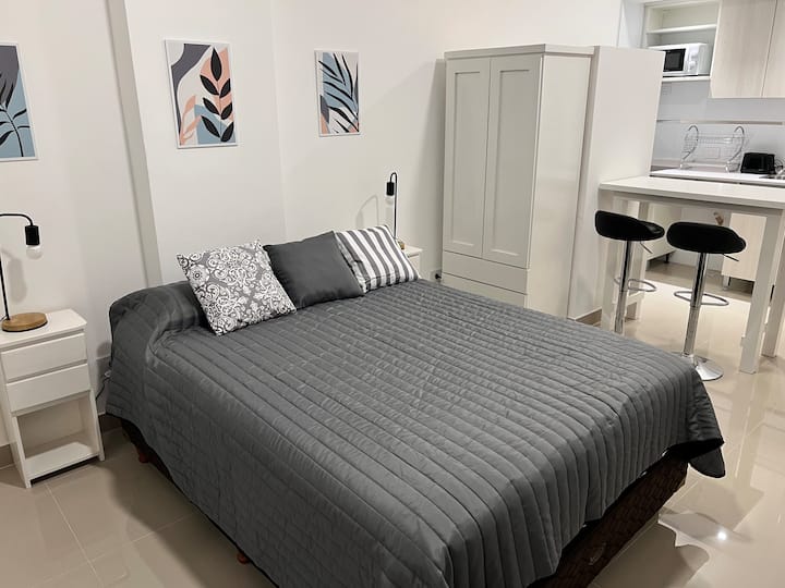 Квартира расположена в Monserrat, в историческом центре Buenos Aires. В комплексе «Paseo de la Cisterna» есть музей, круглосуточная охрана и инфраструктура для жильцов, включая бассейн и солярий, а также co-working и зоны отдыха на открытом воздухе. В пешей доступности находятся Plaza de Mayo, Cabildo, Casa Rosada и Manzana de las Luces.