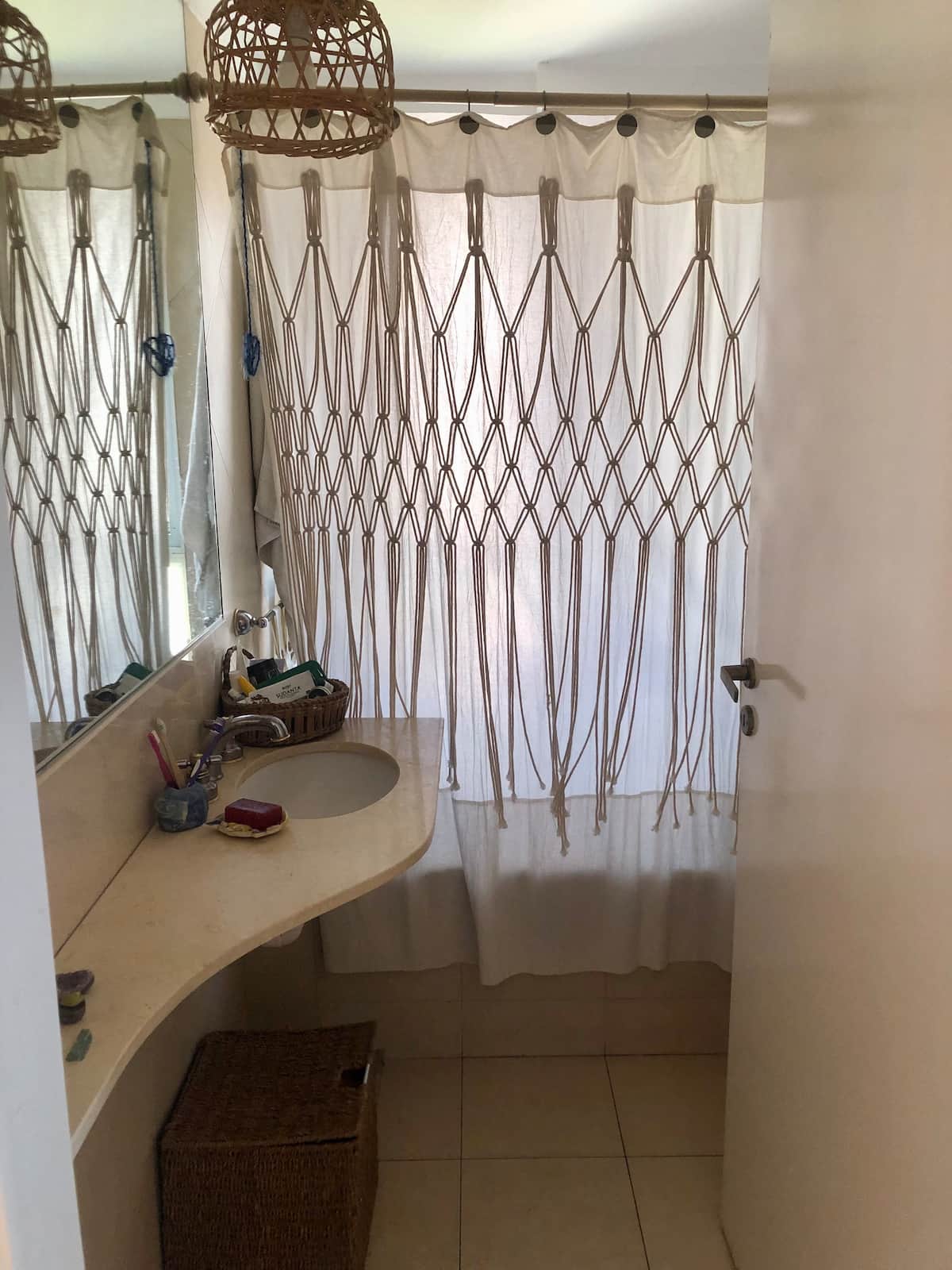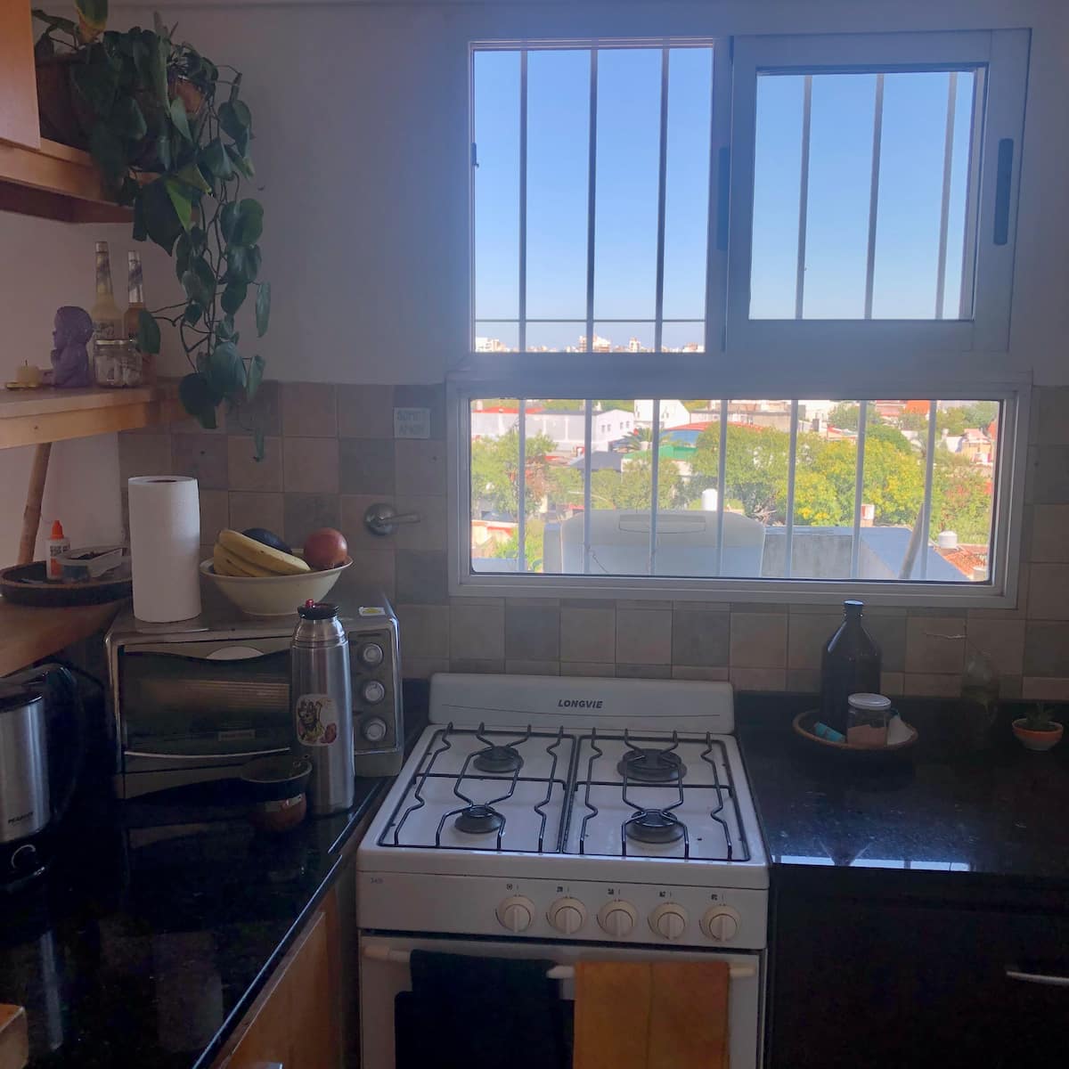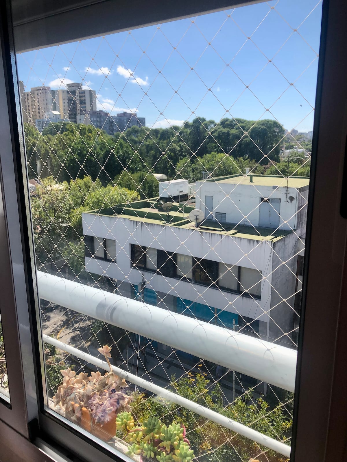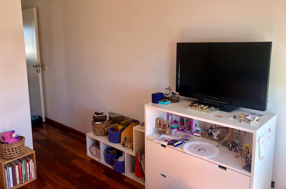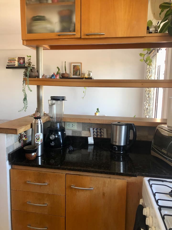 Квартира с 1 спальней в Monte Castro, 6-й этаж, в здании есть лифт. В гостиной-столовой установлены односпальная кровать, двухместный диван и стол на 4 стула. Окна выходят на открытый балкон с растениями; есть стиральная машина. На кухне в одном пространстве — холодильник и морозильная камера. В спальне двуспальная кровать; есть детские игрушки. В ванной установлен душ с ванной. Есть отопление и кондиционер (холод/тепло), плита, телевизор, доступ к Wi‑Fi; указаны газ, вода и электричество. В ком