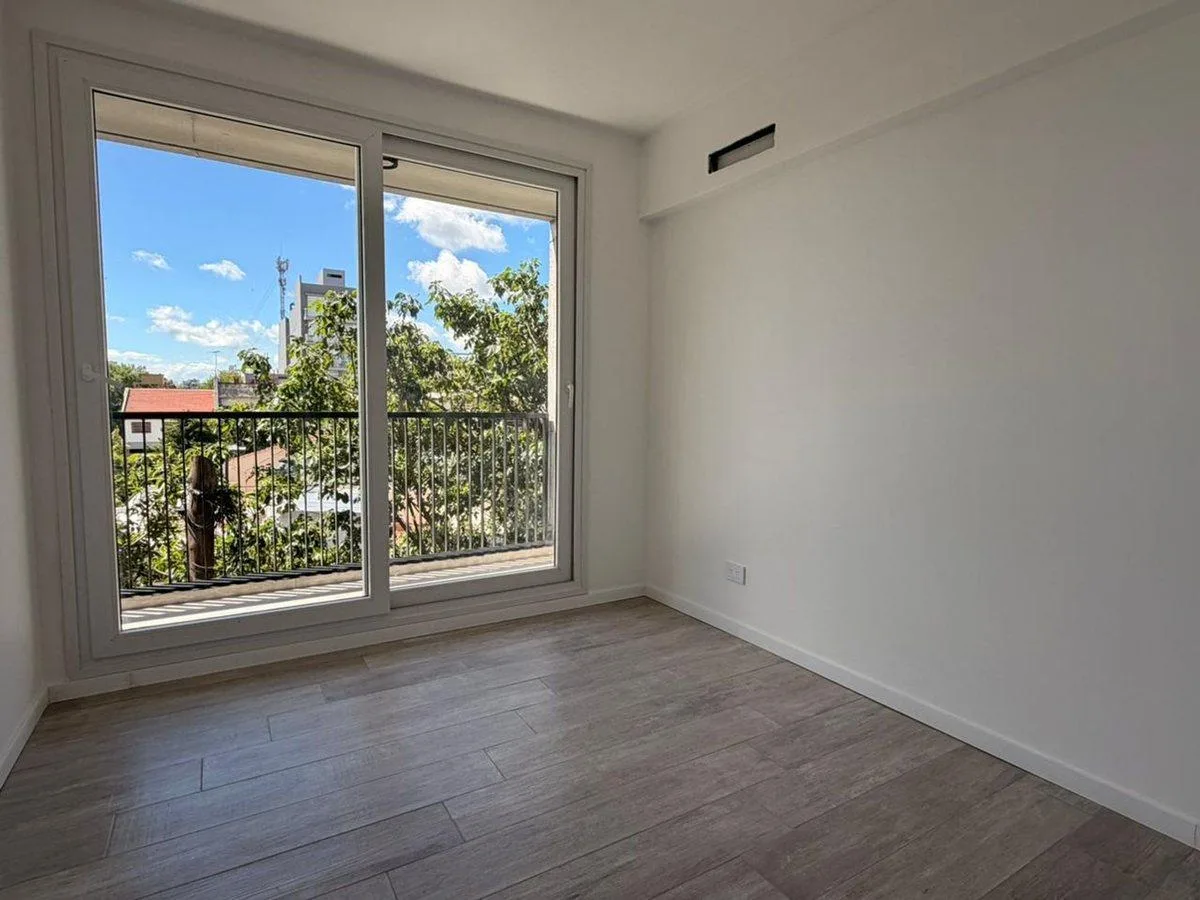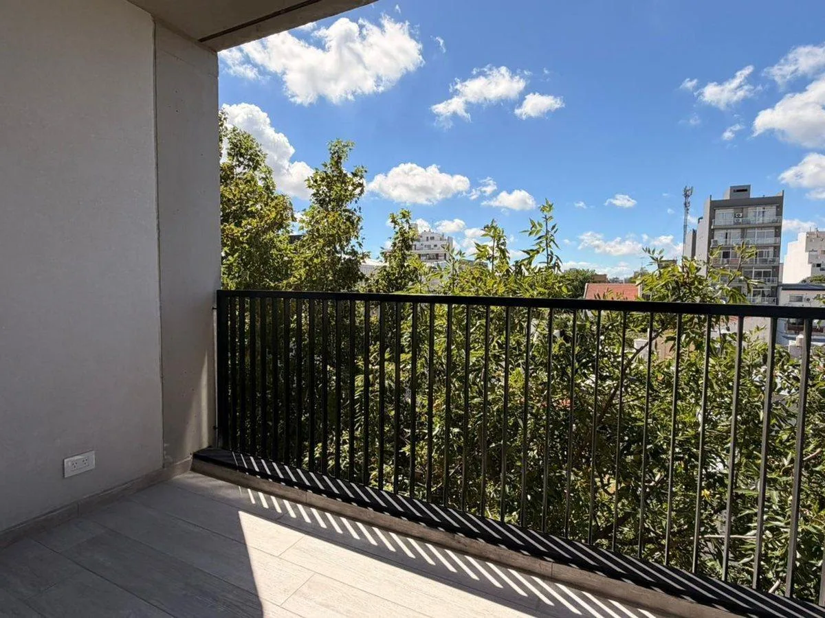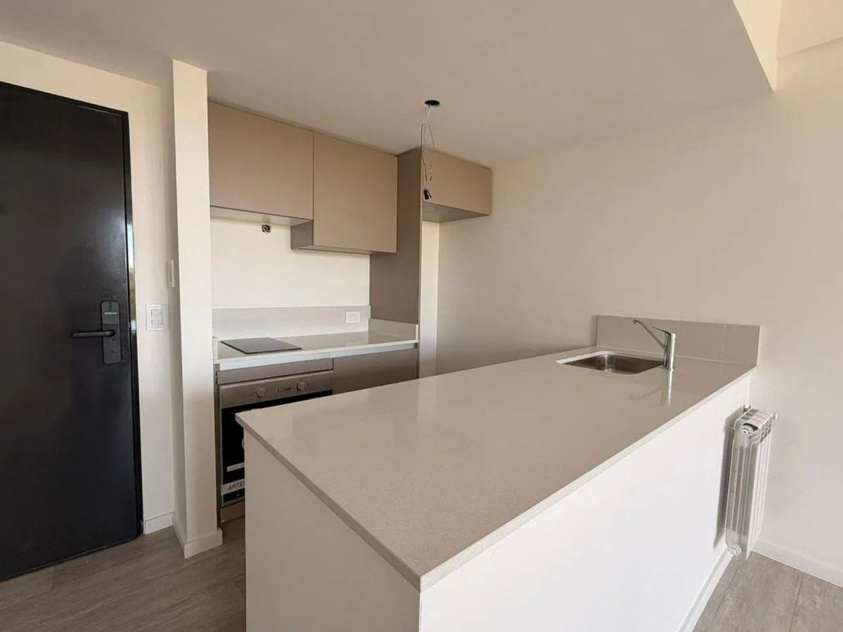 Квартира в Monte Castro, 2 комнаты, с балконом в спальне. Планировка: гостиная-столовая с интегрированной кухней, отдельная прачечная. На кухне установлены духовой шкаф и встраиваемая варочная панель, столешница из кварца. Отопление — радиаторы от центрального котла. В здании есть SUM, бассейн и тренажёрный зал. Указано 2 варианта: с окнами на улицу (frente) и во двор (contrafrente). Коммунальные платежи здания указаны не были.