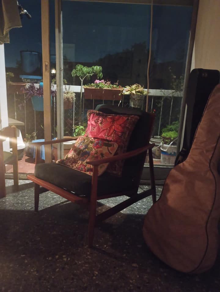 Квартира в Monte Castro с 1 спальней и общей зоной. В квартире есть балкон с растениями. Имеются полностью оборудованная кухня, ванная комната с душем и стиральная машина; сушка белья предусмотрена на расположенной выше террасе.