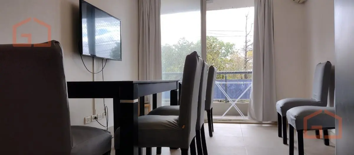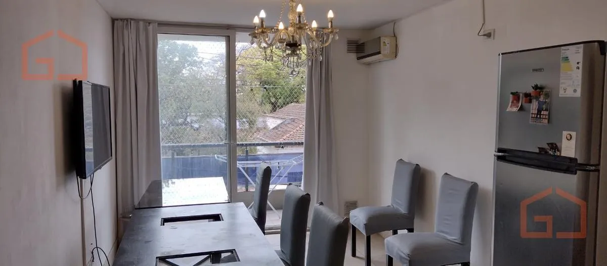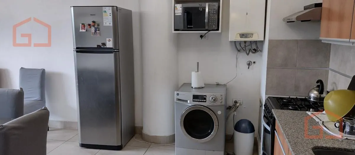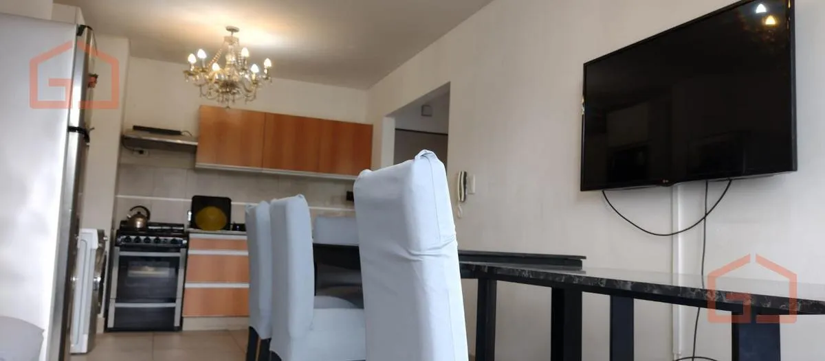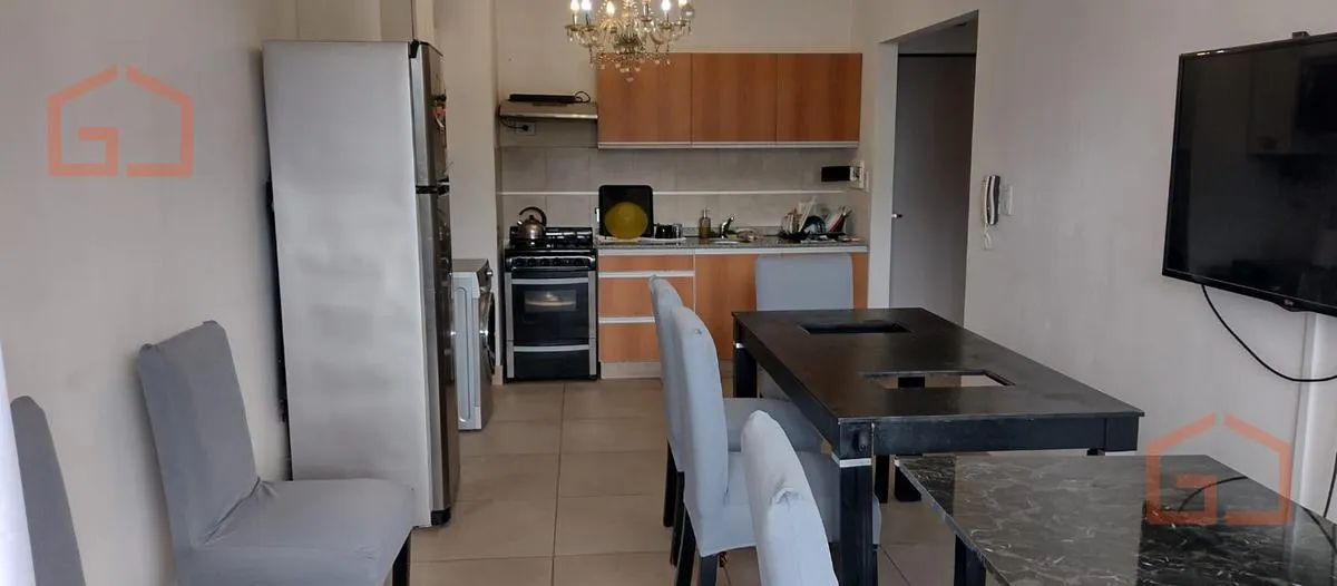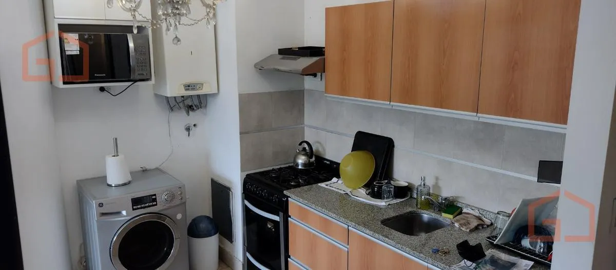 Квартира в Morón Norte, 2 комнаты, расположена на улице Casullo. Первый этаж по направлению к улице, с мебелью. Планировка включает кухню-гостиную, полноценную ванную с ванной и спальню с встроенным шкафом и готовыми внутренними элементами. Балкон-терраса между спальней и гостиной, 2 кондиционера. В квартире есть холодильник, стиральная машина, микроволновая печь, обеденный стол и 6 стульев, 2 телевизора, а также кухонная мебель с полками и нижними шкафами.