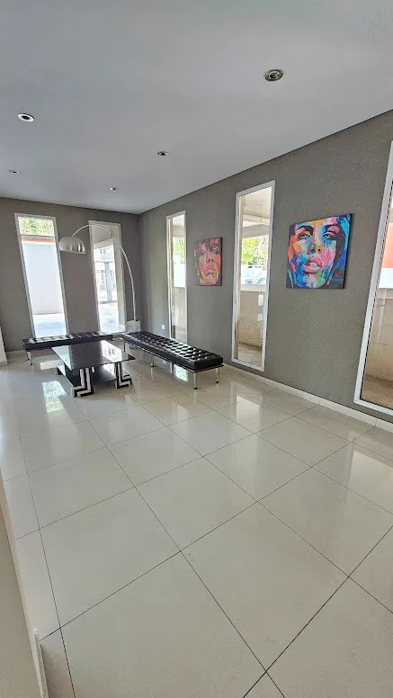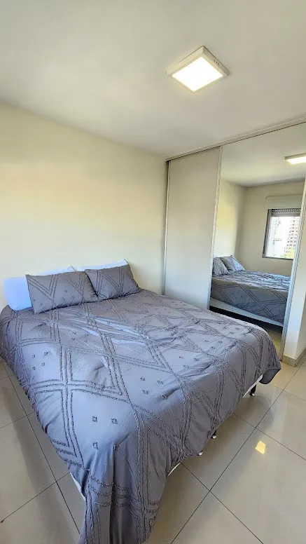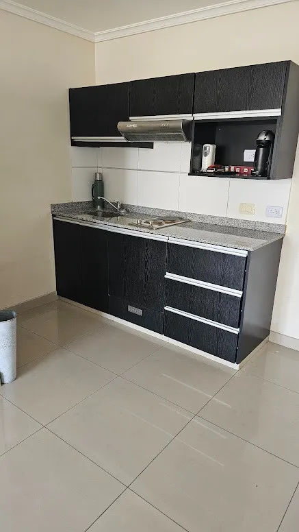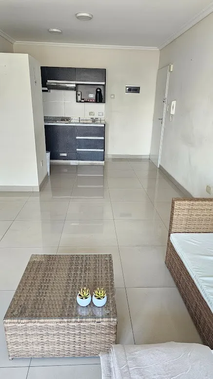 Квартира в Torres Mendoza с двумя комнатами и (закреплённым) парковочным местом, 1 спальня с гардеробом с зеркальными фасадами во всю высоту. Есть гостиная-столовая и кухня-столовая с гранитной столешницей, с мебелью навесных и напольных модулей, полная ванная комната. Пол — плитка под керамогранит, алюминиевые окна HIDRO 6,40. Горячая вода централизованная с преднагревом eco-solar, предусмотрена разводка под кондиционер типа split. В здании: большой сад, бассейн, laundry, тренажёрный зал, общая