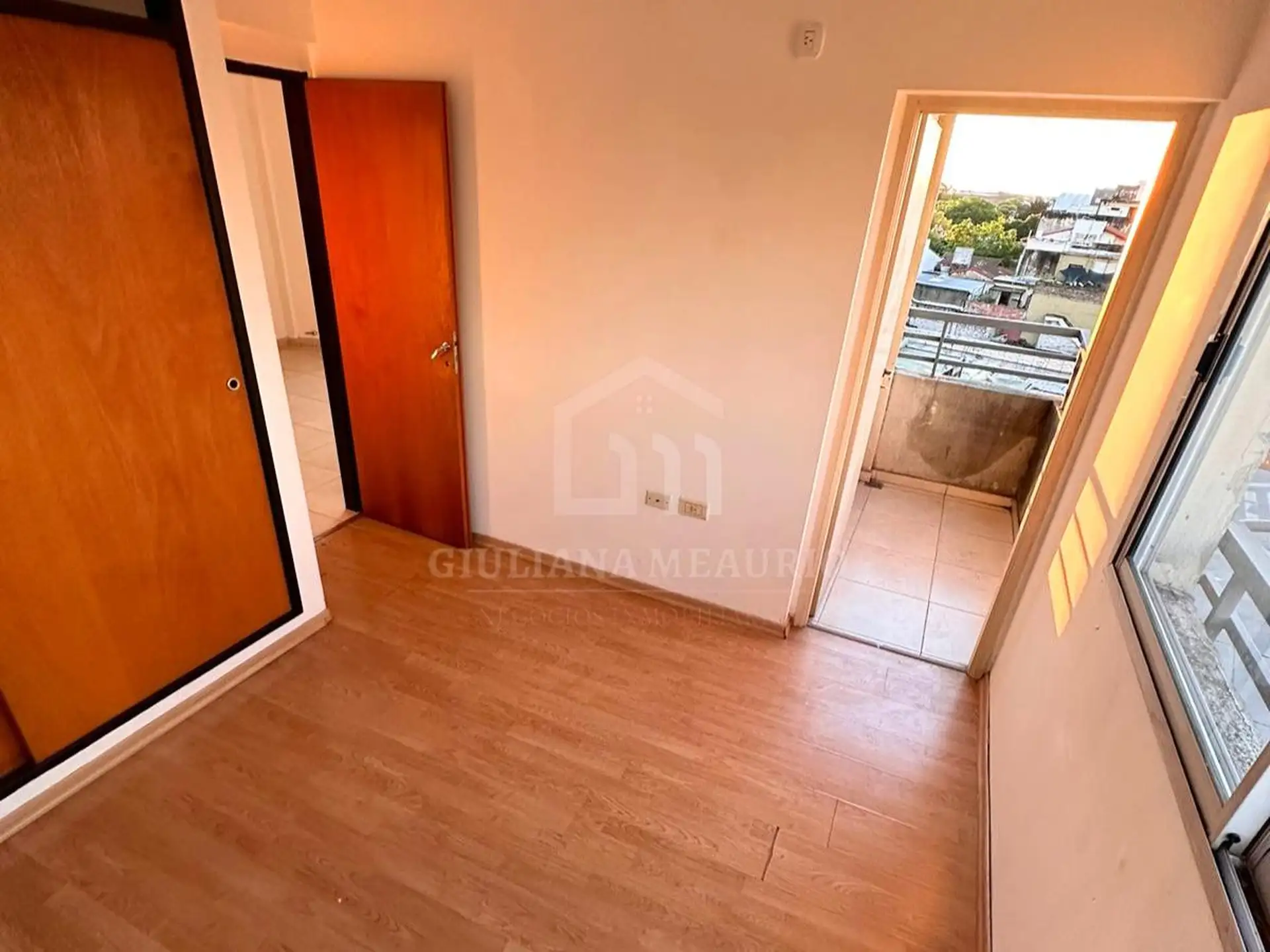 Квартира в Haedo, Morón, 2 комнаты, с окнами на улицу и балконом. Спальня с окном и встроенным шкафом, в комнате установлена стенная отопительная горелка с отводом продуктов сгорания (tiro balanceado). В ванной есть гидромассаж. Кухня-гостиная с духовкой, нижними и верхними модулями, предусмотрены места под холодильник и стиральную машину, установлены кондиционер (охлаждение/обогрев) и второй балкон; окна выходят на вид. В здании есть лифт и общая терраса. Район Showcenter, на Av. Presidente Per