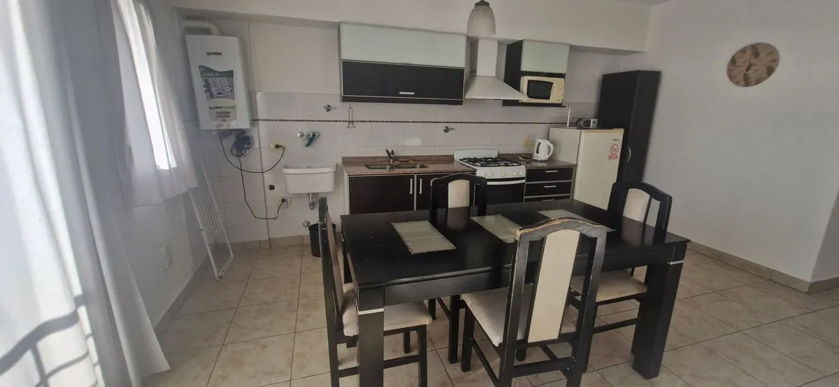 Квартира-студия в Munro (2 ambientes) площадью и планировкой: 1 спальня, 1 ванная, кухня, гостиная-столовая и балкон. Вторая этаж с лифтом. С мебелью и с кондиционером.