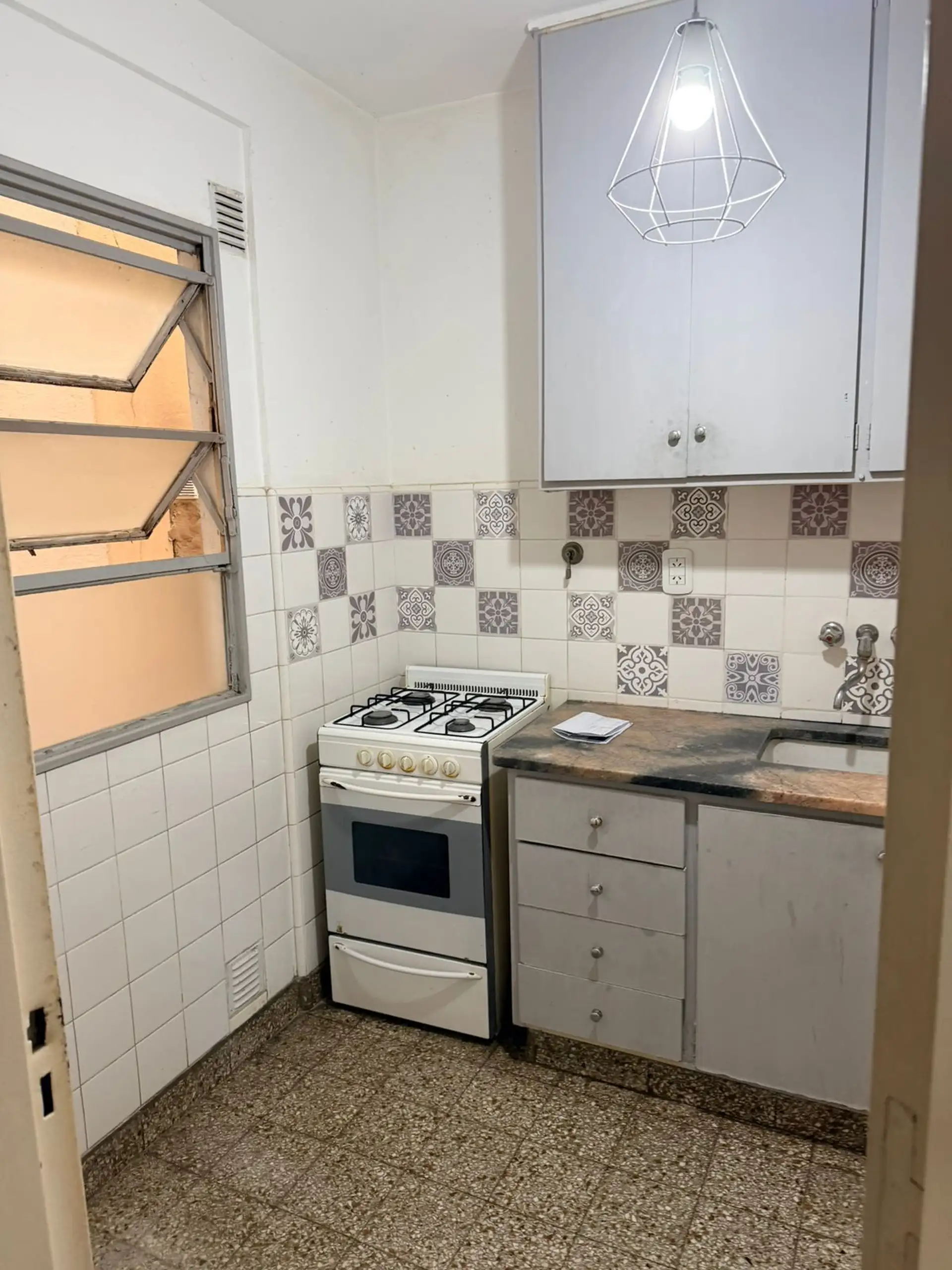 Квартира с 2 комнатами в Belgrano: окна на боковую сторону. Говорится о хорошей освещённости и расположении в районе, в 1 квартале от станции Congreso de Tucuman линии D и остановок нескольких автобусных маршрутов. Квартира в хорошем состоянии, аренда без домашних животных. Ставка аренды предполагает увеличение раз в 4 месяца по IPC. Требуются: аванс за 1 месяц $650.000 и депозит $650.000; справки по гарантии Dominio e Inhibición по $45.000 за каждую. Документы: подтверждённые официальные доходы