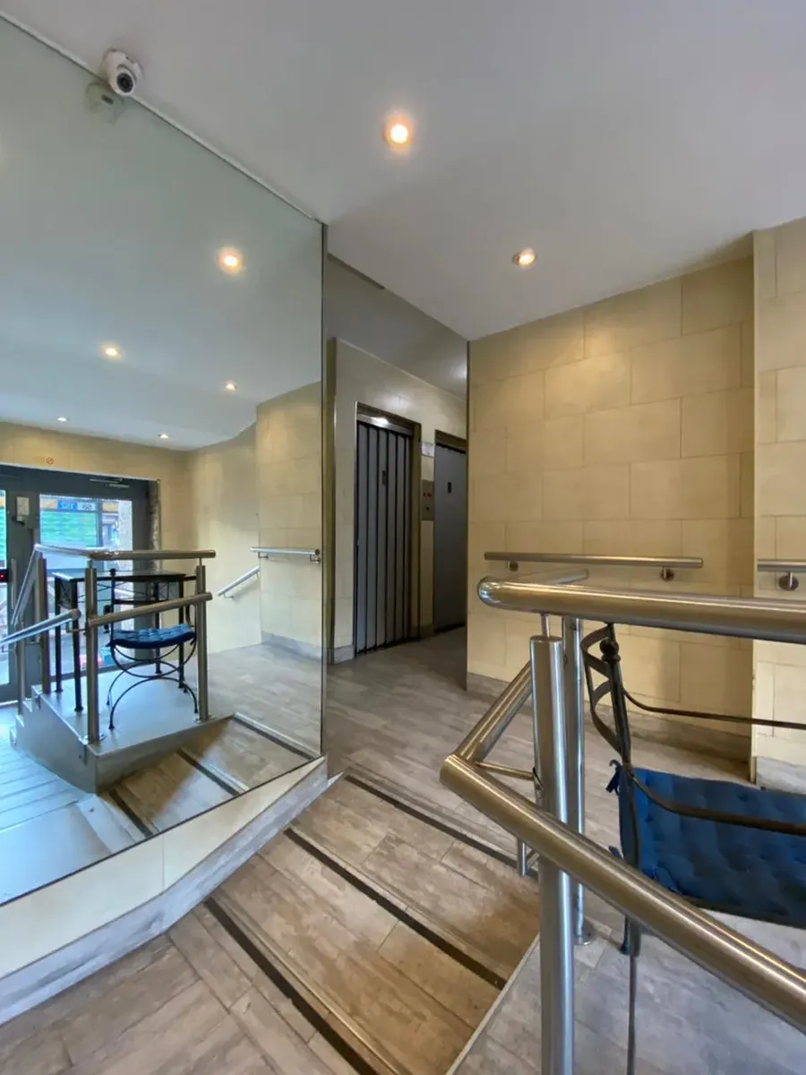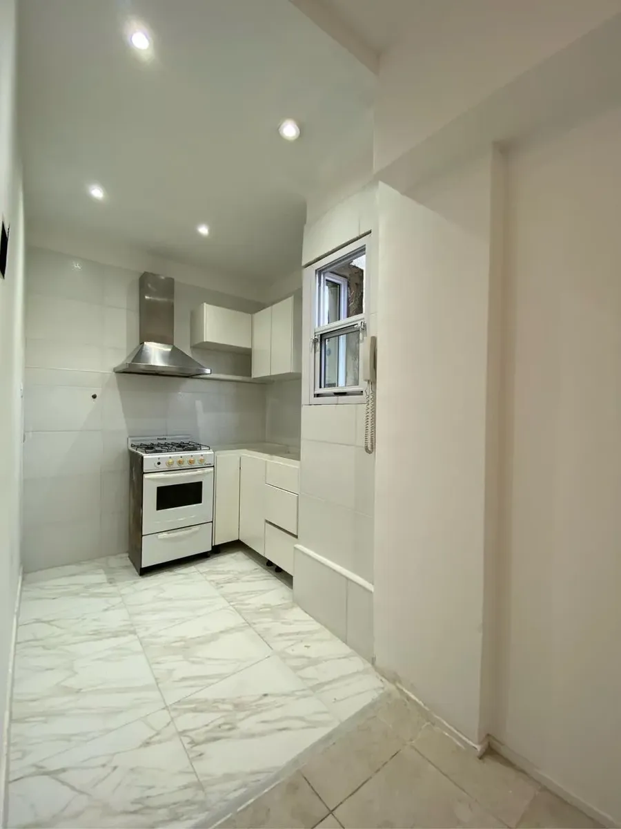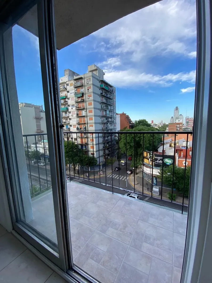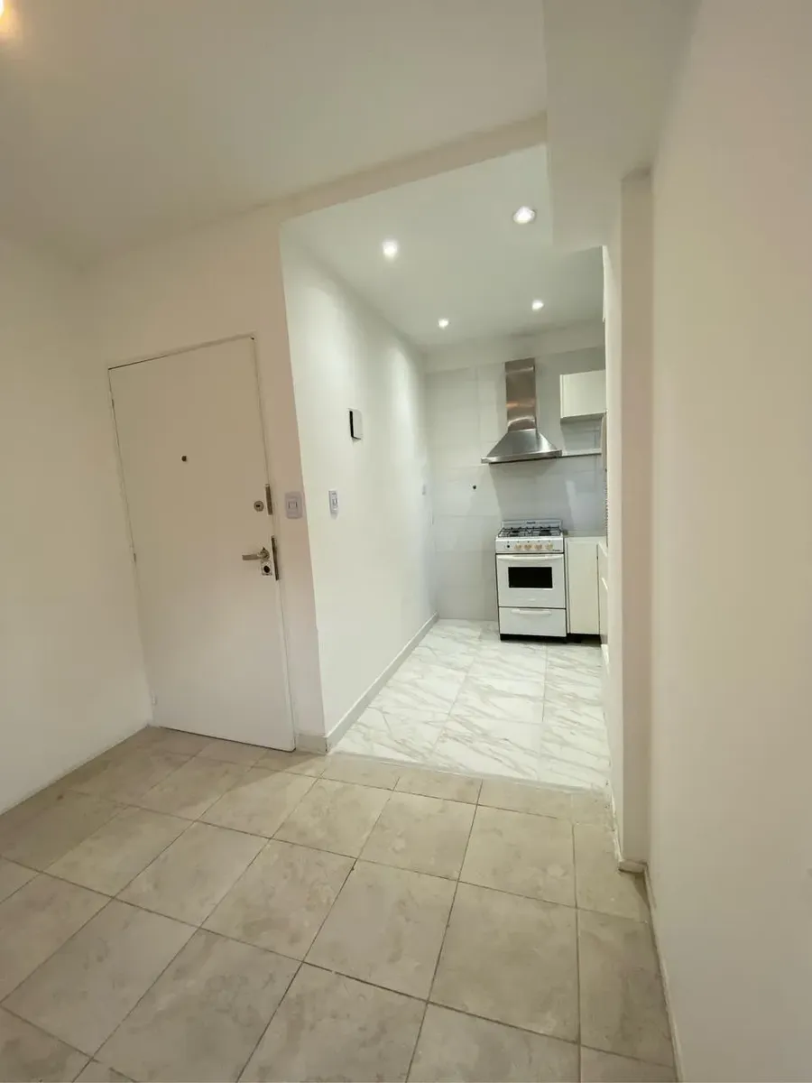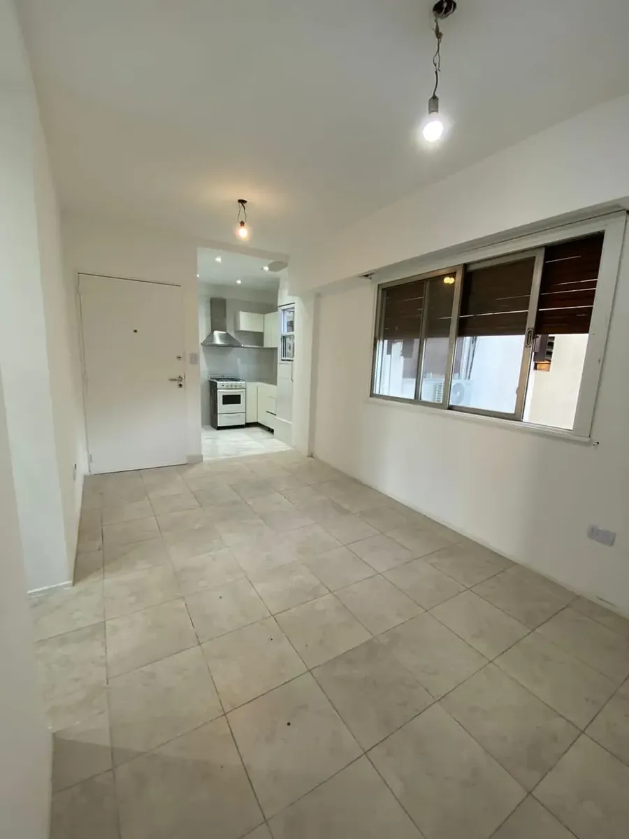 Квартира 2 ambientes на 6-м этаже, окна на улицу Av. Cabildo с боковым видом. Площадь в объявлении не указана. Квартира после покраски; кухня объединена с гостиной-столовой. Полная ванная, спальня с встроенным шкафом и выходом на балкон на Av. Cabildo.
