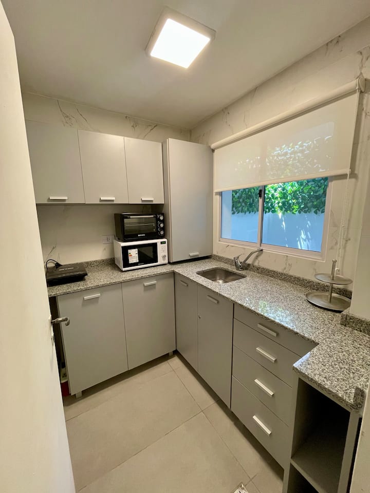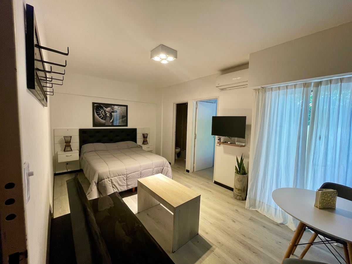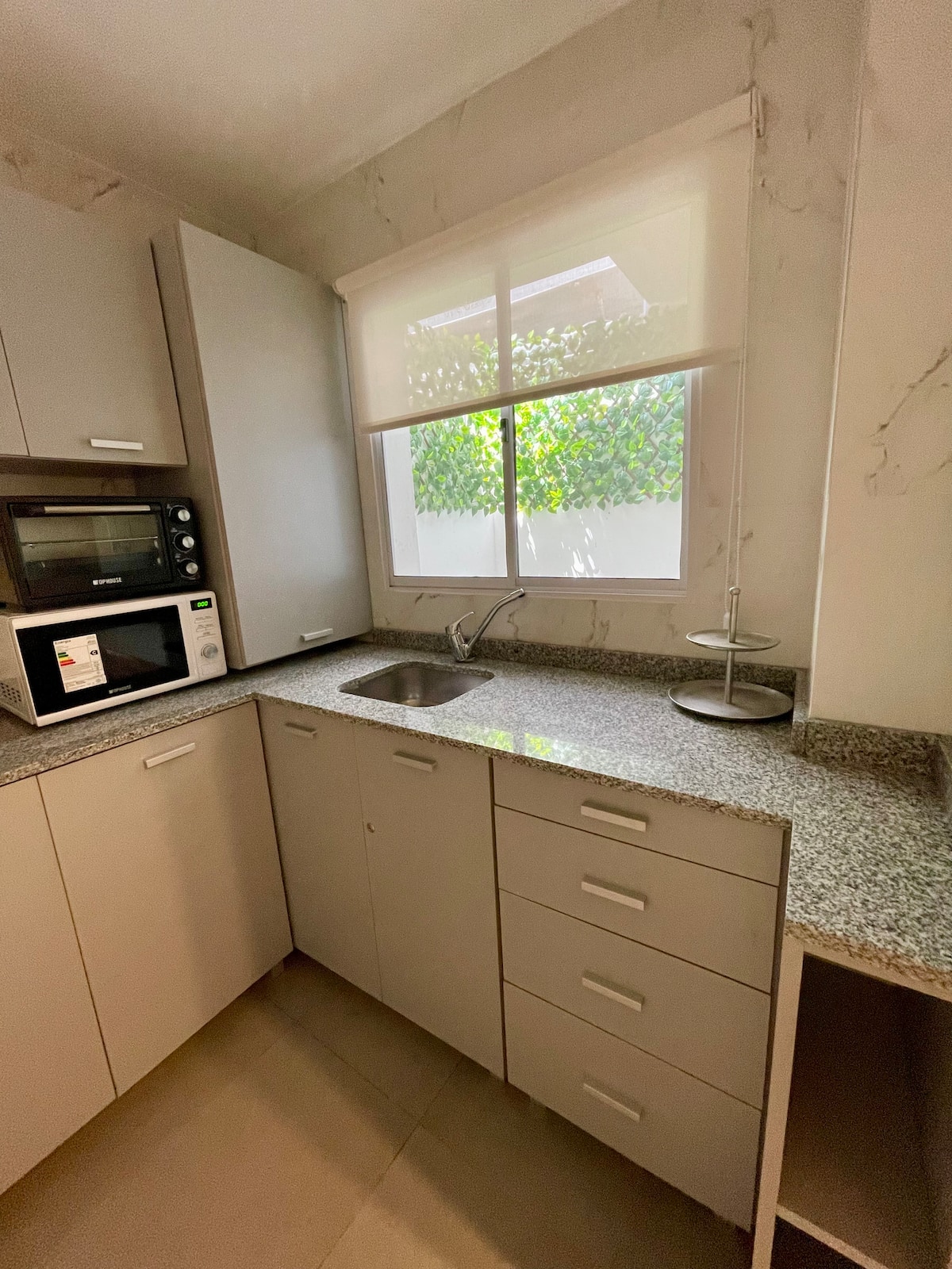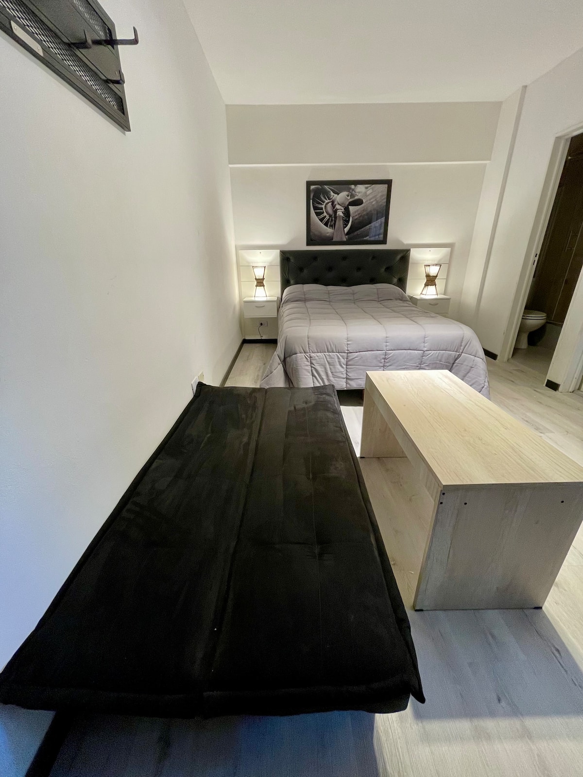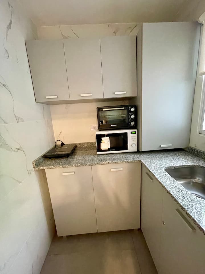 Квартира в Núñez в центральном районе. Кухня новая, оборудована. Окна выходят во внутренний двор квартала. В квартире есть ванная с полотенцами и средствами гигиены, спальня с прикроватными тумбами и розетками, S-Mart TV, места для хранения и сейф. Подготовлена для краткосрочной аренды.