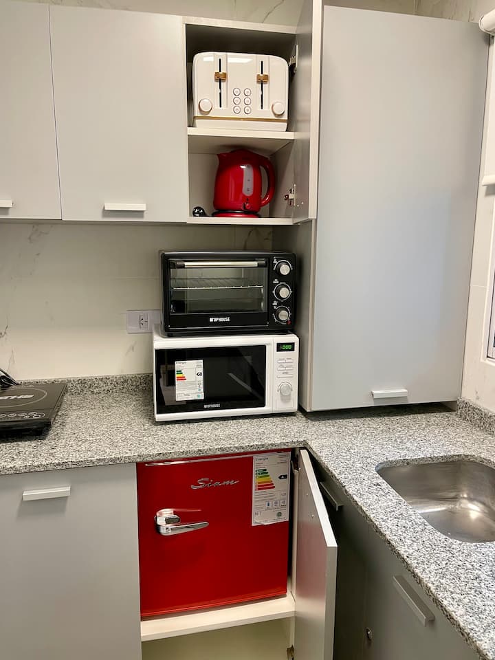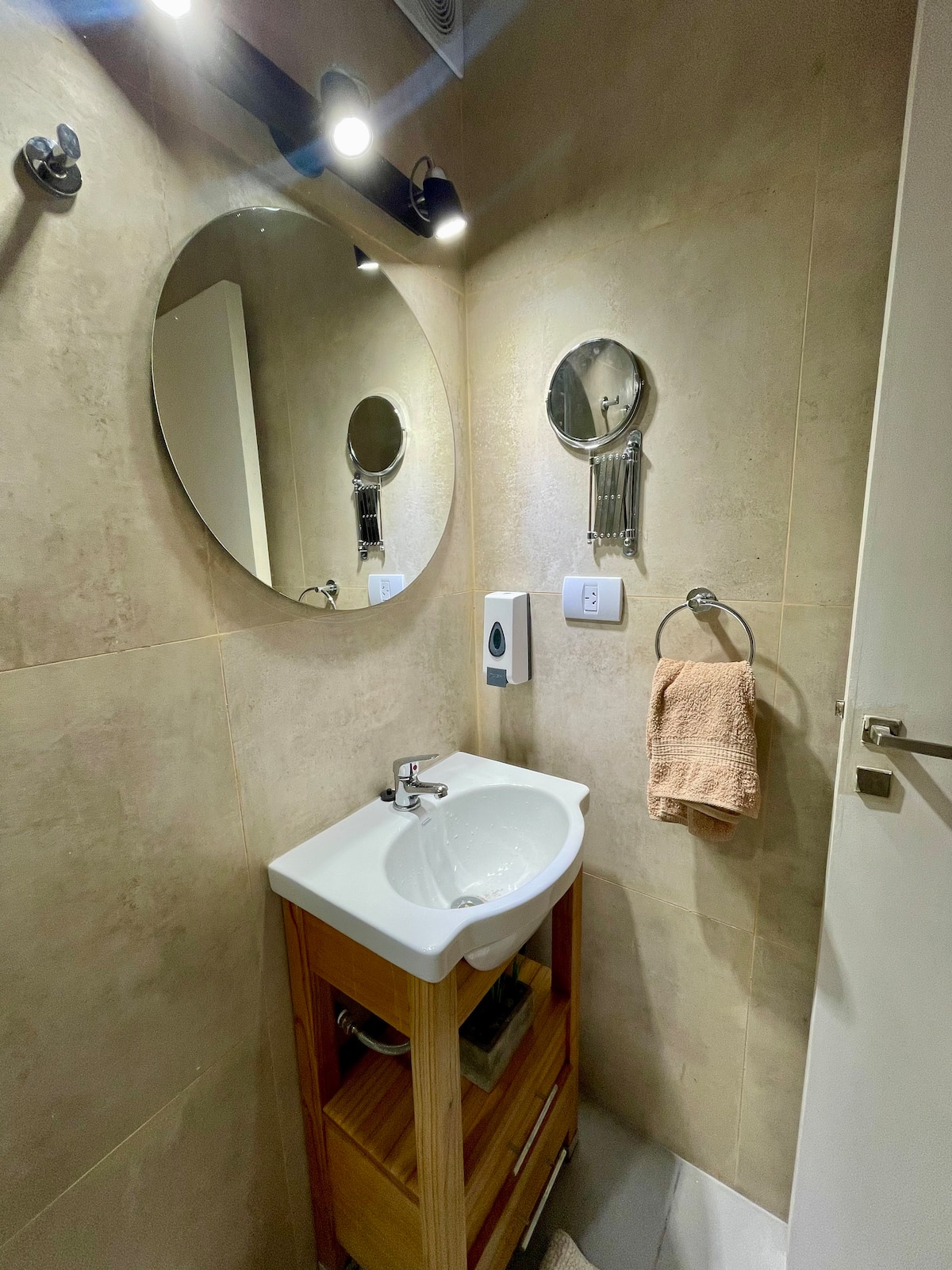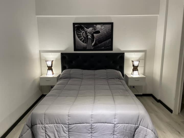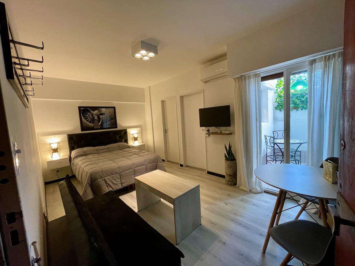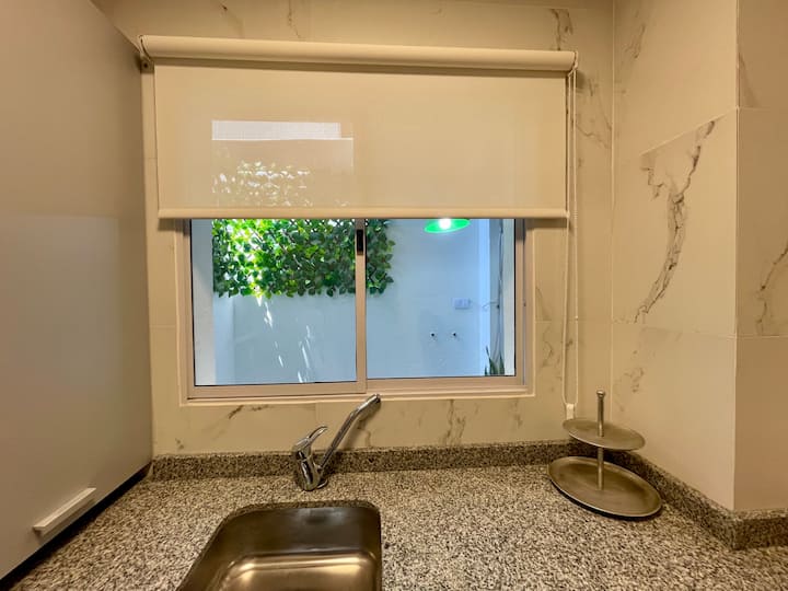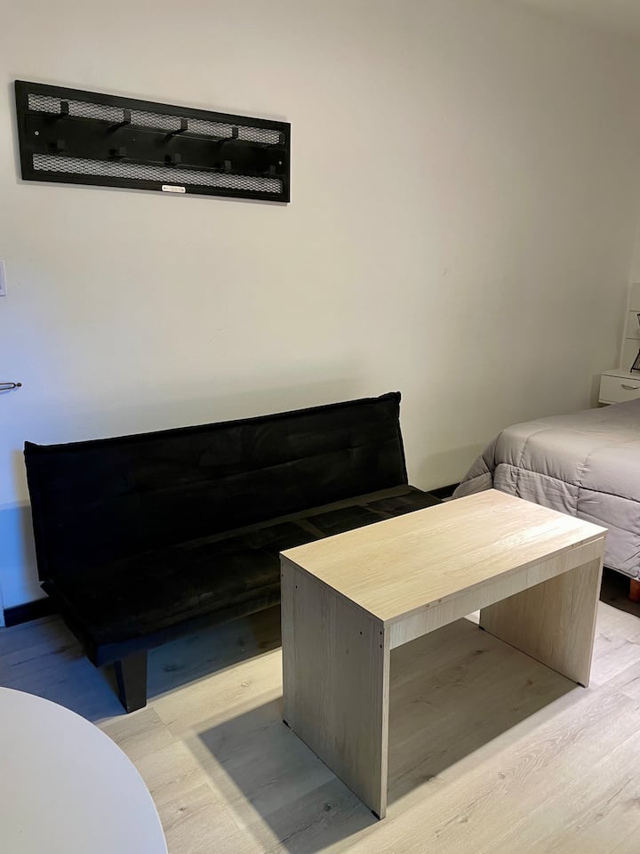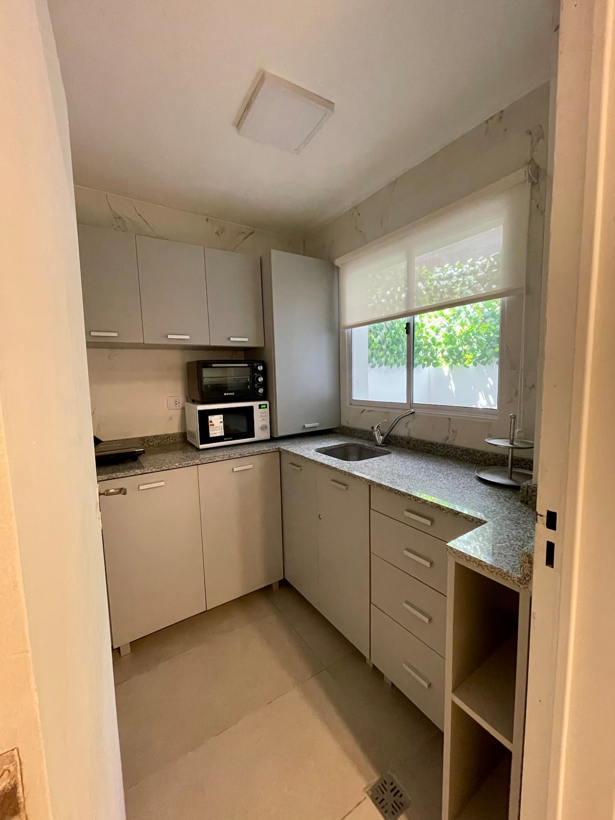 Квартира в Núñez в центральном районе. Кухня новая, оборудована. Окна выходят во внутренний двор квартала. В квартире есть ванная с полотенцами и средствами гигиены, спальня с прикроватными тумбами и розетками, S-Mart TV, места для хранения и сейф. Подготовлена для краткосрочной аренды.