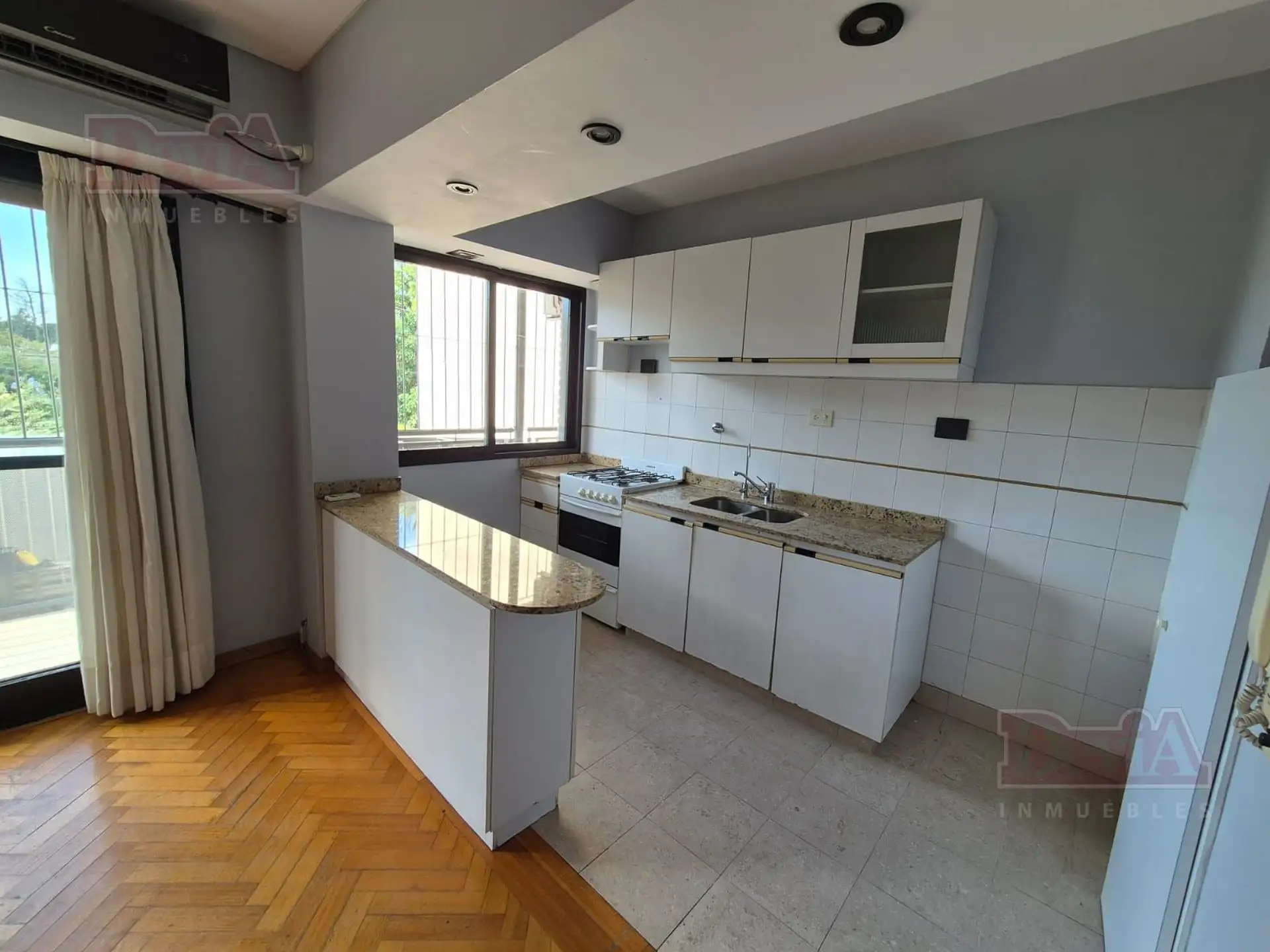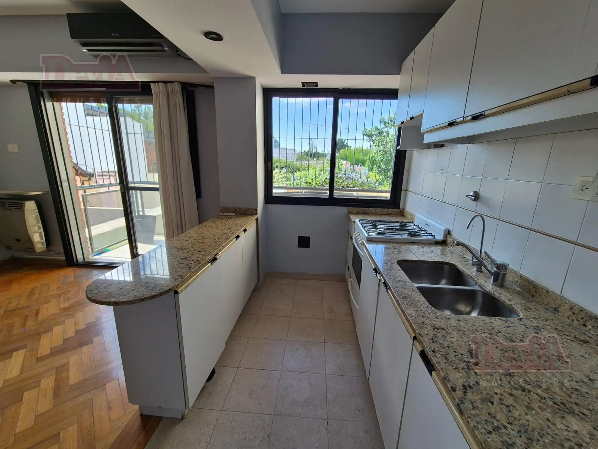 Квартира в Núñez на 2 комнатa, окна во двор (contrafrente), с балконом. Жилая зона 7,8 m x 3 m с кондиционером. Американская кухня с барной стойкой в сторону гостиной, спальня с двойным шкафом-купе. В спальне и в гостиной установлены кондиционер и отопительный прибор с отводом продуктов горения (tiro balanceado). В здании есть полусекционная зона входа (semi privado) и балкон, проходящий по фронту.