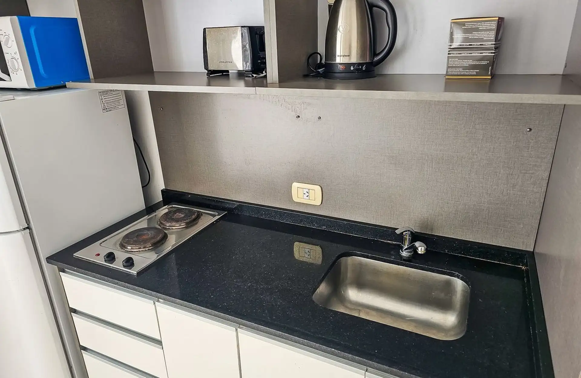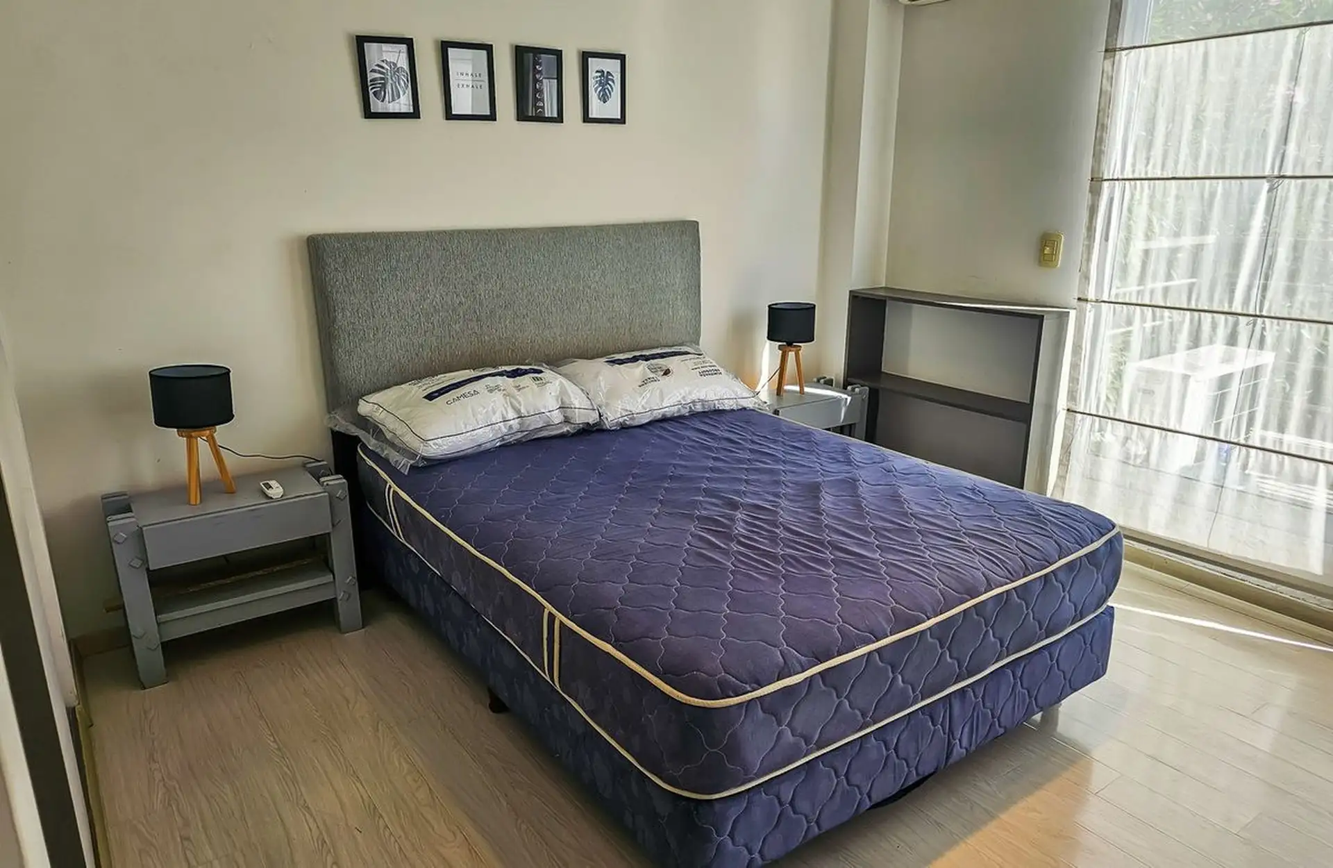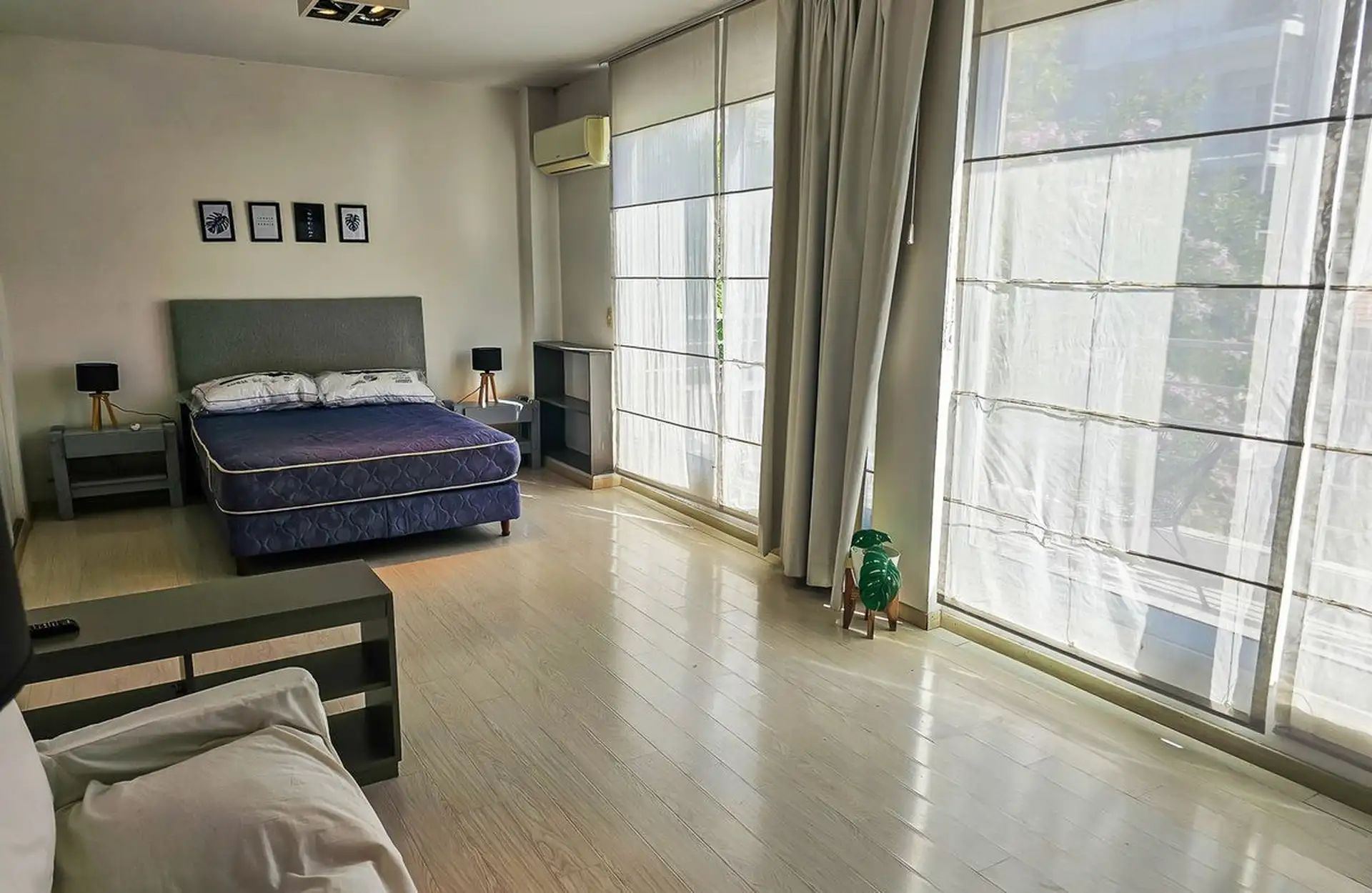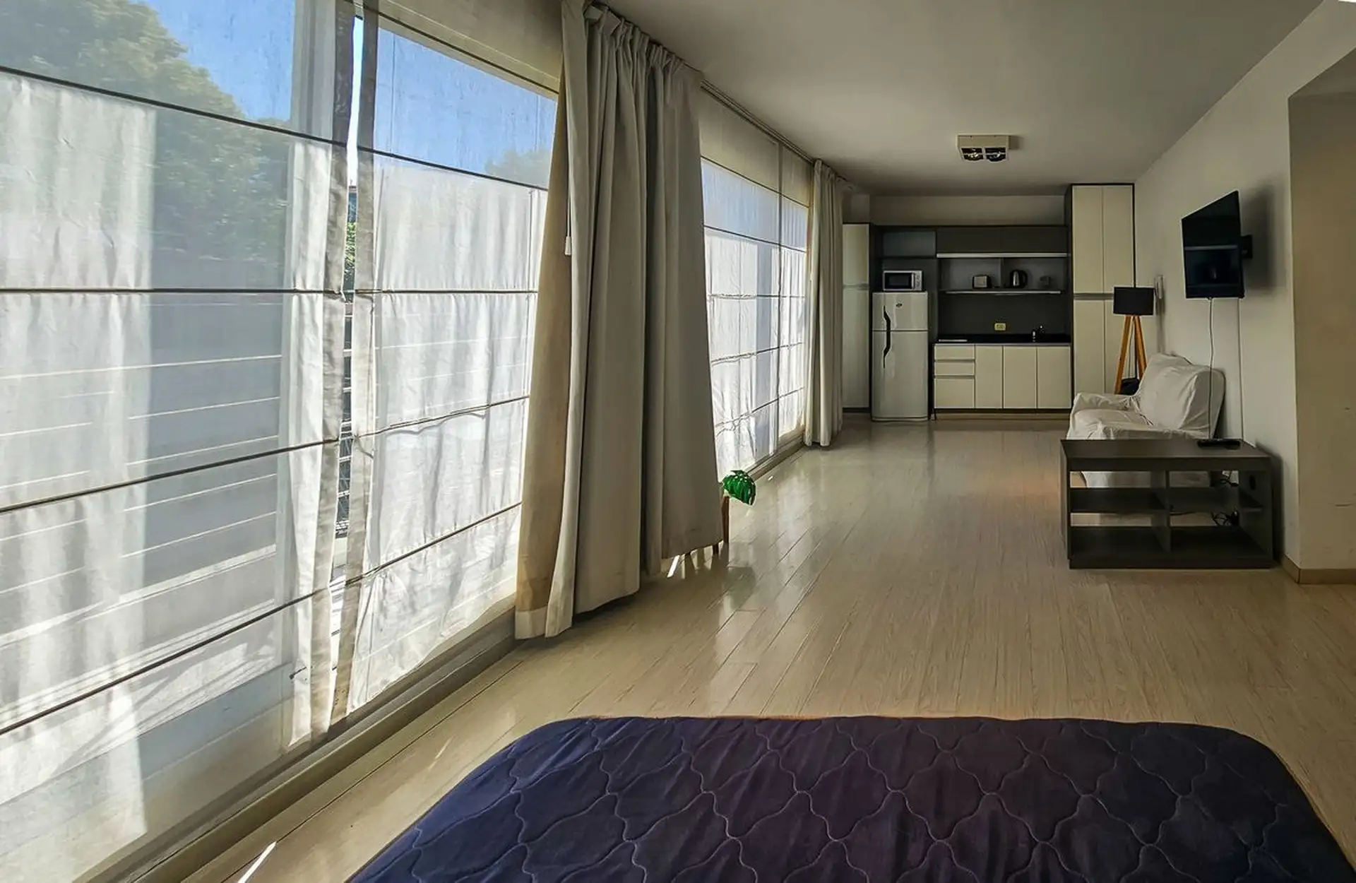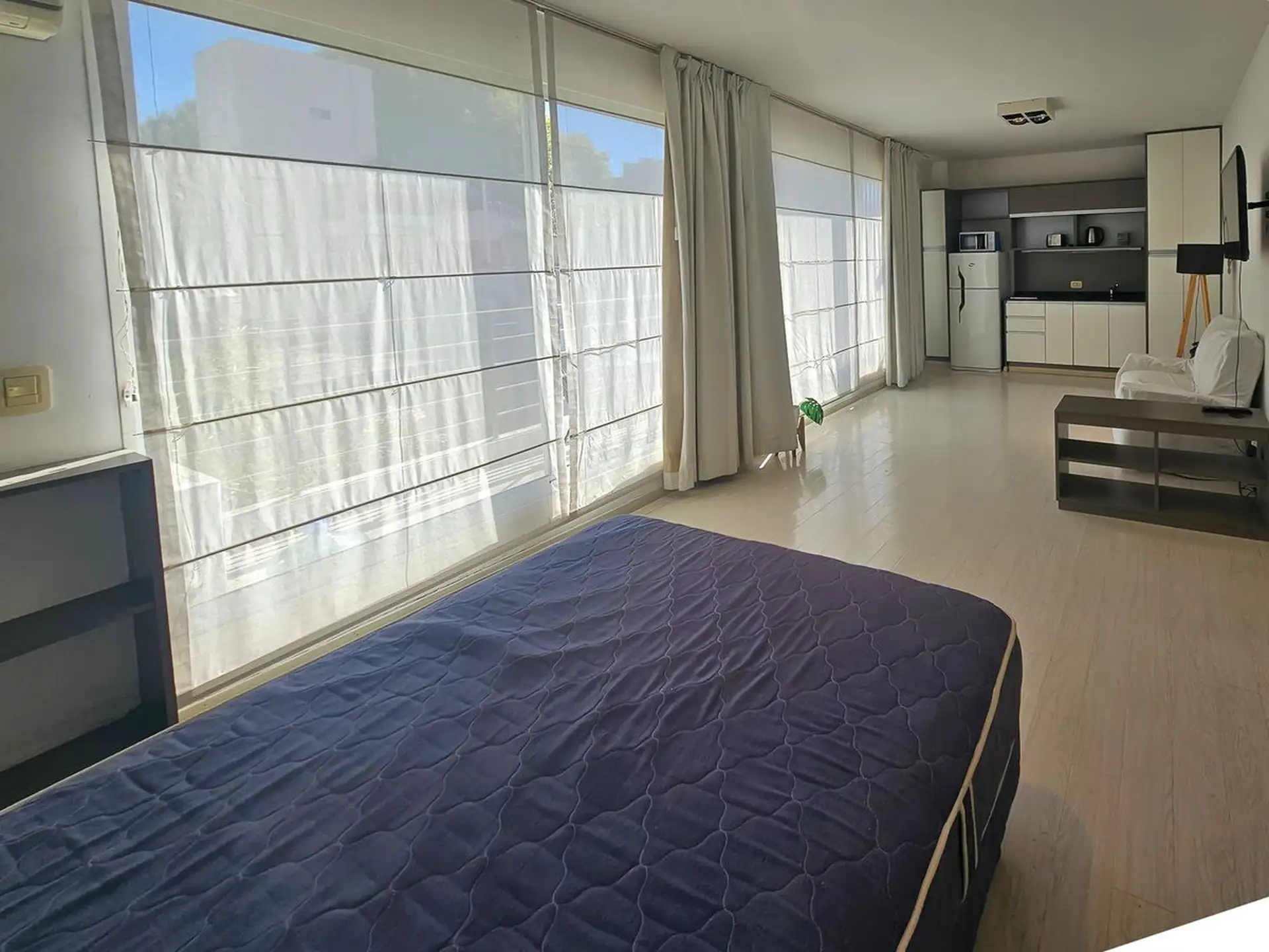 Квартира-студия в alquiler в Núñez. Площадь 37 m², окна на улицу (frente), с балконом и ориентацией на noroeste. Кухня встроена, есть зона жилая-столовая, ванная комната и шкаф. В квартире установлены кондиционер и указано наличие бытовой техники: тостер, электрический чайник, микроволновая печь, холодильник, посуда (2 стакана, 1 тарелка). Коммунальные платежи здания (expensas) и прочие услуги в объявлении не уточняются. Условия аренды: депозит USD 1000 и оплата первого месяца вперёд; требуется
