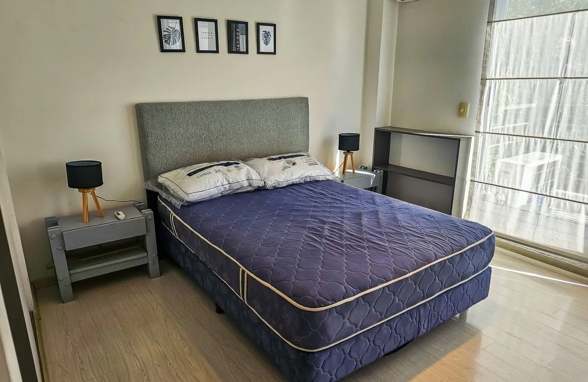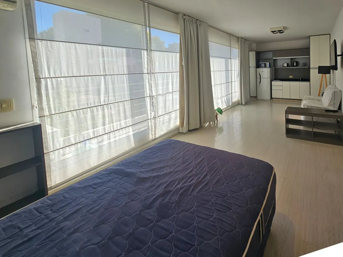 Квартира-студия в аренду в Núñez, общая площадь 37 m². Квартира с мебелью и оснащением, окна на улицу, с балконом с ориентацией на северо-запад. Есть интегрированная кухня, гостиная-столовая, полноразмерная ванная и встроенный шкаф. В числе техники кондиционер; предоставлены тостер, электрическая пава, микроволновая печь и холодильник, а также посуда и столовые приборы. Коммунальные платежи здания (expensas) не указаны; депозит USD 1200, первый месяц авансом. Аренда обновляется раз в квартал по