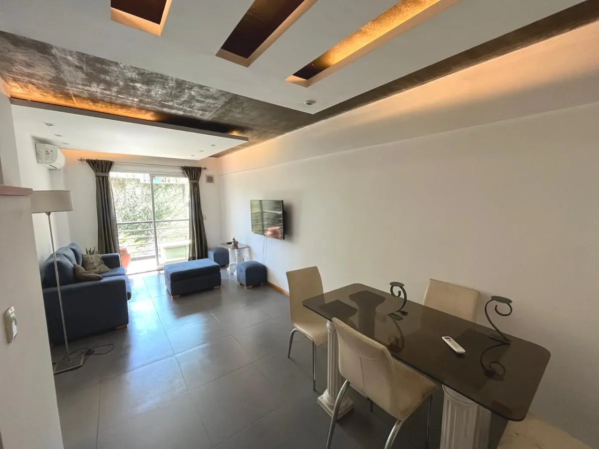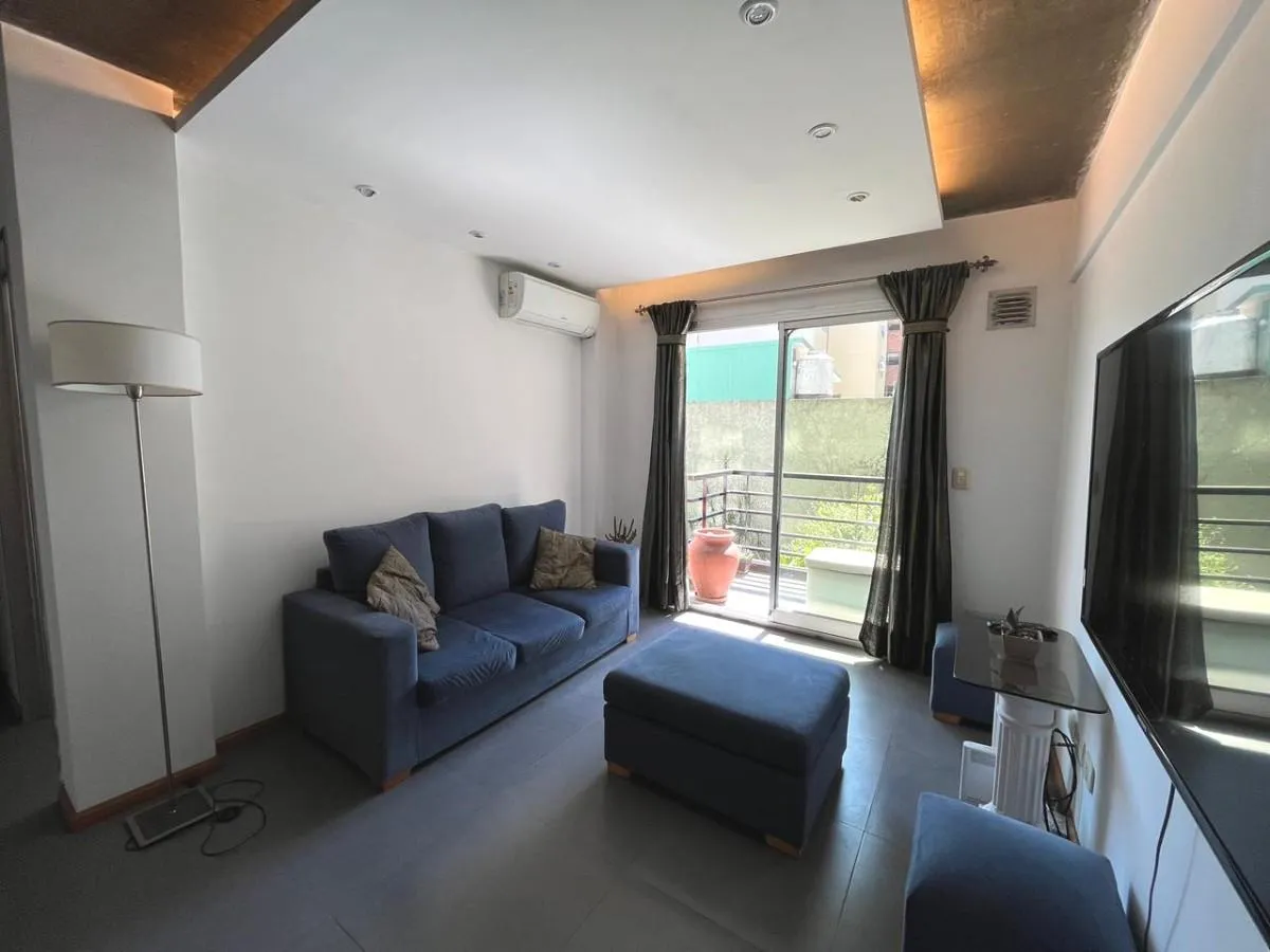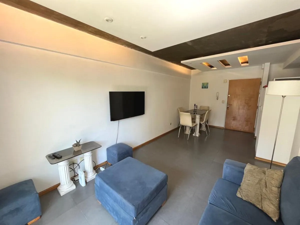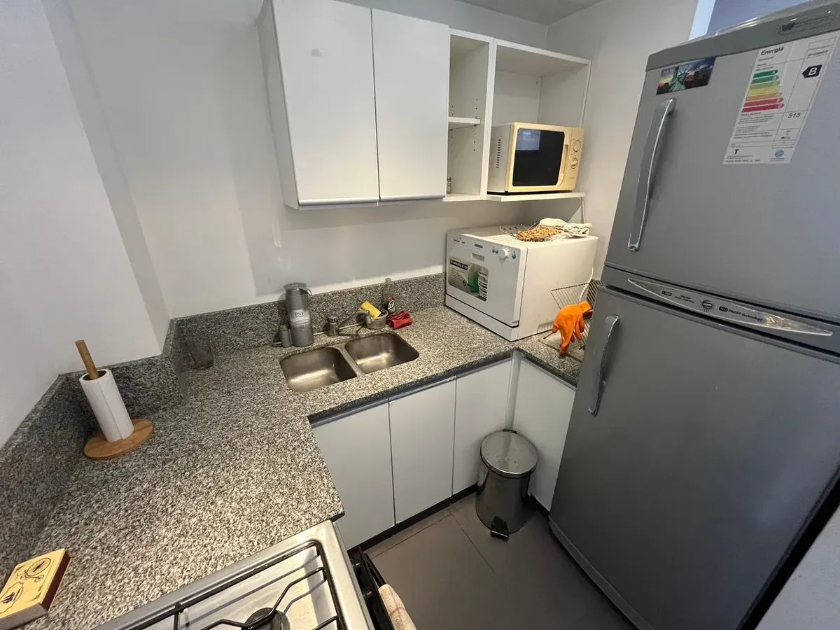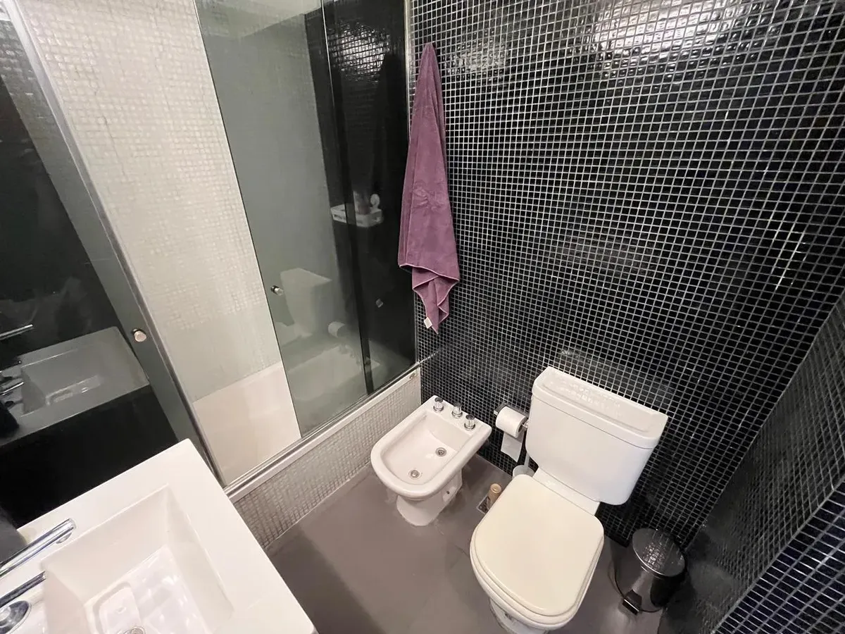 Квартира из 2 комнат площадью в Núñez, с мебелью. Окна во двор: из гостиной есть выход на балкон (контрфронт). В гостиной установлены кондиционер, диван, обеденный стол и телевизор; есть потолок с встроенным освещением. Кухня отдельная, с газовой плитой, холодильником, микроволновой печью и посудомоечной машиной. В спальне кондиционер, электрическая ролл-штора и встроенный шкаф. В ванной комнате есть стеклянная перегородка и смесители. Здание располагает SUM, зоной гриля, джакузи и прачечной. Ус
