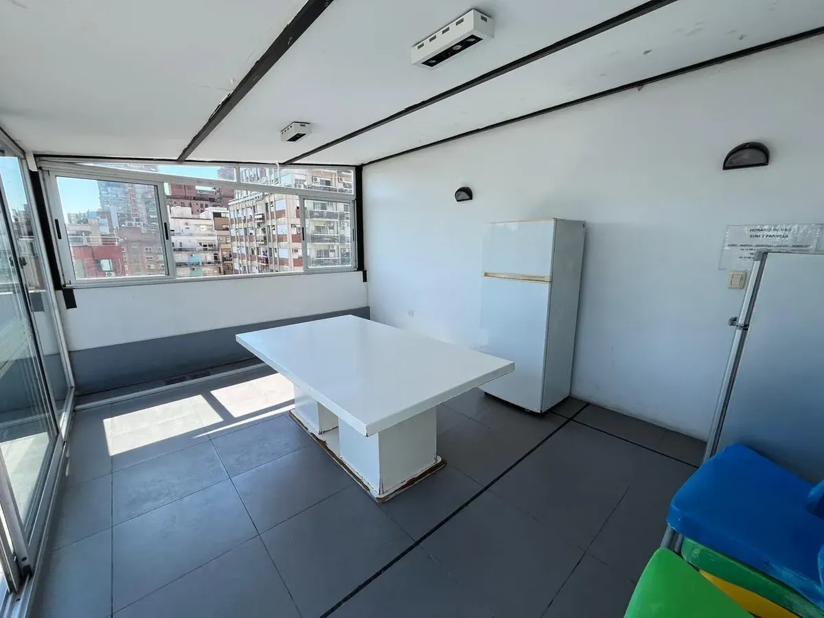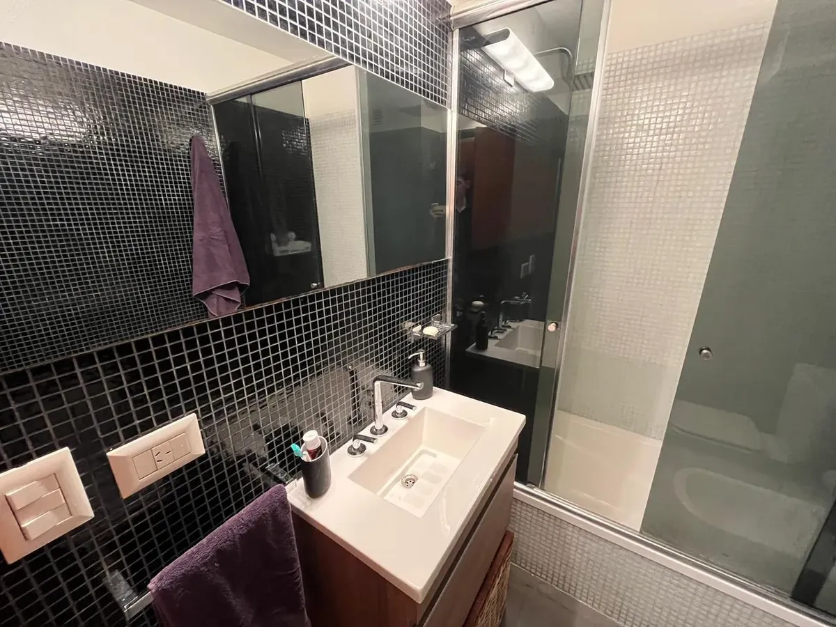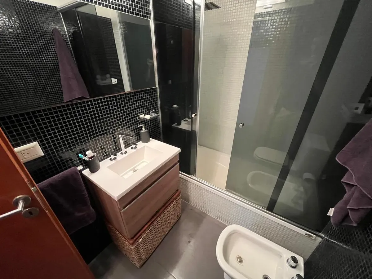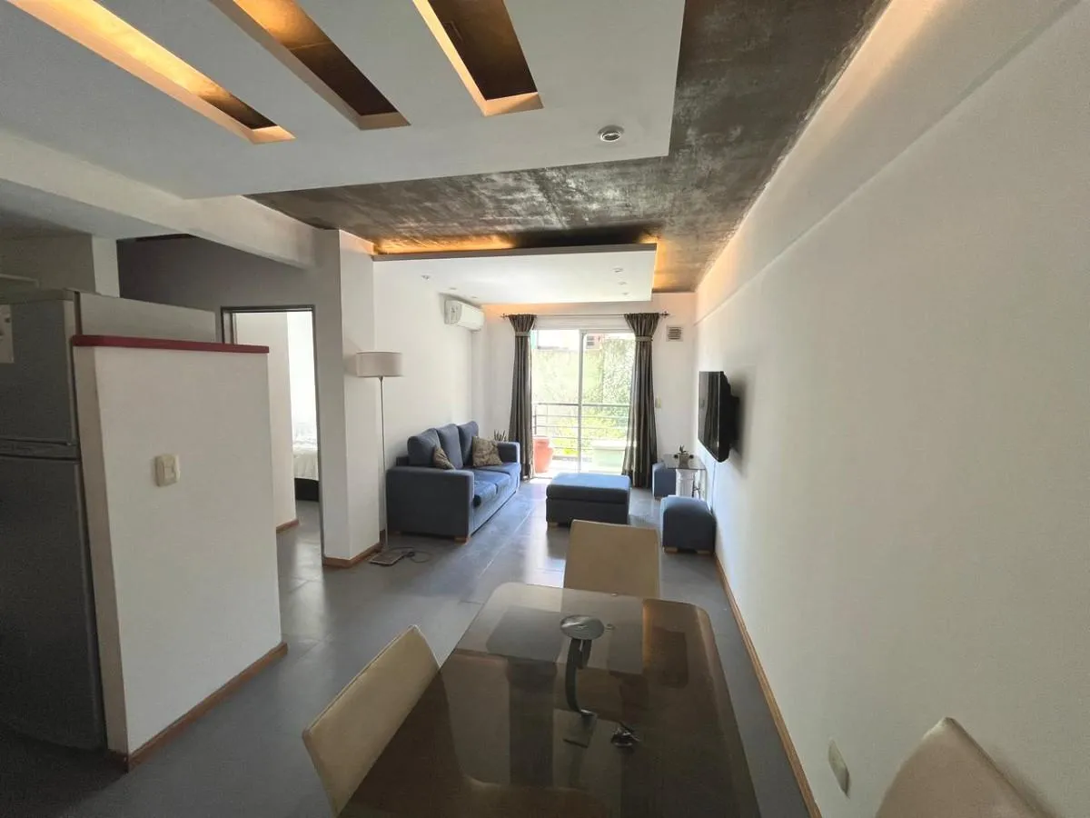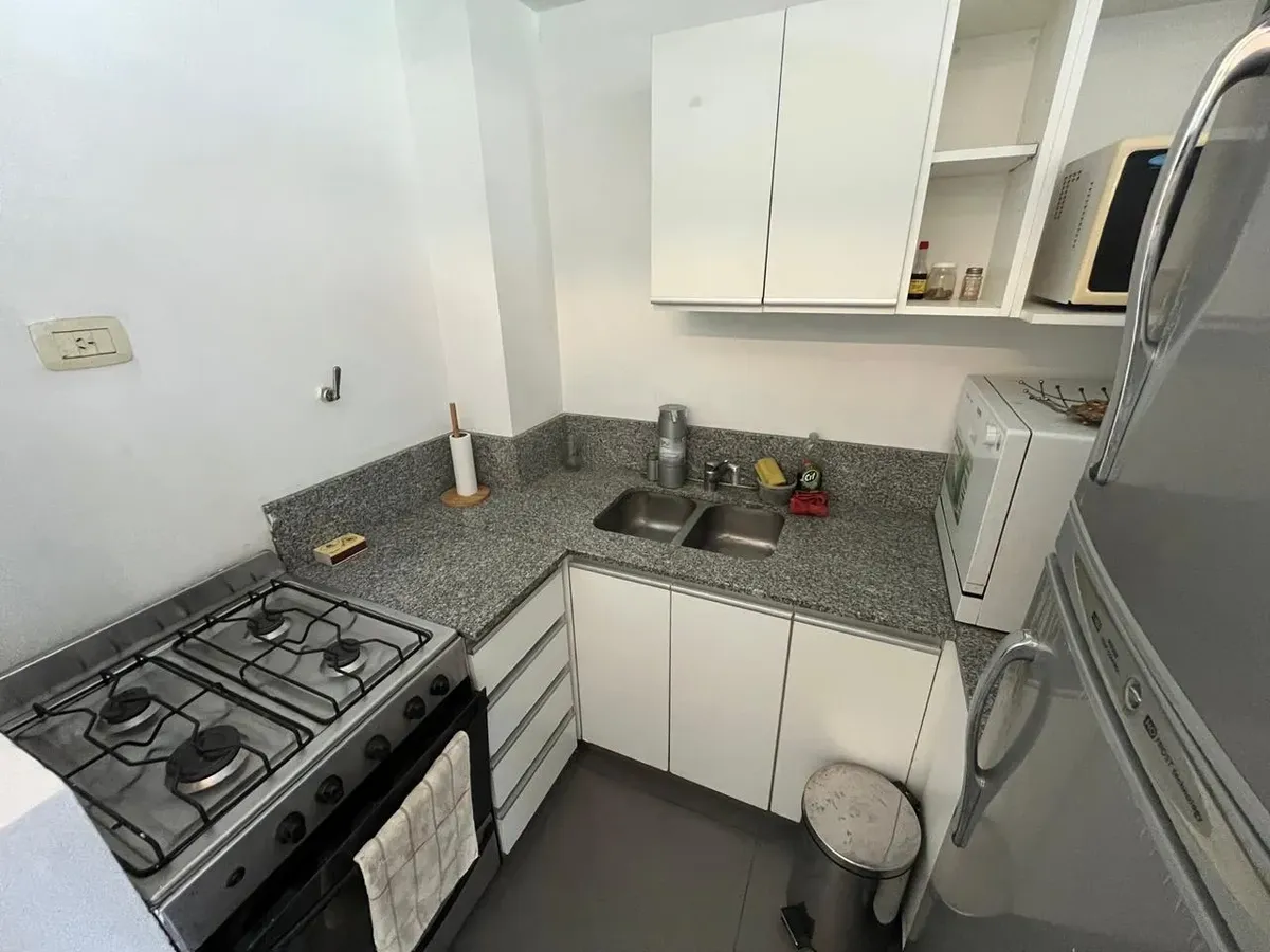 Квартира из 2 комнат площадью в Núñez, с мебелью. Окна во двор: из гостиной есть выход на балкон (контрфронт). В гостиной установлены кондиционер, диван, обеденный стол и телевизор; есть потолок с встроенным освещением. Кухня отдельная, с газовой плитой, холодильником, микроволновой печью и посудомоечной машиной. В спальне кондиционер, электрическая ролл-штора и встроенный шкаф. В ванной комнате есть стеклянная перегородка и смесители. Здание располагает SUM, зоной гриля, джакузи и прачечной. Ус