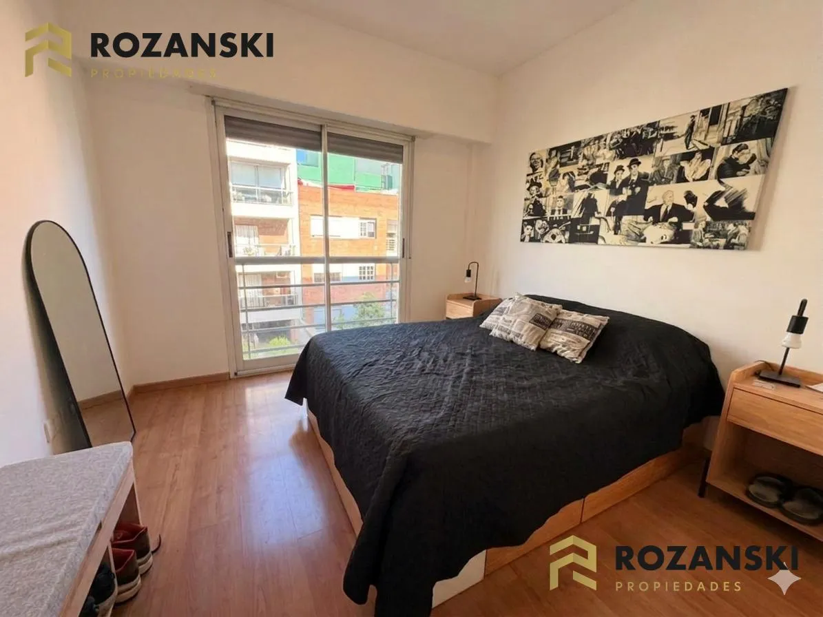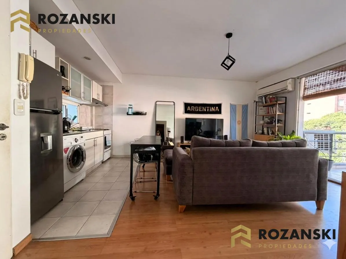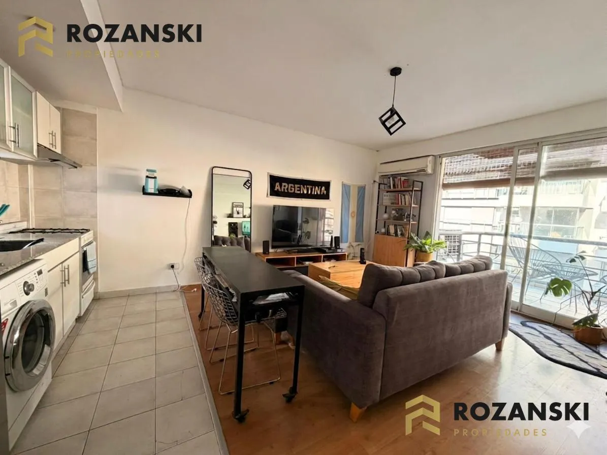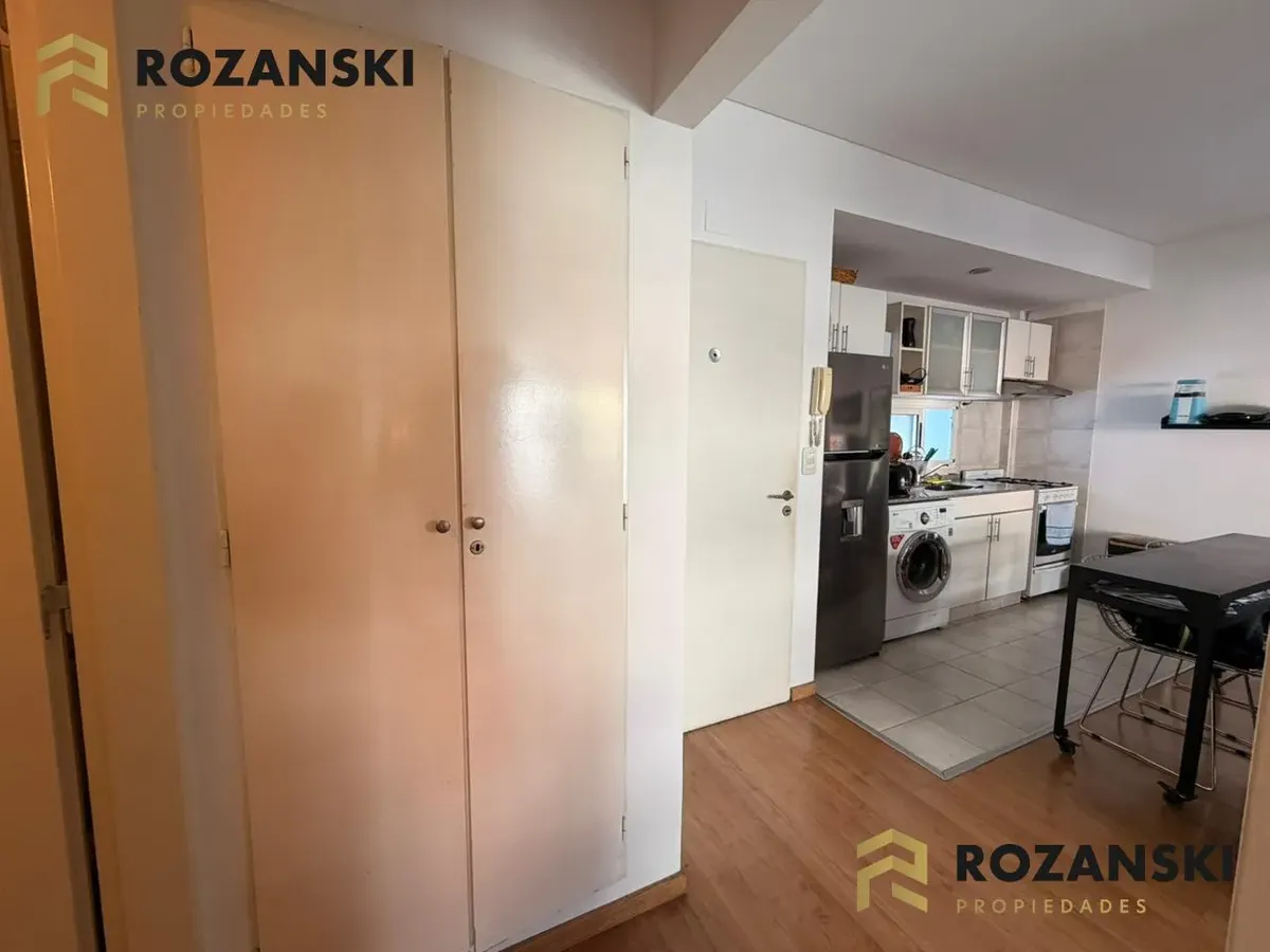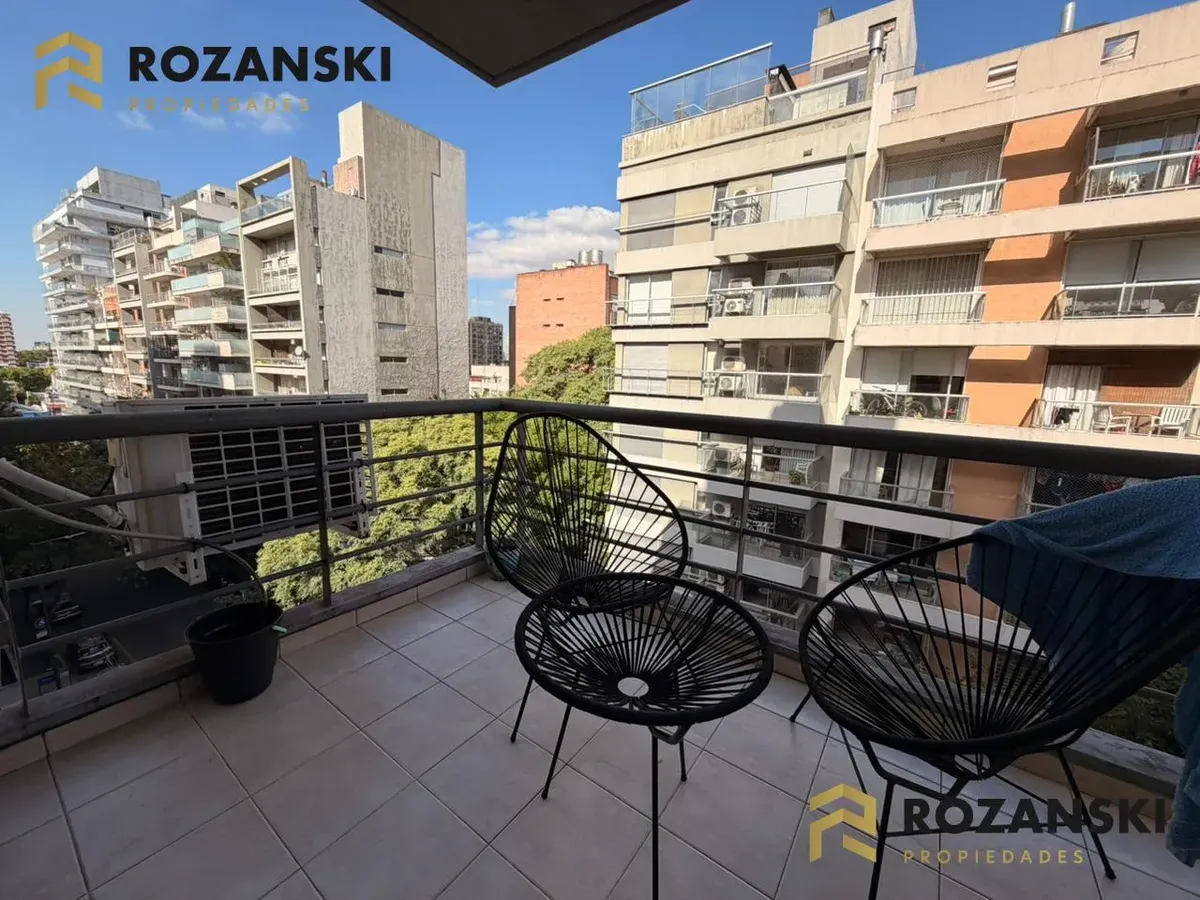 Квартира в Núñez, 2 комнаты (1 спальня) площадью 6th этаж на улицу, с балконом на уровне террасы. Кухня объединена с гостиной, с мебелью навесного и нижнего яруса, газовой плитой, газовой духовкой и вытяжкой. Есть полный санузел, в спальне встроенный шкаф, окна с жалюзи. Горячая вода от индивидуального газового водонагревателя, в гостиной установлен сплит холод/тепло, предусмотрено подключение для стиральной машины. Коммунальный двор не указан; здание тихое, есть смотритель с жильём. Депозит и п