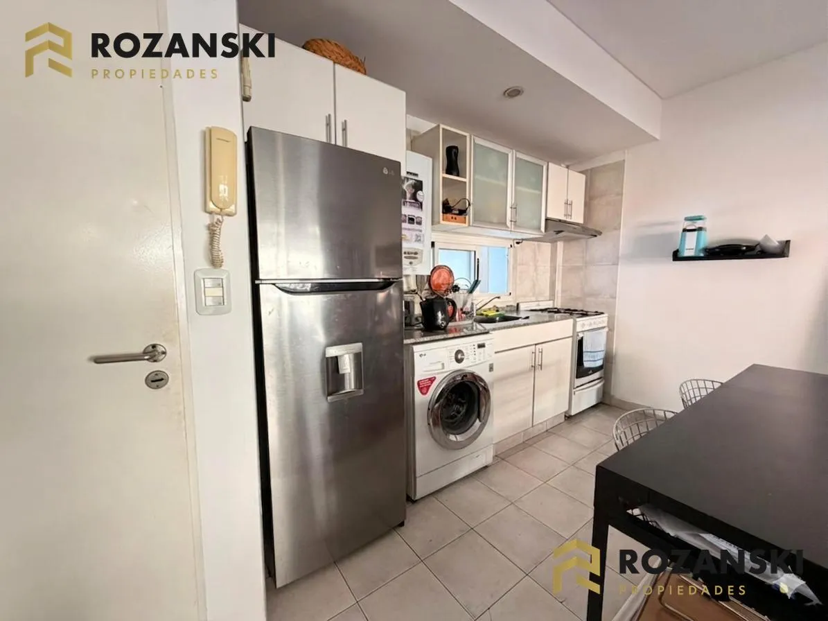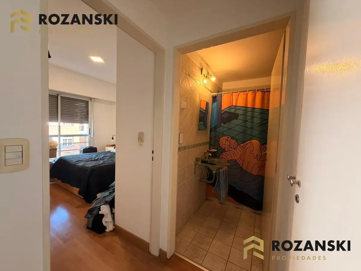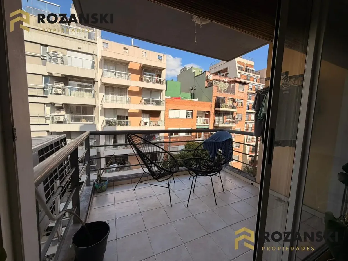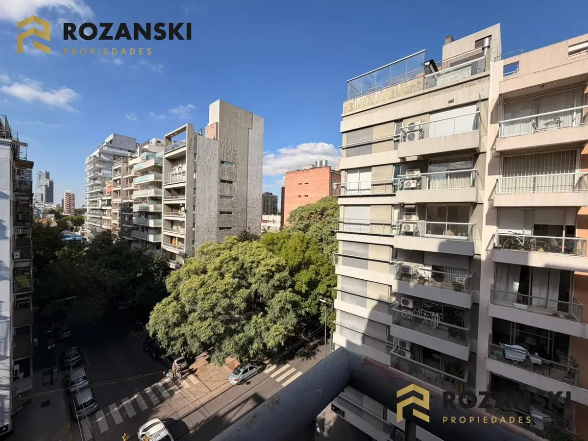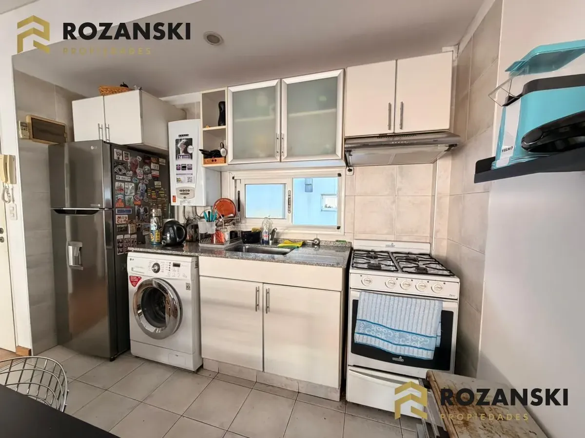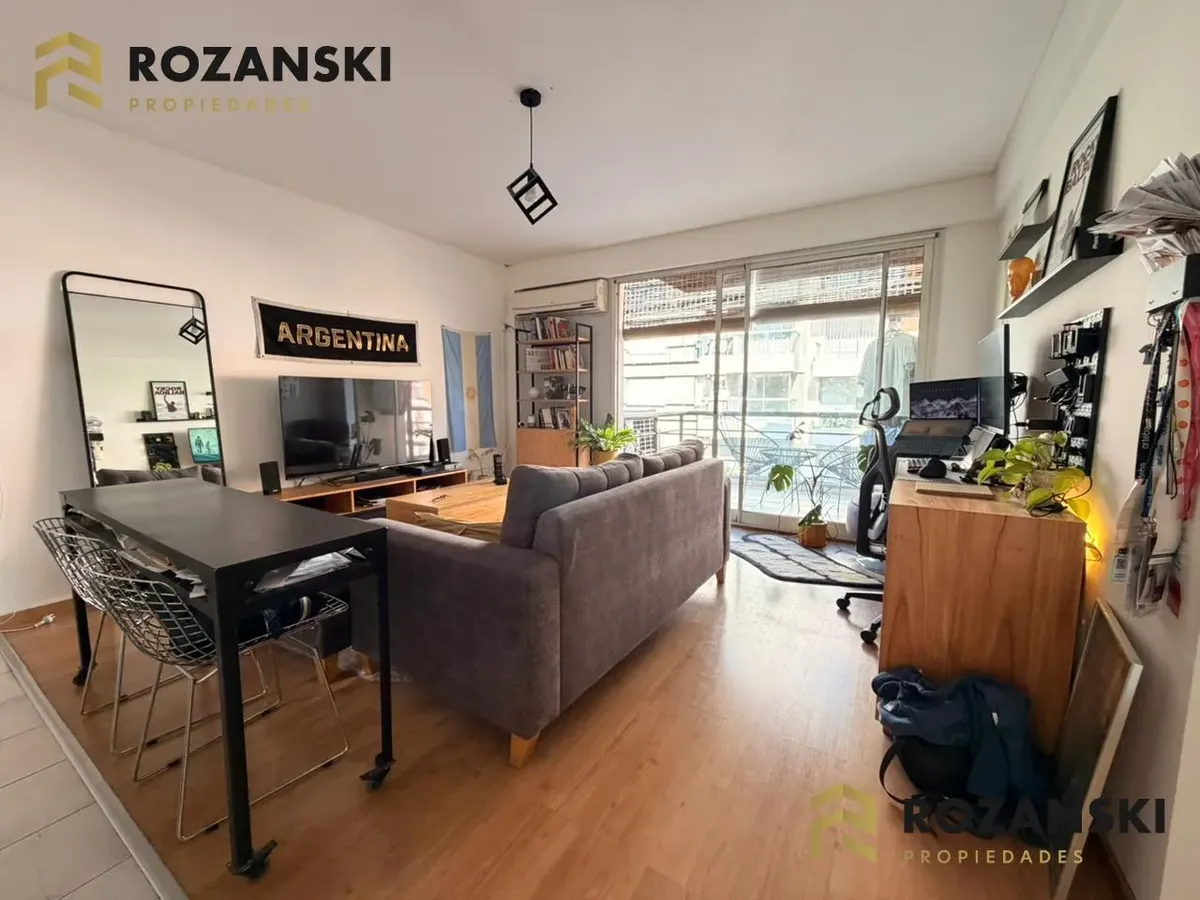 Квартира в Núñez, 2 комнаты (1 спальня) площадью 6th этаж на улицу, с балконом на уровне террасы. Кухня объединена с гостиной, с мебелью навесного и нижнего яруса, газовой плитой, газовой духовкой и вытяжкой. Есть полный санузел, в спальне встроенный шкаф, окна с жалюзи. Горячая вода от индивидуального газового водонагревателя, в гостиной установлен сплит холод/тепло, предусмотрено подключение для стиральной машины. Коммунальный двор не указан; здание тихое, есть смотритель с жильём. Депозит и п