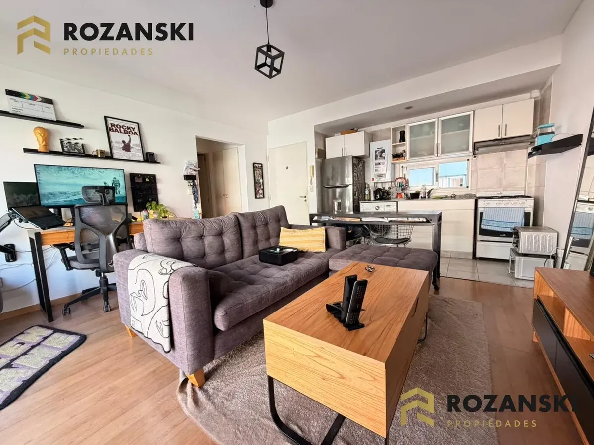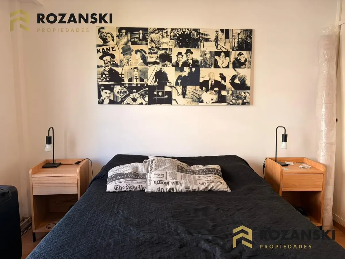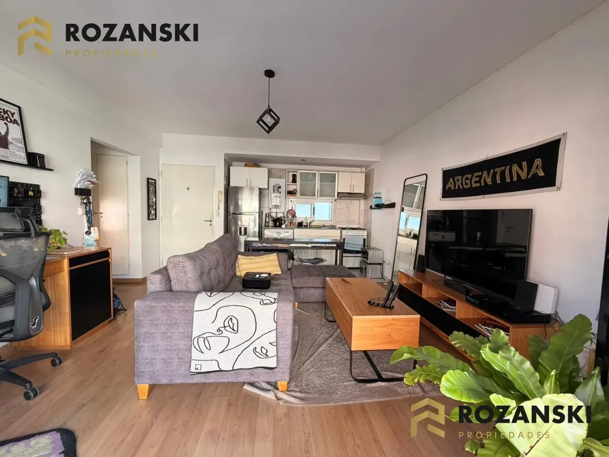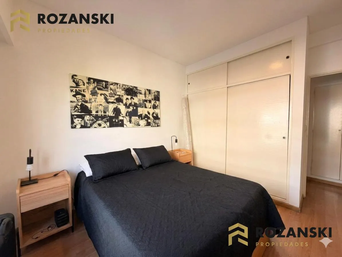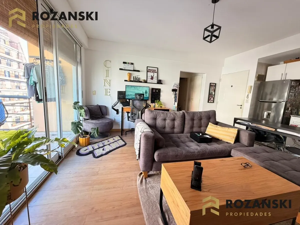 Квартира в Núñez, 2 комнаты (1 спальня) площадью 6th этаж на улицу, с балконом на уровне террасы. Кухня объединена с гостиной, с мебелью навесного и нижнего яруса, газовой плитой, газовой духовкой и вытяжкой. Есть полный санузел, в спальне встроенный шкаф, окна с жалюзи. Горячая вода от индивидуального газового водонагревателя, в гостиной установлен сплит холод/тепло, предусмотрено подключение для стиральной машины. Коммунальный двор не указан; здание тихое, есть смотритель с жильём. Депозит и п