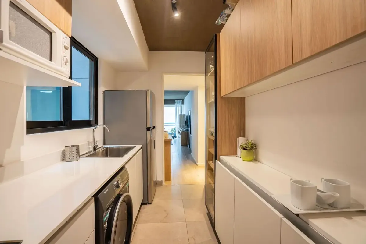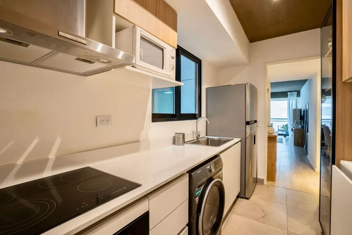 Квартира в формате 2 ambientes с 1 спальней в Núñez, с мебелью. Расположена на 4-м этаже нового здания. В квартире есть гостиная-столовая с выходом на балкон с открытым видом, кухня, гостевой туалет и спальня с местом для хранения. Центральное отопление радиаторами, кондиционер, телевизор с плоским экраном и стиральная машина. В здании предусмотрены охрана 24 часа, бассейн, зона гриля, SUM, cowork-пространство, тренажёрный зал, гидромассаж и солярий. Арендная плата включает коммунальные платежи